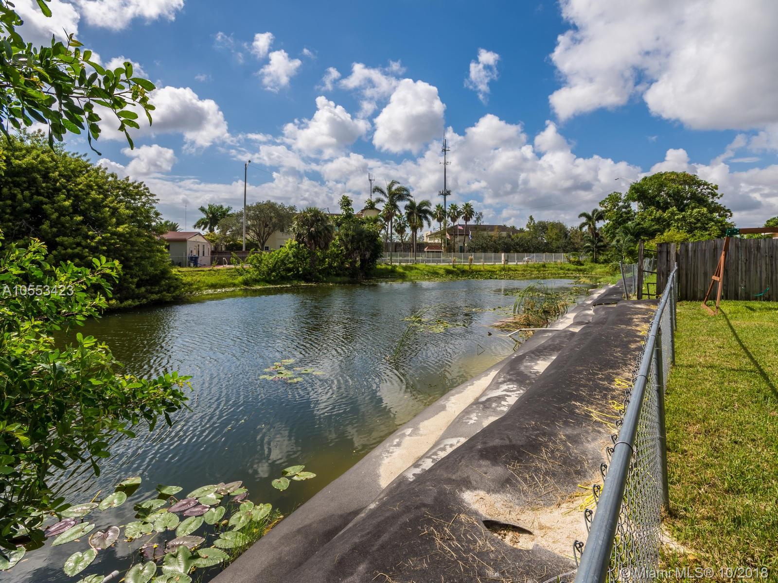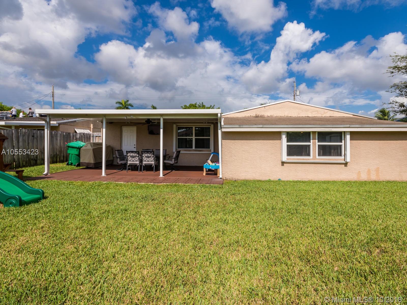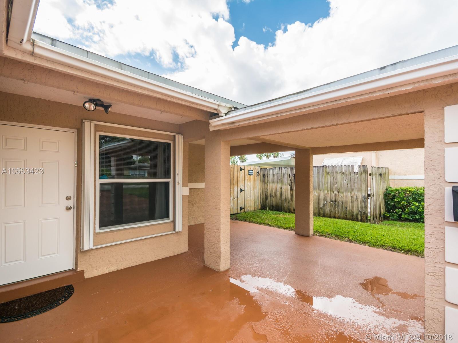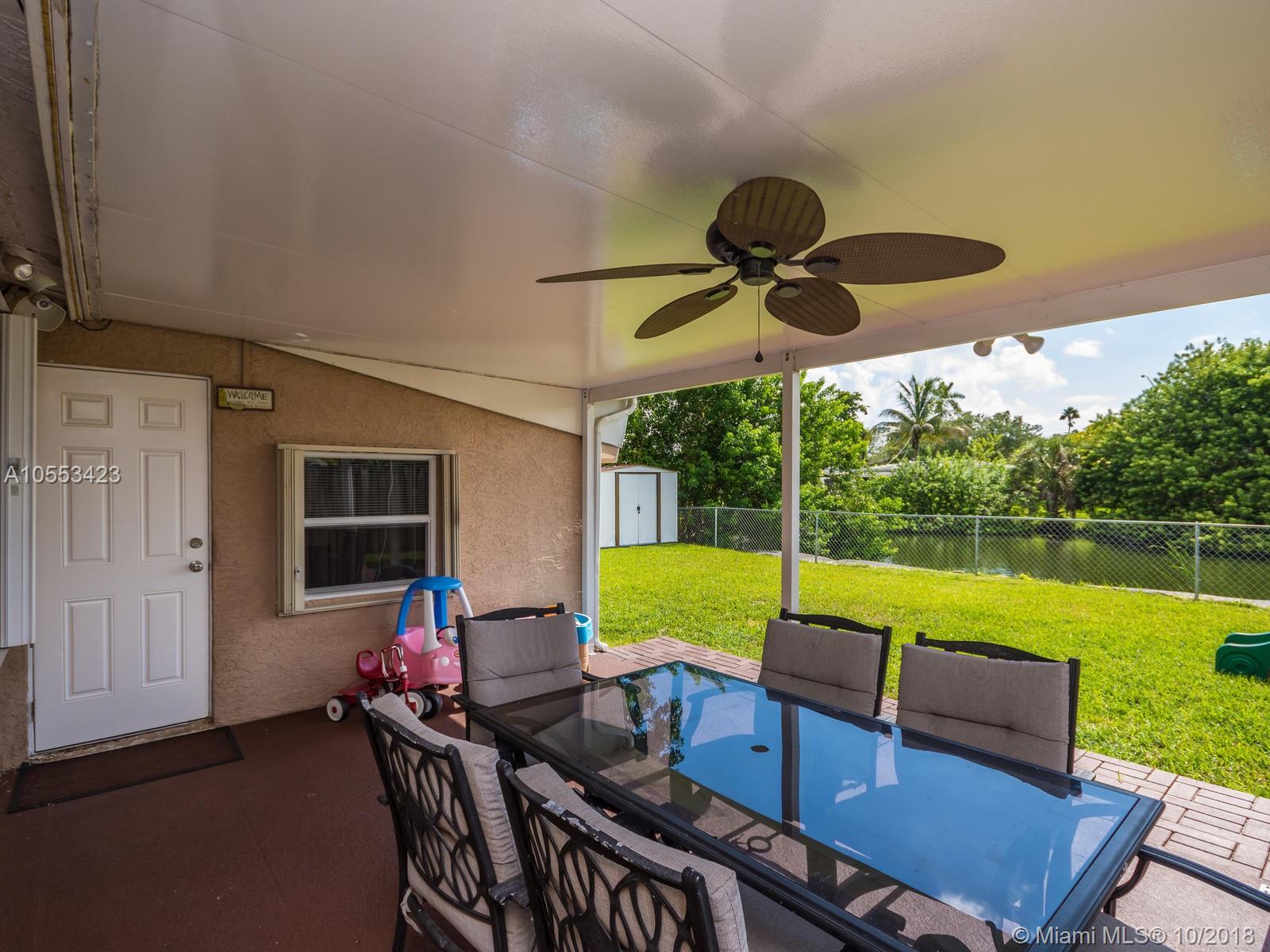 Don't miss this charming 3 bed, 2 bath waterfront home in Miramar. Featuring covered parking and a freshly sealed driveway, it's located close to all major highways. Enjoy cooking in the upgraded kitchen with stainless appliances, upgraded cabinets and granite countertops. You can eat your meal on the covered back porch while you overlook the peaceful water view and cool off with the overhead fan while watching the big game on the tv. Or enjoy the game only minutes from your home to the Hard Rock Stadium! The lawn and landscaping are very well maintained with the sprinkler system. Accordion shutters on the windows and hurricane rated doors keep you safe during a storm. Roof installed in 2009. Includes an 8 camera security system accessible remotely on your phone. NO ASSOCIATION!