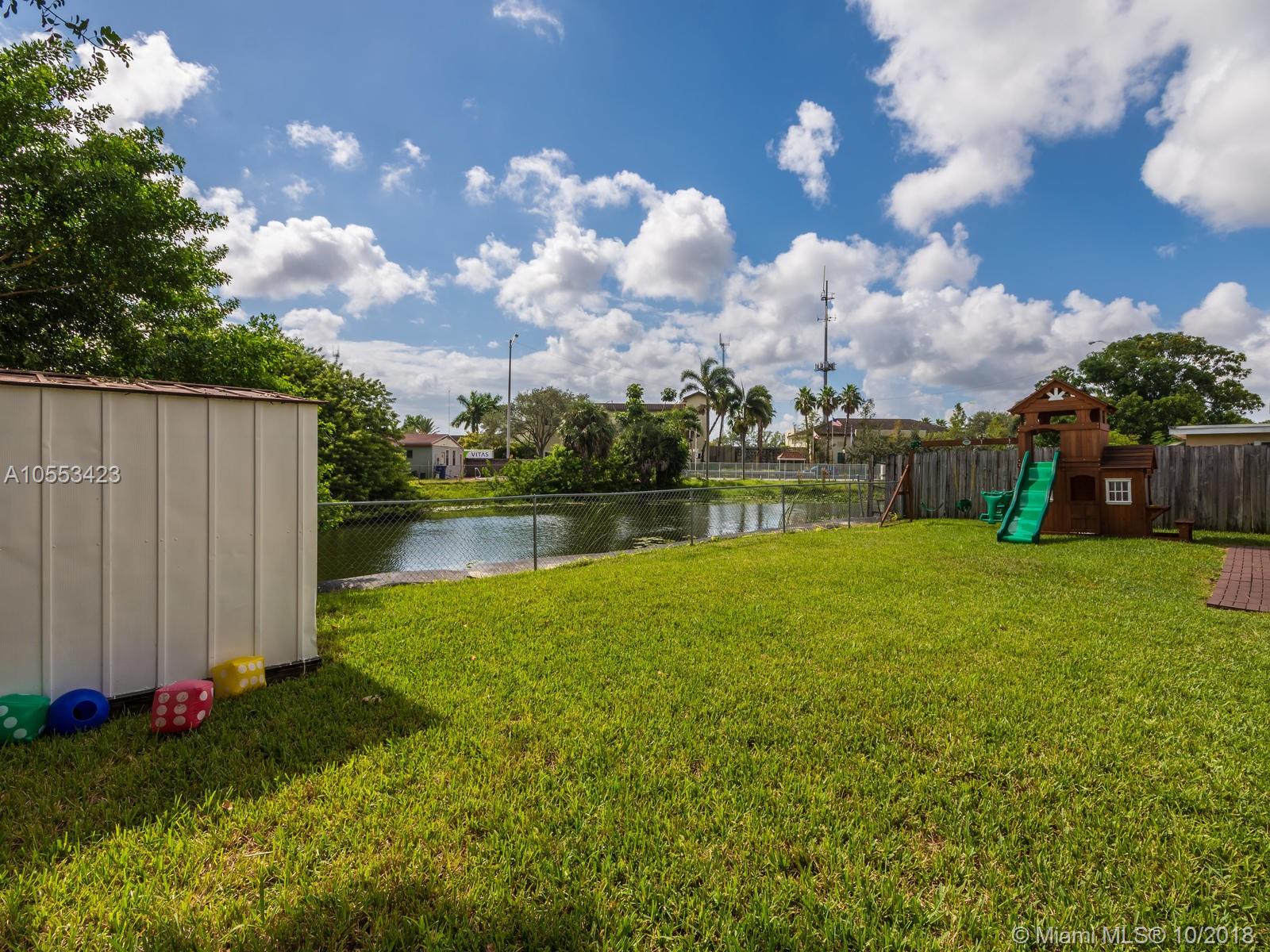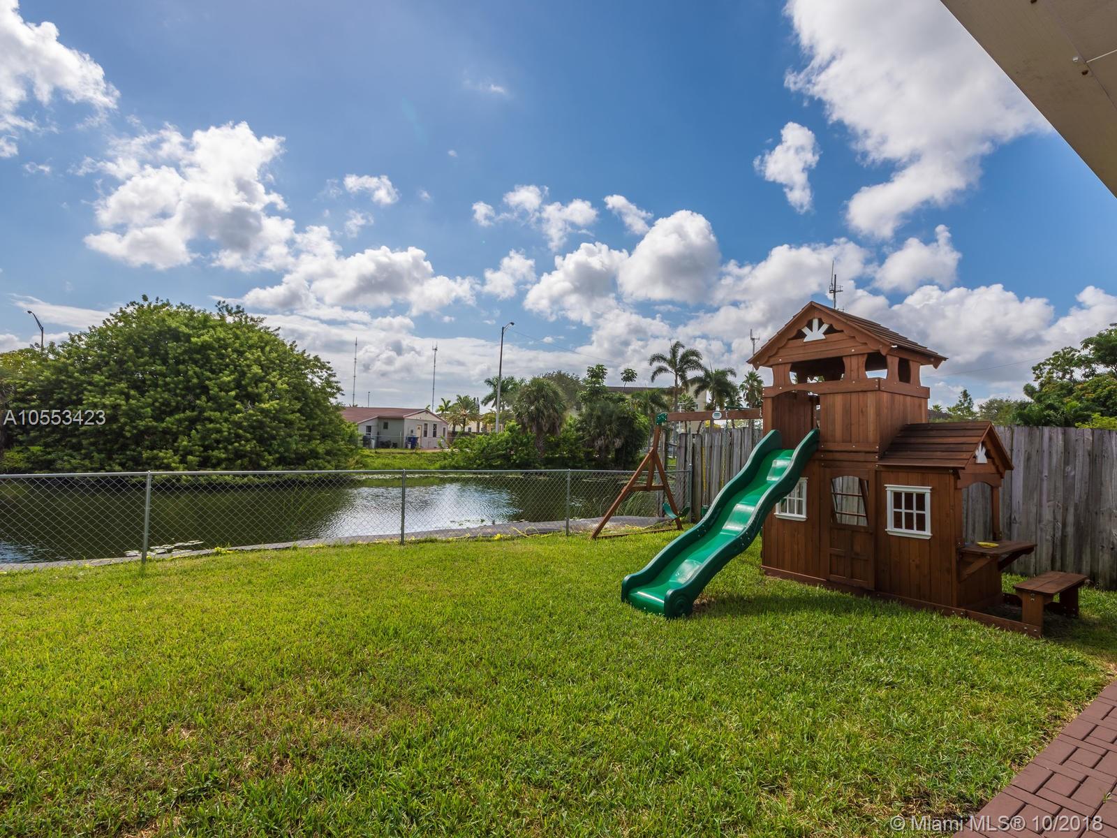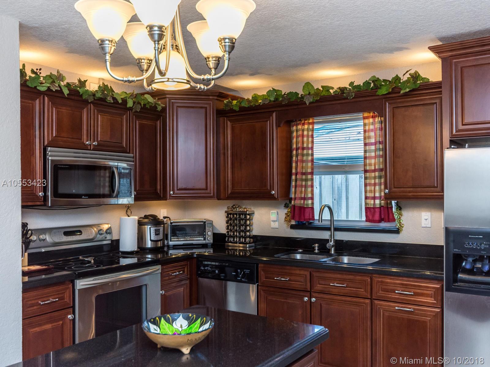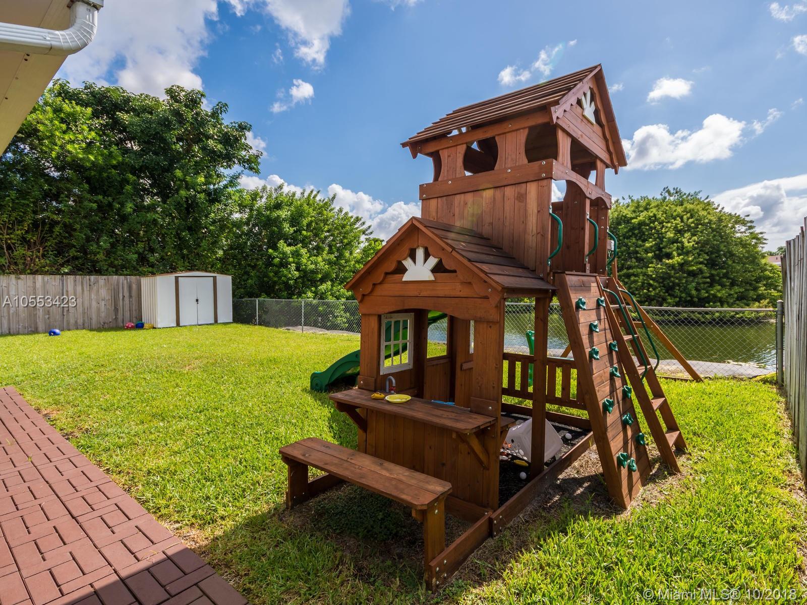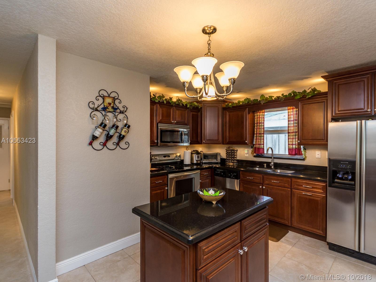 Don't miss this charming 3 bed, 2 bath waterfront home in Miramar. Featuring covered parking and a freshly sealed driveway, it's located close to all major highways. Enjoy cooking in the upgraded kitchen with stainless appliances, upgraded cabinets and granite countertops. You can eat your meal on the covered back porch while you overlook the peaceful water view and cool off with the overhead fan while watching the big game on the tv. Or enjoy the game only minutes from your home to the Hard Rock Stadium! The lawn and landscaping are very well maintained with the sprinkler system. Accordion shutters on the windows and hurricane rated doors keep you safe during a storm. Roof installed in 2009. Includes an 8 camera security system accessible remotely on your phone. NO ASSOCIATION!