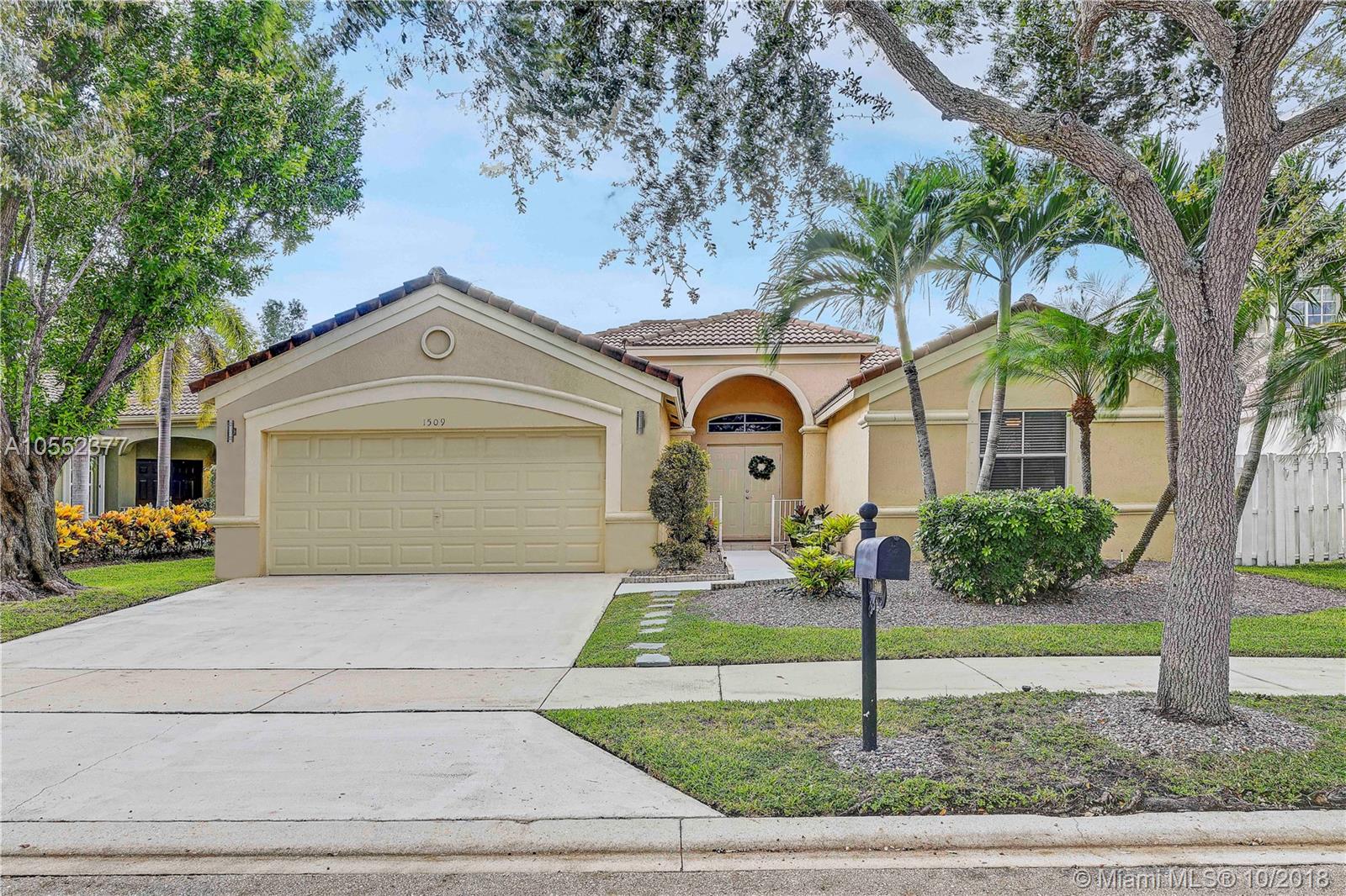The Meadows-A pristine 24hr gated Weston community,walking distance to elementary school, pool & playground. Contemporary, upgraded 4 Bedroom, 2 Bath, single story open concept home with Volume ceilings, bright Transom windows, & 24" white tile throughout living areas. Cook for your crowd in the heart of this home, the Kitchen. Upgraded Samsung & KitchenAid Stainless Appliances, Wood Cabinets, & Granite Counters. Private Master bedroom suite with upgraded bath, seamless glass enclosed shower, wood/glass individual dual sinks, custom tile & Roman Tub. Split plan of 3 additional bedrooms with tile & second upgraded custom bath. New Washer/Dryer. Covered, over-sized patio & private yard with room for pool is perfect for entertaining. Hurricane Shutters. SMART AC controller. AHS Home Warranty.