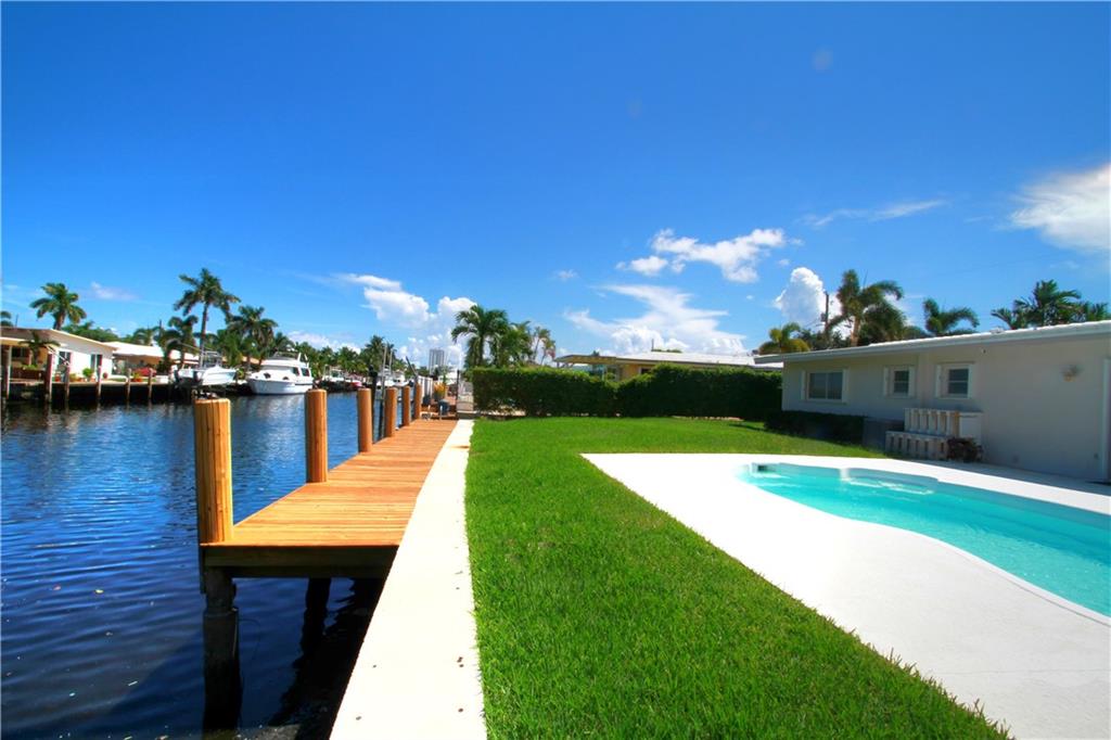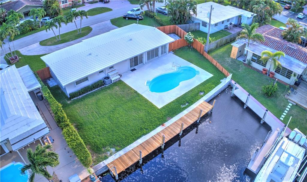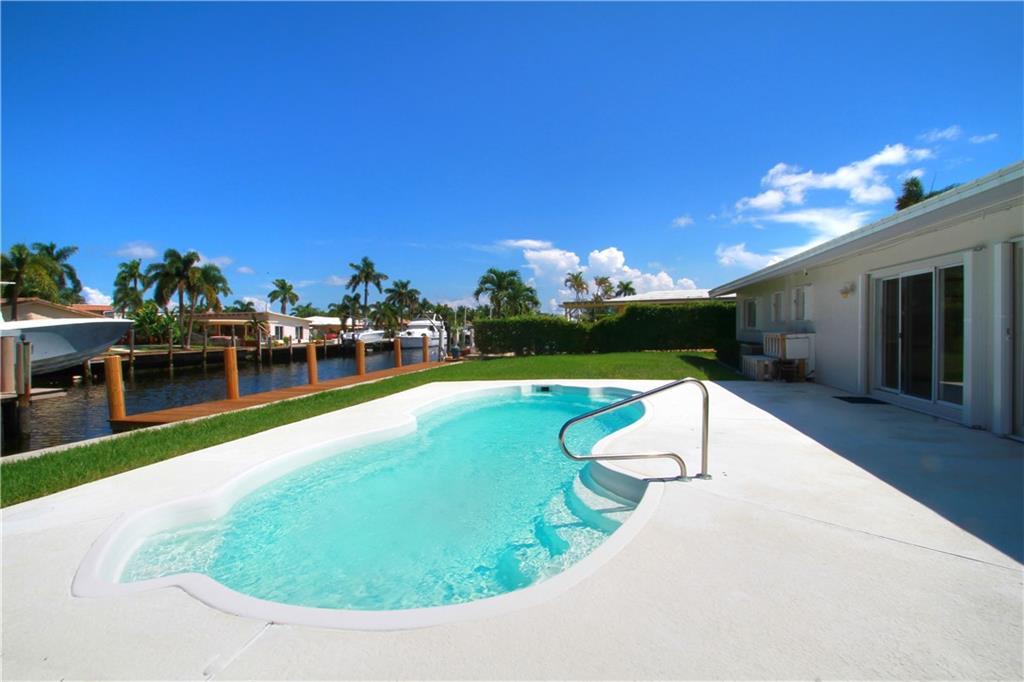 Boaters no fixed bridges in this 3/2 Pompano Isles deepwater home. Freshly painted and styled. Living room and dining room with glass sliders opening onto pool and water views. New 50' dock, 75' seawall, AC 2016, Roof new in 2011, Shutters in 2017, Electric panel replaced, Newer wood fence. Oversized One car garage with new impact garage door and opener. Larger lot with fenced side yard. Circular driveway. Needs interior updates but has great potential. Beginning of a wide canal and close to Federal Hwy for easy in and out.