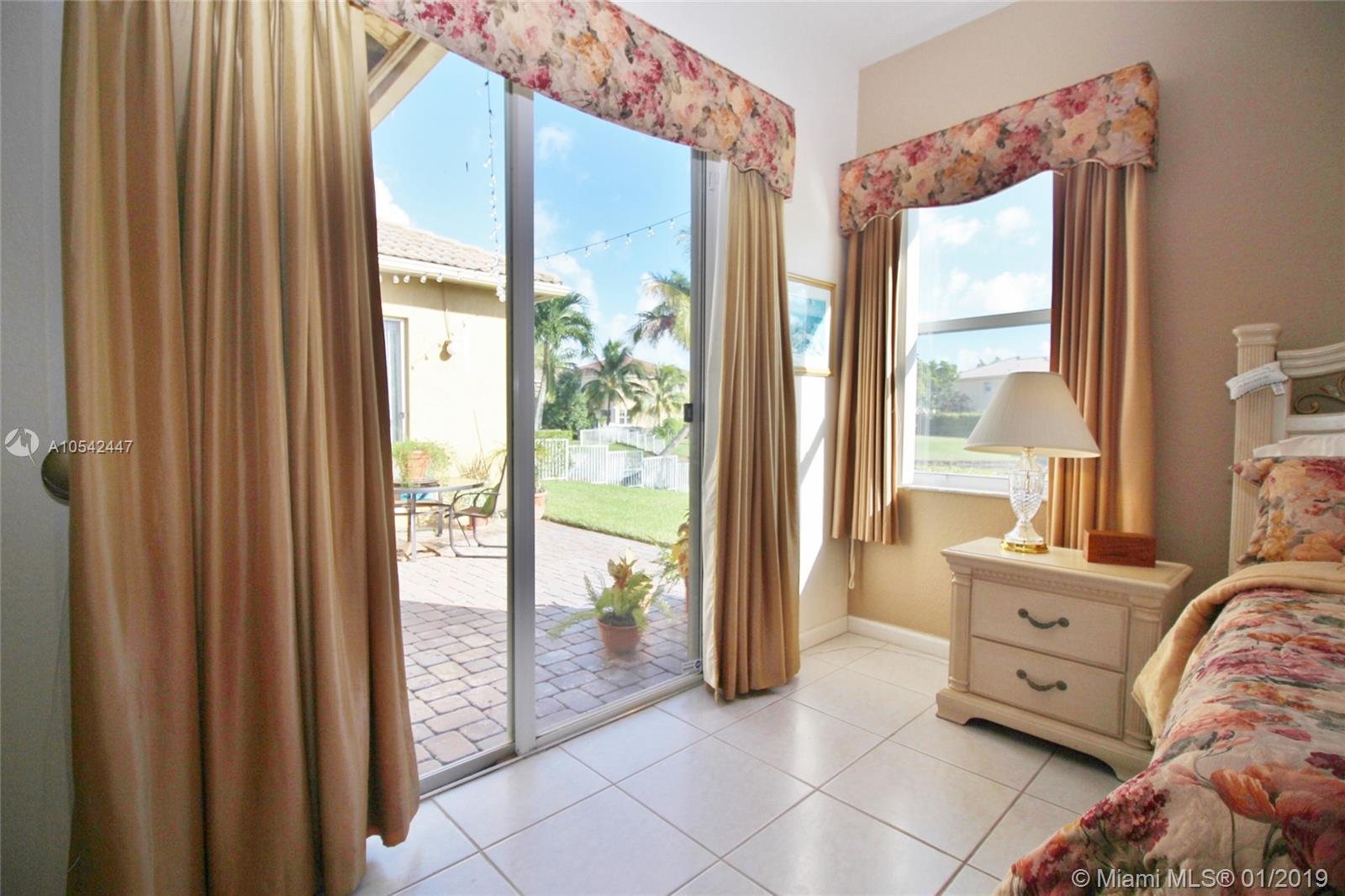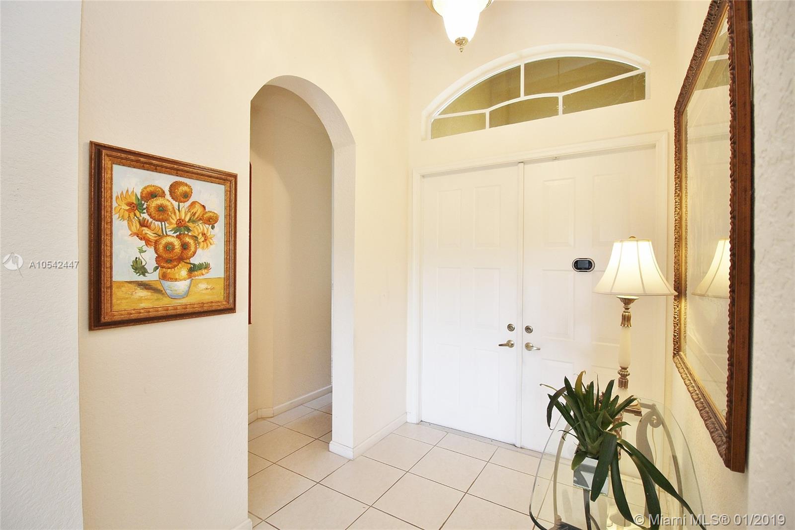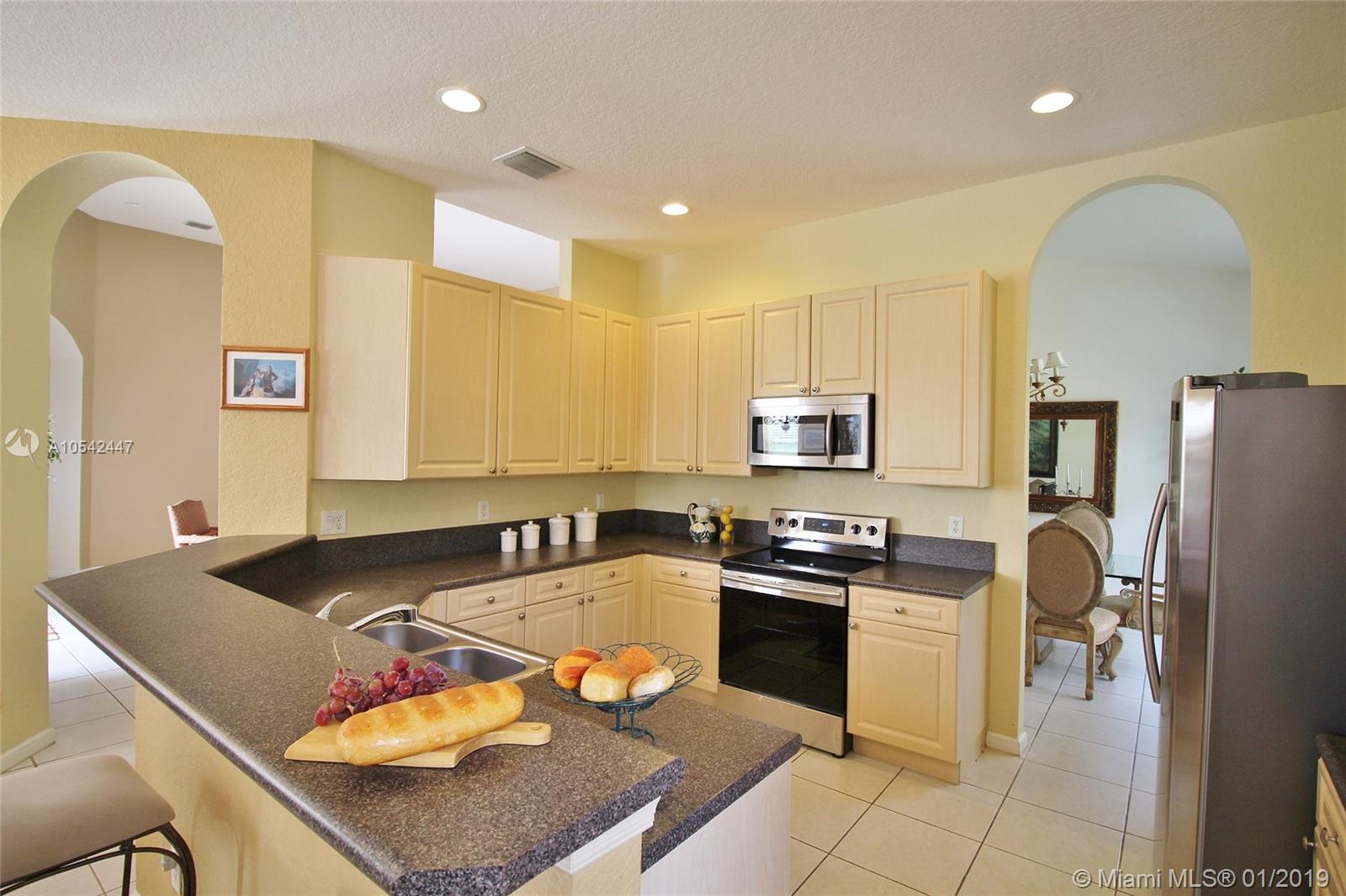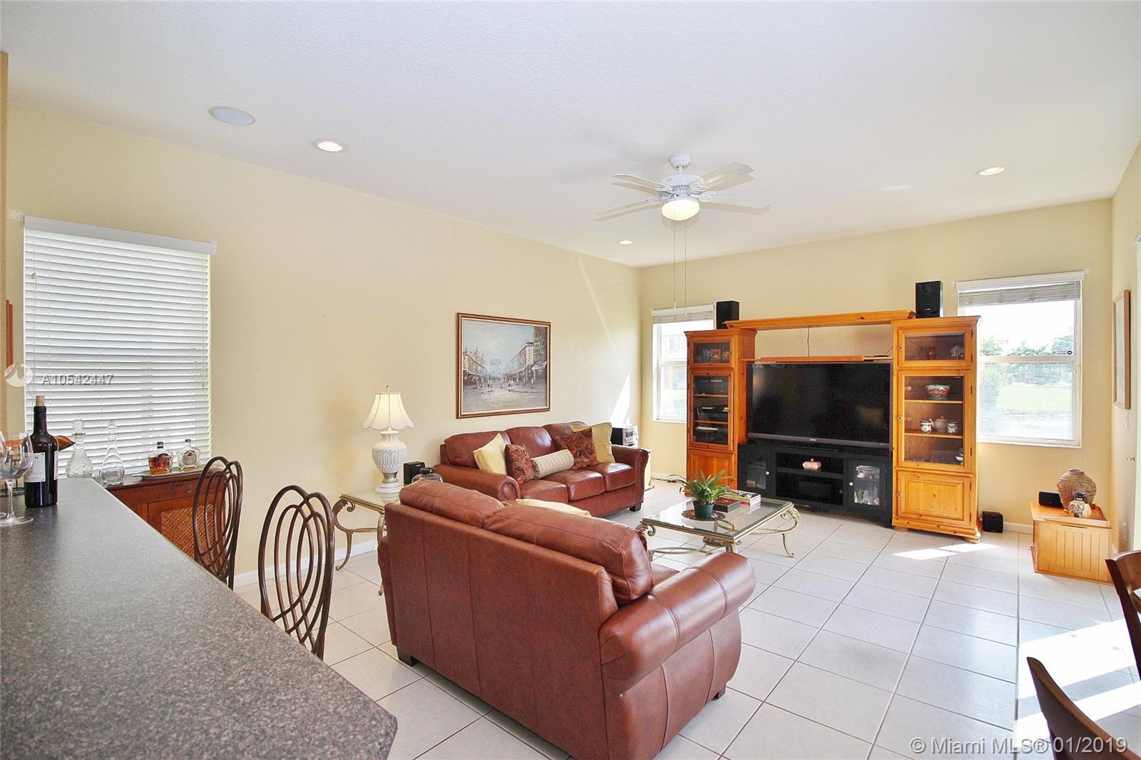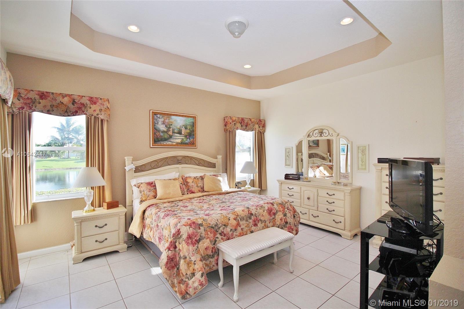 One of the best, waterfront sites in the desirable gated community of Monarch Lakes. Spectacular sunsets abound in this well-maintained, one-story home on a quiet cul-de-sac featuring vaulted ceilings and a great room with breathtaking, wide lake views. Open concept kitchen with BRAND NEW SS APPLIANCES, four bedrooms, 2.5 bathrooms, and stunning backyard with room for a pool. Amenities include a clubhouse, community pool, tennis, basketball, volleyball, playground, security, and picnic areas. Low HOA fee. Prime location just minutes away from I-75 and Turnpike. Close to mall, restaurants, beaches, and hospitals .