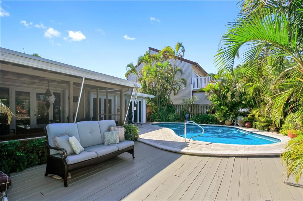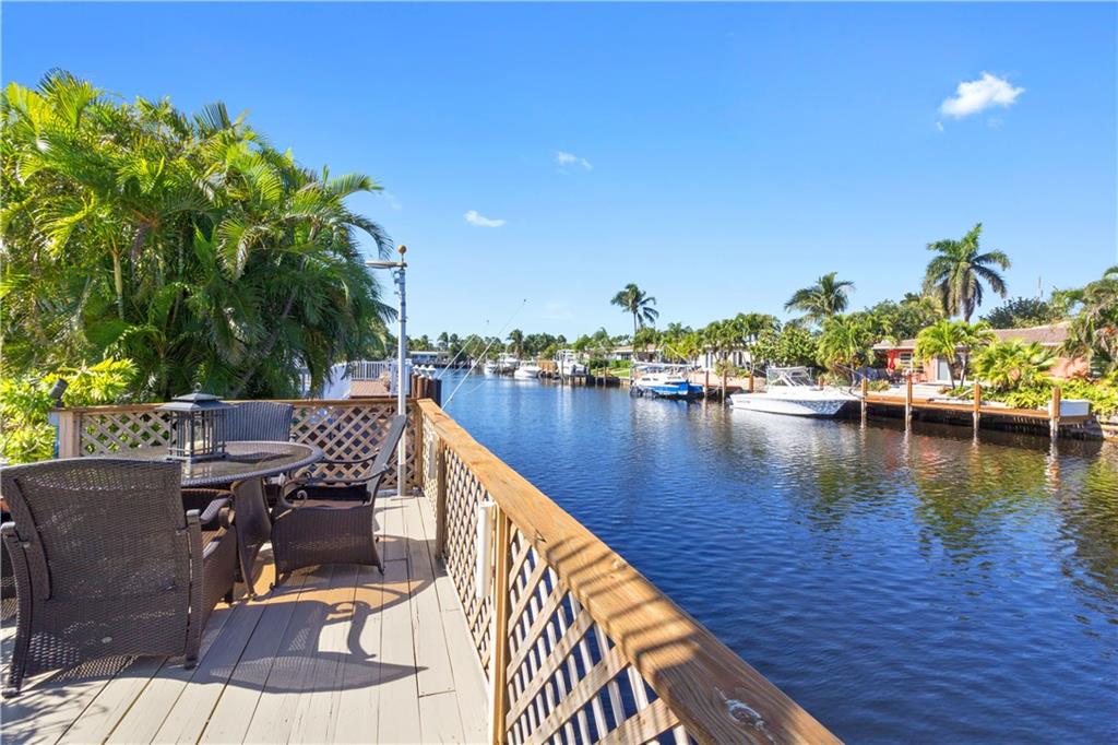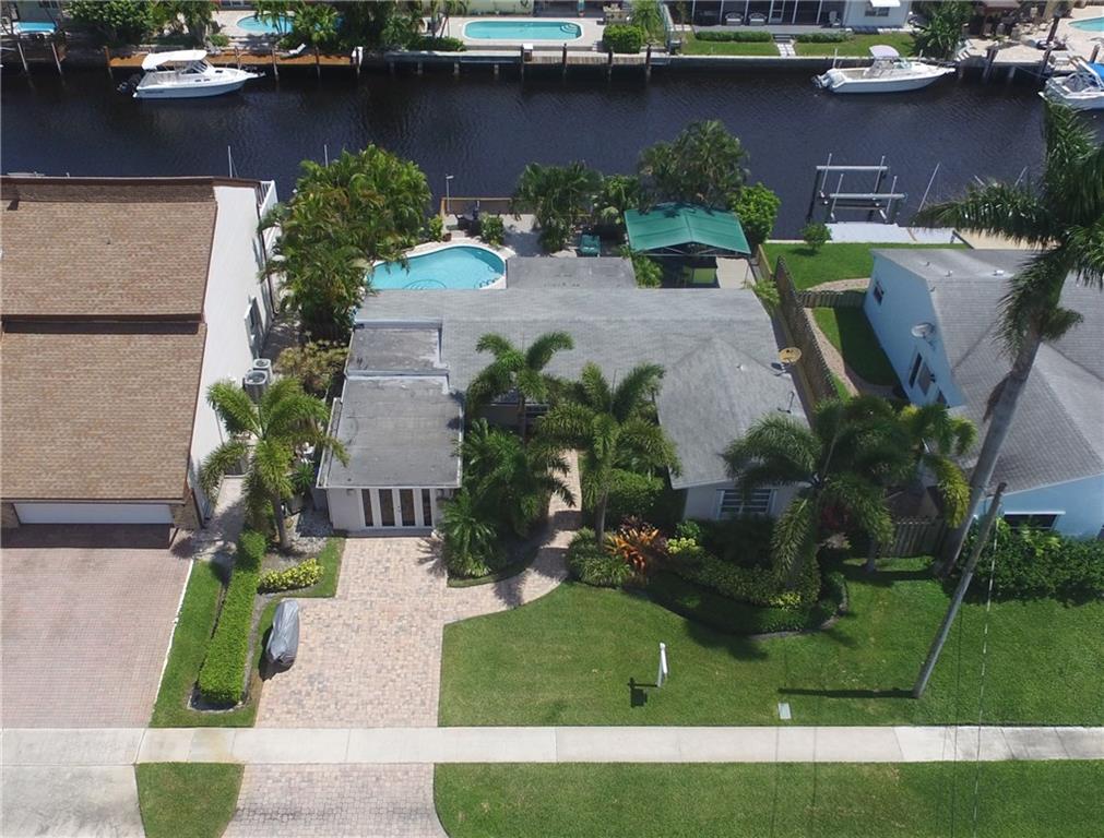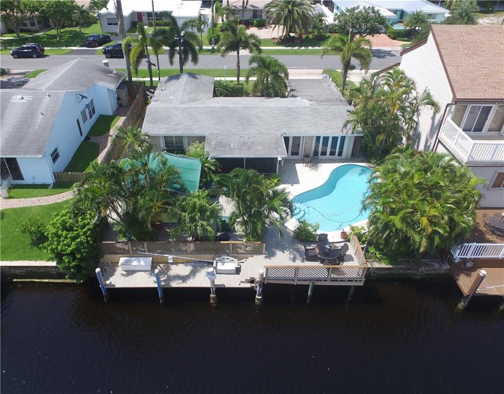 Situated on a wider canal and minutes to the Intracoastal from this waterfront pool home. Recent new A/C and blown attic insulation, remodeled kitchen with stainless steel appliances, custom cabinetry and granite countertops ++ extra bonus room for guests or hobby room. French doors from living & dining rooms to screened patio, pool deck and summer kitchen. Tropical landscaping providing privacy. Security system, hurricane shutters, pavered driveway, bi-level dock with 70 ft. on the water for your boat and waterfront dining opportunities. Close to beaches, shopping and I-95. Best bang for the buck at $519,500, come see it today.