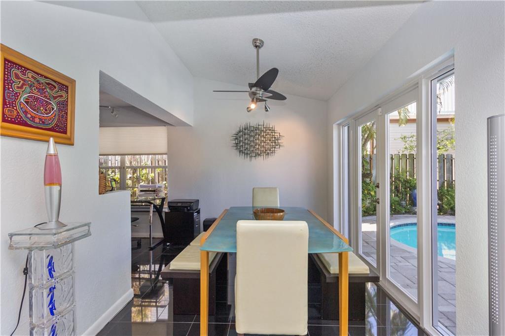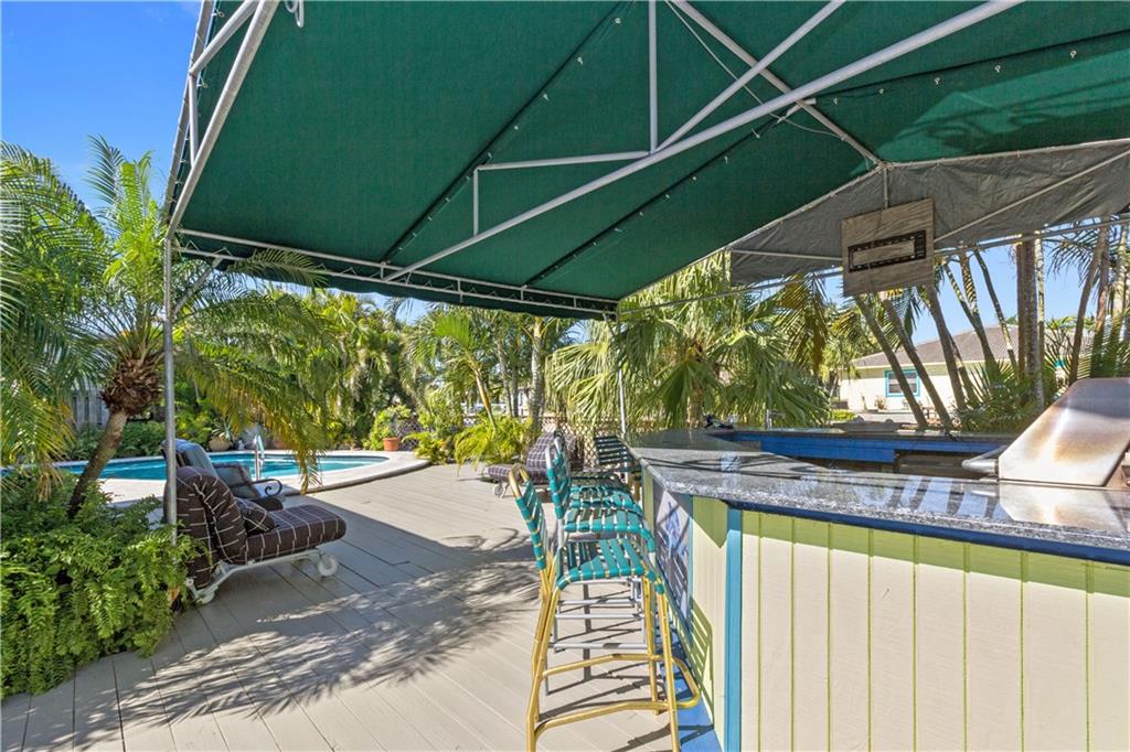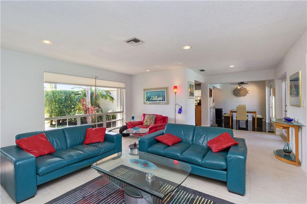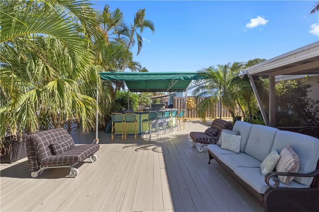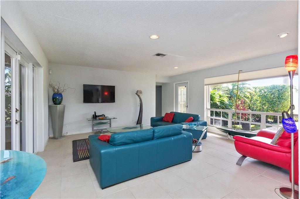 Situated on a wider canal and minutes to the Intracoastal from this waterfront pool home. Recent new A/C and blown attic insulation, remodeled kitchen with stainless steel appliances, custom cabinetry and granite countertops ++ extra bonus room for guests or hobby room. French doors from living & dining rooms to screened patio, pool deck and summer kitchen. Tropical landscaping providing privacy. Security system, hurricane shutters, pavered driveway, bi-level dock with 70 ft. on the water for your boat and waterfront dining opportunities. Close to beaches, shopping and I-95. Best bang for the buck at $519,500, come see it today.