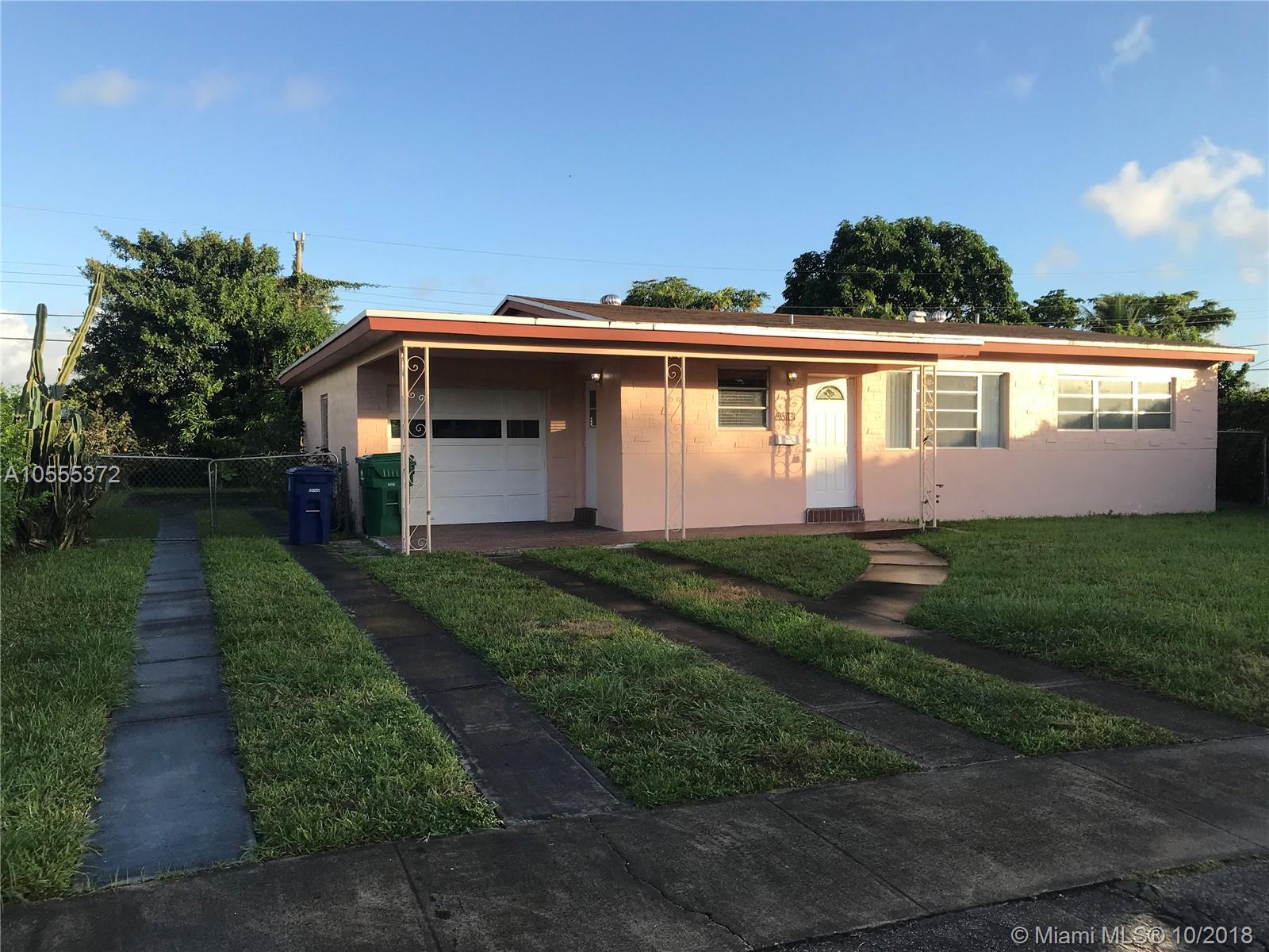 Excellent house 3/2 for first time home buyer , freshly painted, new A/C unit and Water Heater and garage with a big yard for a pool, park truck. Great location and neighborhood. Close to both Miami and F'Lauderdale Airports, Hard Rock football Stadium, Hard Rock Seminole casino, Beaches.