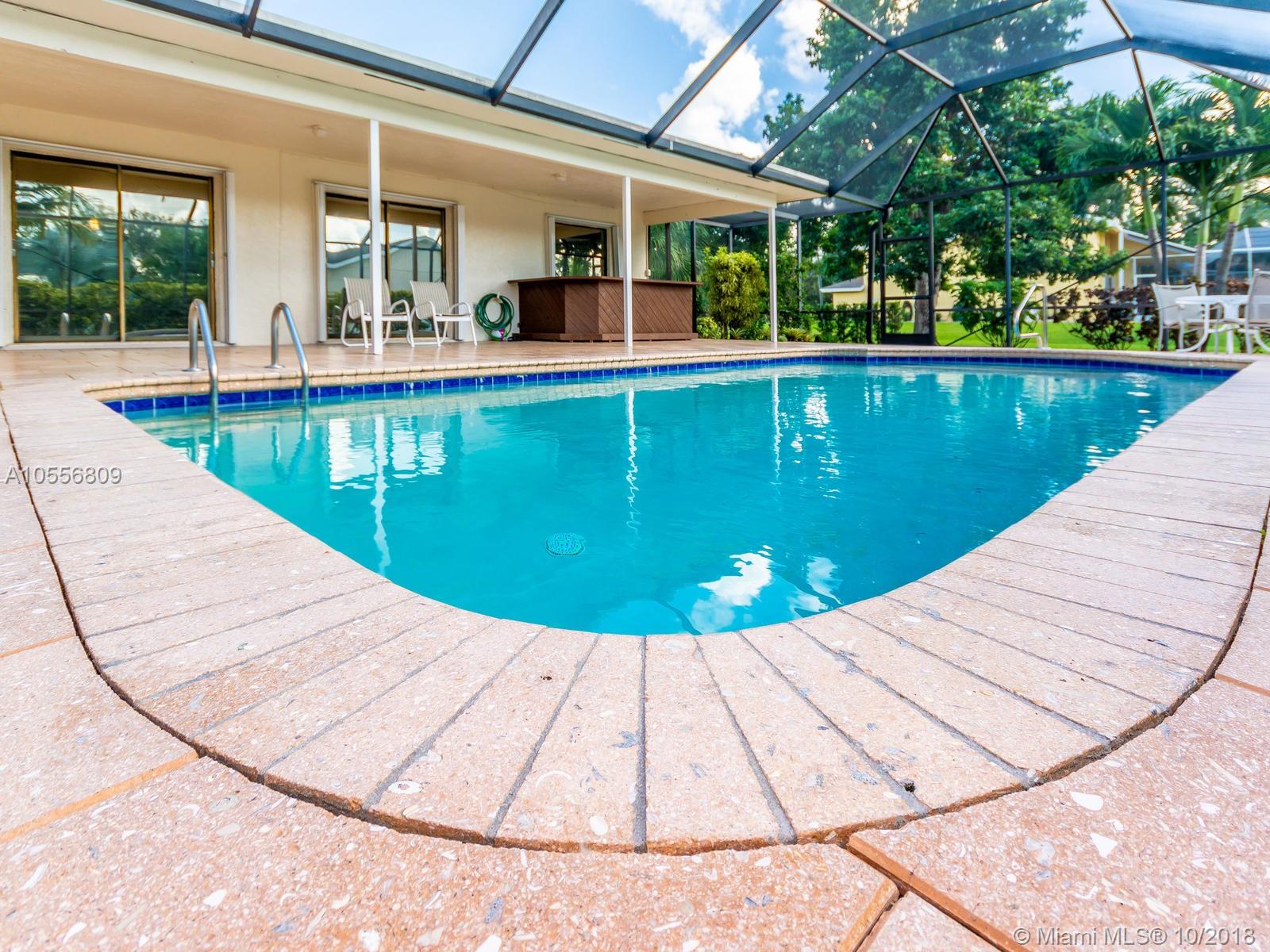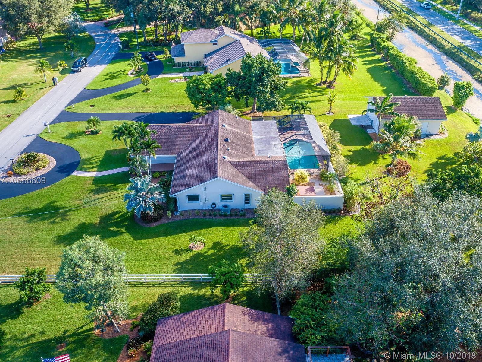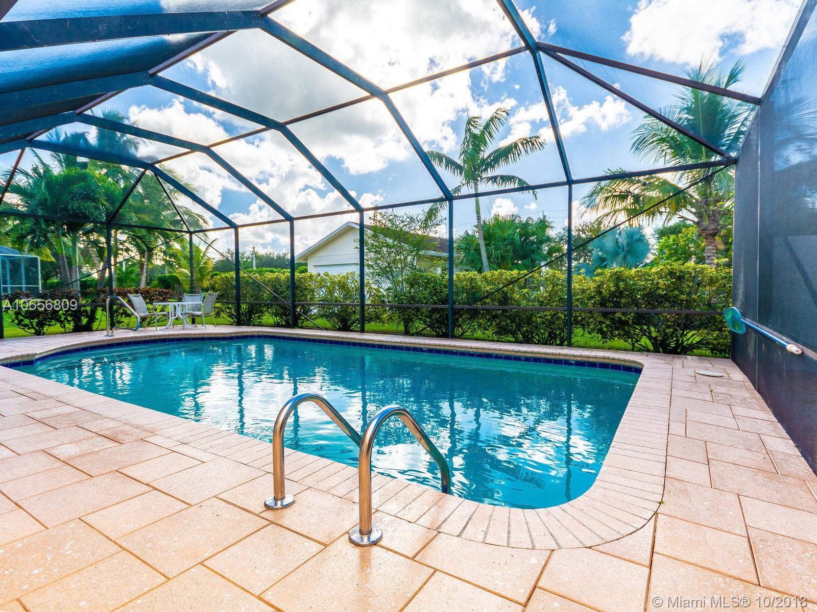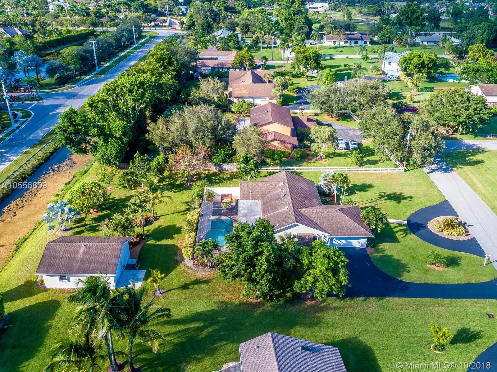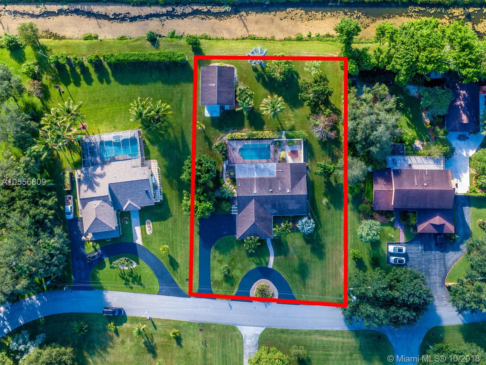 Beautiful 4/2 on a builders acre. Screened in pool with stone pavers, seperate hot tub,dual A/C units, Neutral tile floors throughout the living areas. Accordian hurricane shutters, freshly painted inside and out, Brand new screens,Alarm system, Bahama shutters on sliding doors, circular drive, paver stone walkway, Side loading 2 car garage. Additional 2 car garage in the back with electric and plumbing. Large avocado and mango trees! Septic tank was just cleaned out and serviced October. New pebble coat look on garage floor. Awesome lot on the canal. Great neighborhood of all custom built executive homes. NO HOA! Bring your boat and RV! Priced low to allow new buyers to update kitchen and baths to their taste. Same owner for over 36 years has meticulously cared for this immaculate home.