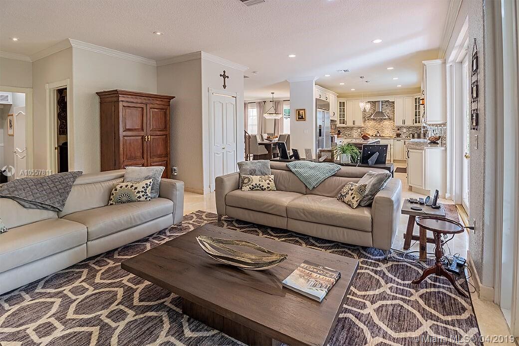 A cooks dream kitchen that has been extended and remodeled, GE monogram appliances, built in fridge, gas stove, wine cooler, high end cabinets with soft close drawers and pull out trays, lots of storage, ($100k in upgrades). 2 brand new Lennox a/c systems (less than a year old) variable speed 16.5 seer ($14,000). Built in high end entertainment center custom cabinets, electric fireplace and plenty of storage. Very private and easy to maintain Tropical manicured yard, high end faux grass ($12,000) perfect for entertainment and kids play area, BBQ area with large counter and shaded seating area. Office space that can be easily converted to playroom, storage or back to original 2 car garage. Garage door operational upgraded to hurricane codes. Somfy programmable electric shades upstairs.