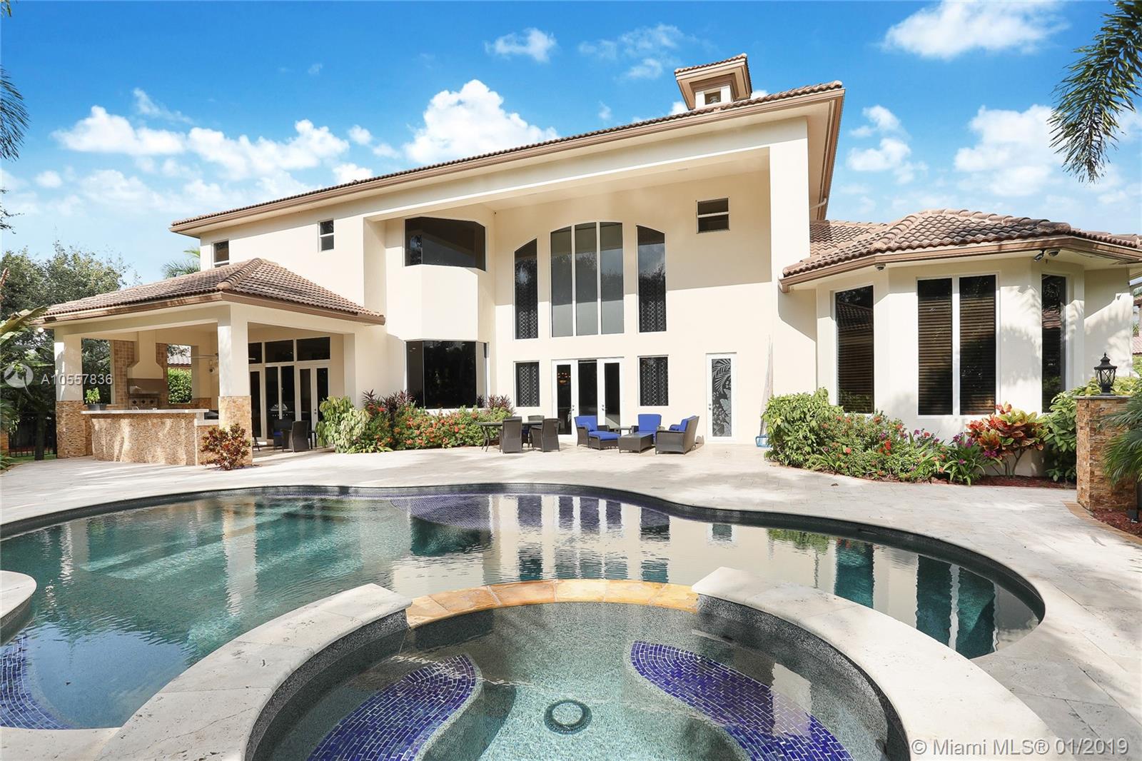 Welcome to the luxury boutique community of Grand Oaks! This is a stunning Mediterranean masterpiece, perfect for entertaining family and friends. This home features 6 bedrooms, 7 bathrooms and 4 car garage. This luxurious estate has an ideal floor plan, master bedroom & guest bedroom on first floor along with a private resort style pool, waterfall and spa paradise, chef's summer kitchen, lush foliage and two separate backyard spaces. This home is ideal for families that love to entertain! Additional features include guest master suite with private balcony, marble and wood floors, soaring ceilings, walk-in pantry and built ins throughout. Master bedroom features 2 large walk-in closets, sitting area, coffee bar, spacious shower. Enjoy this home with your family & friends for years to come!