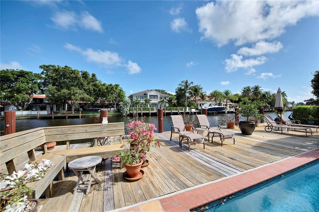 80' waterfront! No fixed bridges to ocean! First time on the market! Charming 3 bedroom 3 1/2 bath one story home with gated courtyard entry on 80' of water on exclusive SE 8th Street Isle in Rio Vista. Living room is at the center of the house with wood burning fireplace and vaulted ceiling. Entertaining is a breeze with the wet bar and climate controlled wine cellar. Gourmet eat-in kitchen with gas range, warming oven, huge quartz center island, and plenty of cabinets. Master bedroom suite overlooks the water, and includes his and hers closets, whirlpool tub and new shower. Property features a certified butterfly garden, rose garden in the back yard, waterfront pool and an orchid house on the side yard, as well as numerous tropical plants and flowers. View drone virtual tour!