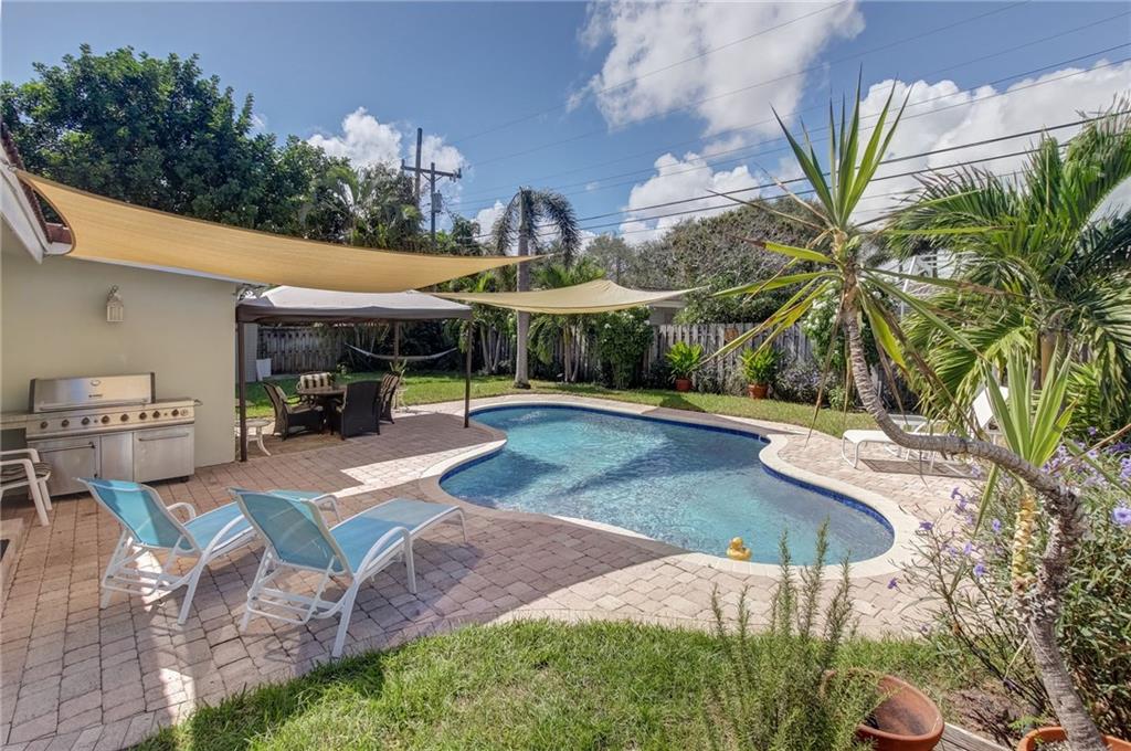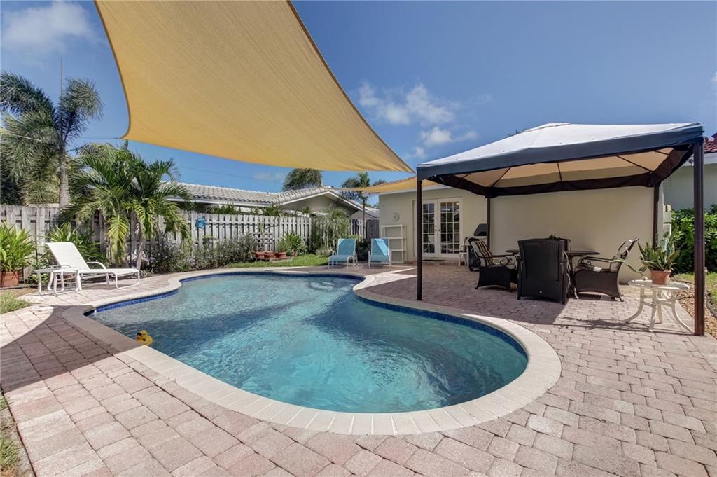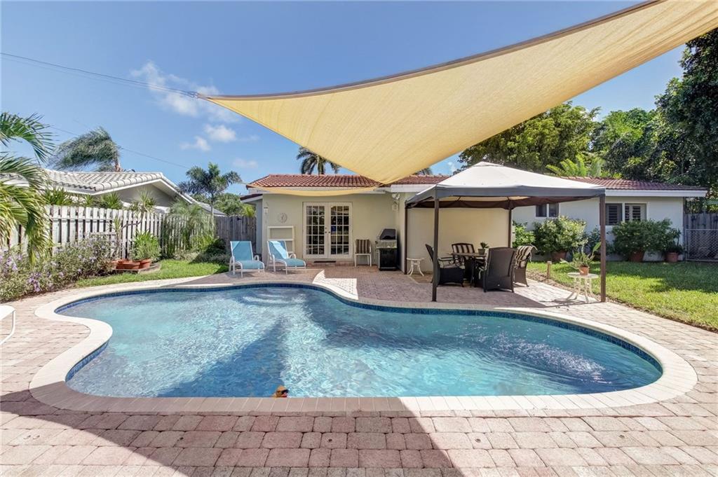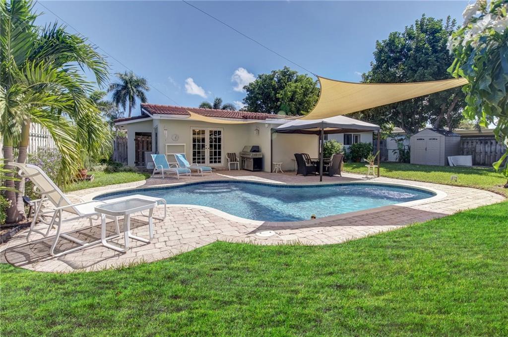 Impeccably maintained Imperial Point Pool Home. Your private oasis in East Ft Lauderdale. 2 Bedrooms plus office/den/3rd bedroom with separate entrance. Bright open floor plan with lots of light. Impact windows, plantation shutters, crown moldings, recessed lighting, updated open kitchen, tile and laminate floors, brand new AC system and water heater. 50 Amp whole house generator interface. Lush tropical landscaped private yard and pool area. Perfect for entertaining. Bicycle ride to the beach. Fabulous NE Ft Lauderdale location is minutes to shopping, the best restaurants and Pompano, Lauderdale By The Sea and Fort Lauderdale beaches.