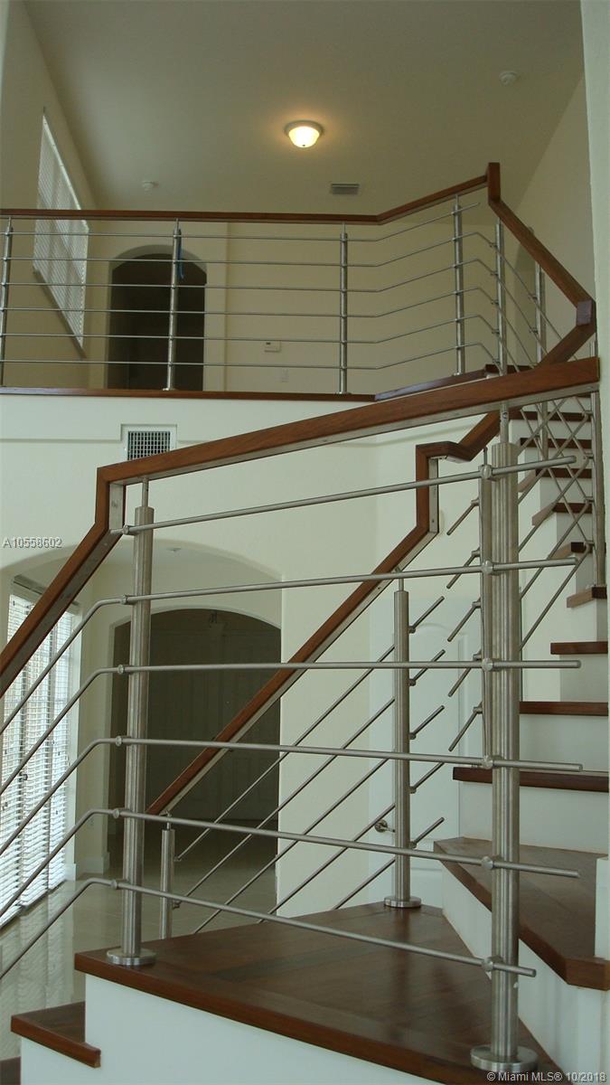 Miami Riches presents luxurious 2 story house in one of the most desired community in Doral, Island at Doral Isles. Live in an upscale home with 5 bedrooms and 4 1/2 bathrooms, 24x24 porcelain floors throughout the entire home, custom made wood stairs and spectacular modern stainless still handrails. Large kitchen with stainless steel appliances, granite countertops, high ceilings in the living room area and a captivating patio with a huge lot of 12,069 Sq.Ft lot, located in front of a reserved green area, excellent for a family and social gatherings. This upscale neighborhood has a complete Clubhouse with a recreational pool, gym, and multi sports court. Close to A+ rated schools. Well maintained community in the area which offers a safe environment and comfort to the whole a family.
