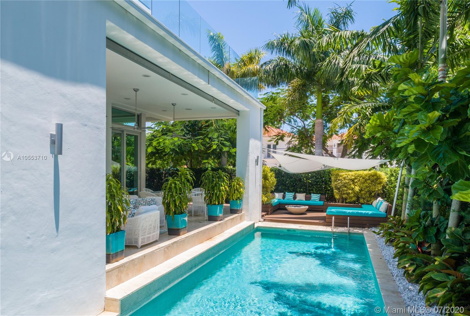 Income producing Hibiscus Island Miami Beach home with $26,000 month paying tenant. Lushly landscaped and strikingly modern two-level turnkey residence located in Hibiscus Island on a prime 9,500 sf corner lot. Combining functionality and design, it has an adj. area of 4.090 sf., 5 beds and 5.5 baths with glass walls that overlook the resort-inspired backyard. This tropical oasis features an inviting pool, fire pit, grill and lounging areas. Upstairs is the clean-lined master bedroom with 2 walk-in closets and spa-like bath, two guest bedrooms and a bedroom converted into a fitness room. Highlights include an open kitchen with upright wine cooler, office, two-car garage, rooftop terrace and more.