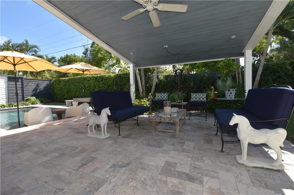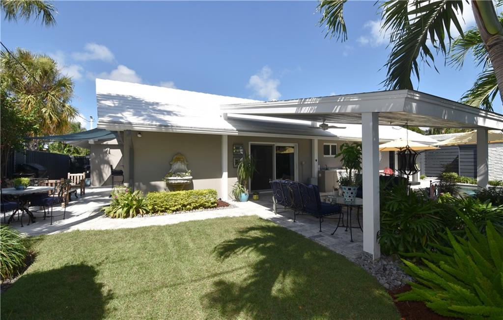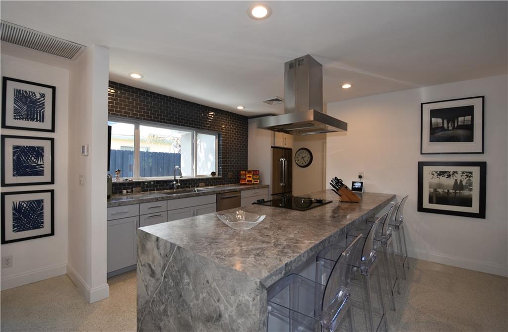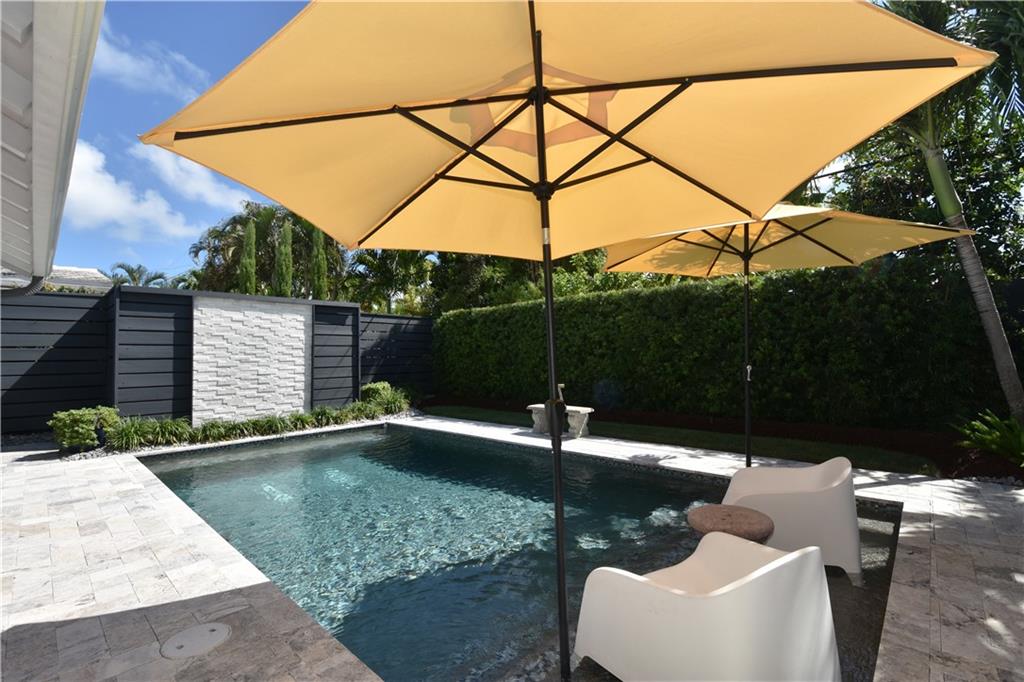 Designed by renowned South Florida Mid-Century Architect Lester Avery completely renovated pool home features a open floor plan and professionally restored gleaming terrazzo floors throughout. Freshly painted and exquisitely landscaped offers superb curb appeal. Kitchen with walk-in pantry, quartz counters, stainless steel appliances, and large center peninsula. Dinning room opens to separate outdoor dinning space with living room overlooking covered lanai and tropical garden. Master suite boast of inviting pool & garden view, walk in closet and bath with pool access. Spacious and beautifully landscaped outdoor area pool deck with water-fall wall feature makes for perfect entertaining. Salt water pool has auto-fill. Separate laundry room and storage including a walk-in attic. A Must See!