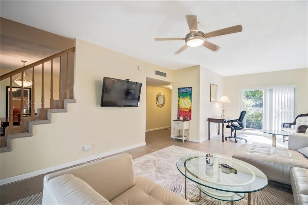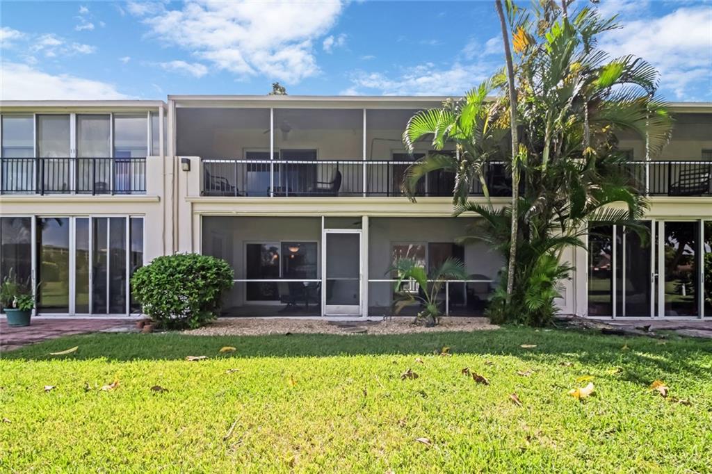 Renovated and extremely spacious townhouse in popular golfing country club setting! Beach less than 6 mi away! Enjoy views of water and expansive grassy area from both inside your new home or from huge screened patio or balcony. All hurricane impact windows and sliding glass doors! Open kitchen with breakfast bar, wood cabinets, granite, and SS appliances. Plus full size washer and dryer! All tile on ground floor. Huge Master Suite with large walk in closet and balcony access. All bathrooms are updated. 2 parking spots right in front. Steps to heated pool. Close to public tennis courts and playground. Maintenance includes internet, extended cable w/DVR, HD tv, water, pest control, roof, exterior painting, landscaping & insurance. No pets & 20% down as per association.