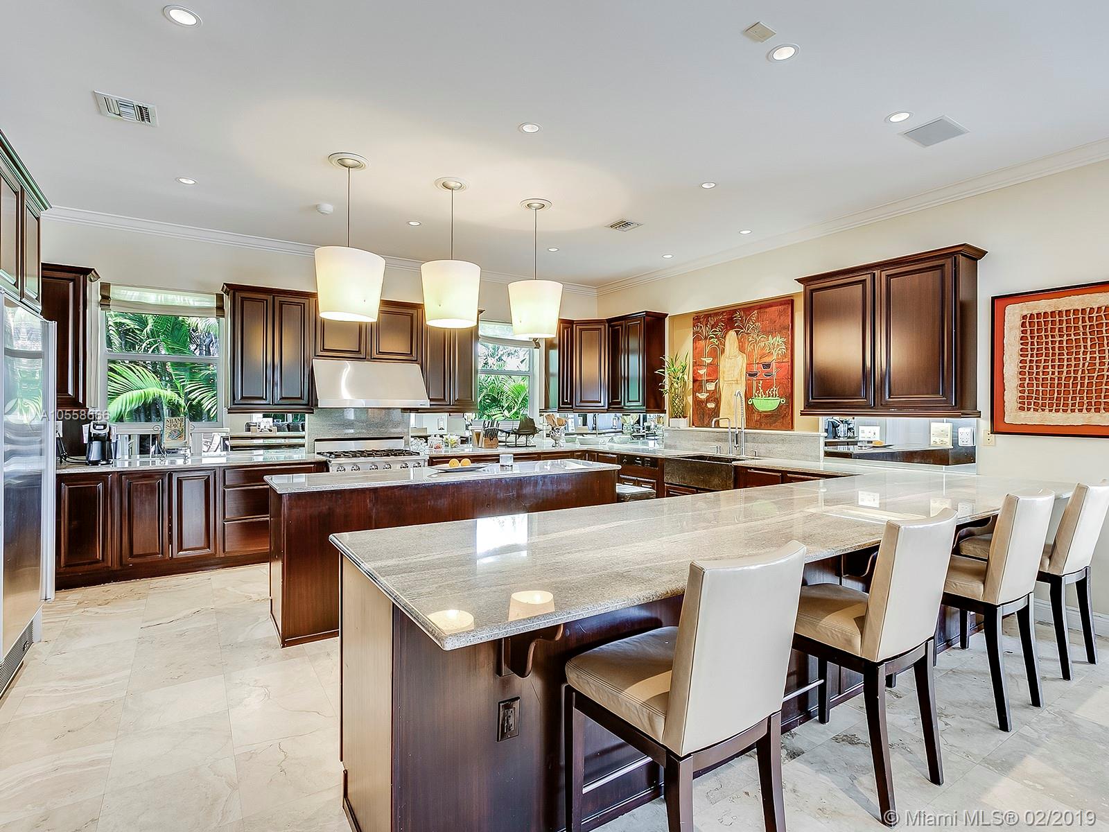 Enjoy an elevated vantage point atop Old Cutler Bay waterfront lot w/long, wide water views, snug harbor, prevailing breezes & exceptional privacy! Classic Miami Minimalist fully renovated in 2005. L-shaped footprint enhances pool/channel panoramas & affords dbl the outdoor covered living space w/morning sun/afternoon shade. Tiered patios hem seawall, wood dock & lift. Spacious interiors; marble & wood flrs. Gorgeous coffered living rm; formal dining rm; gourmet kitchen & adjoining family rm; game rm w/pool-access bath — all boast water views. En suite bdrms w/walk-ins; 2nd-flr Master suite crowns the resort-like sanctuary & commands ultimate water views. This handsome tropical estate embodies the SoFla waterfront lifestyle in highly desirable gated Old Cutler Bay.
