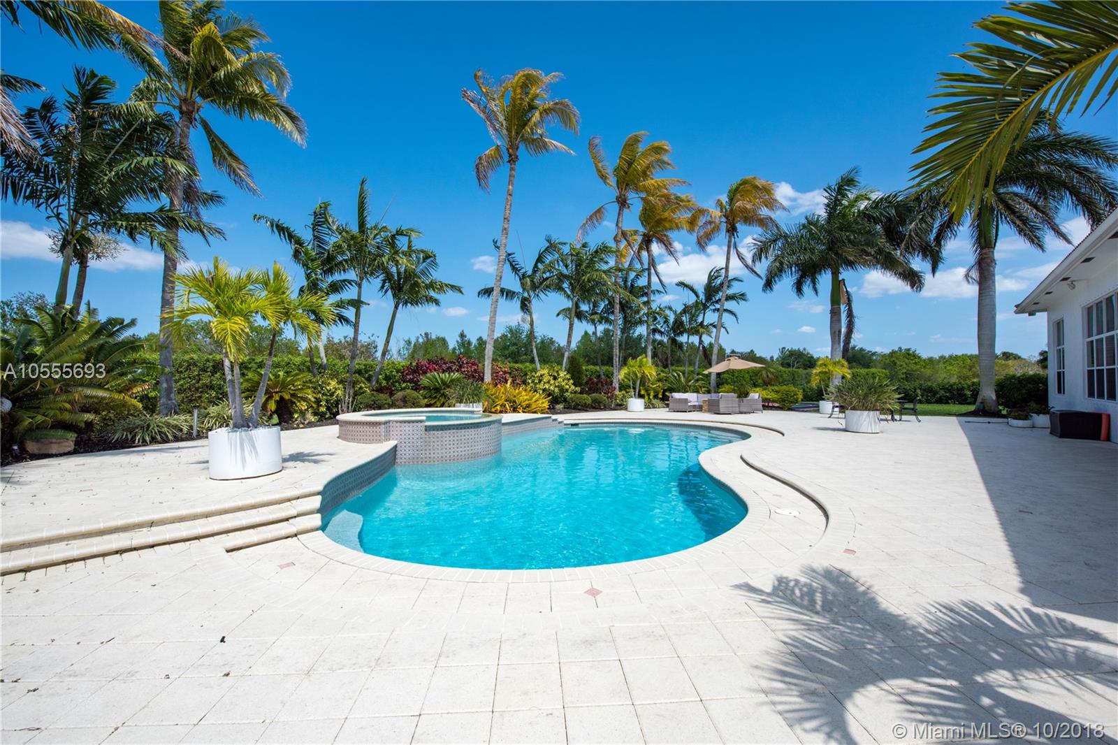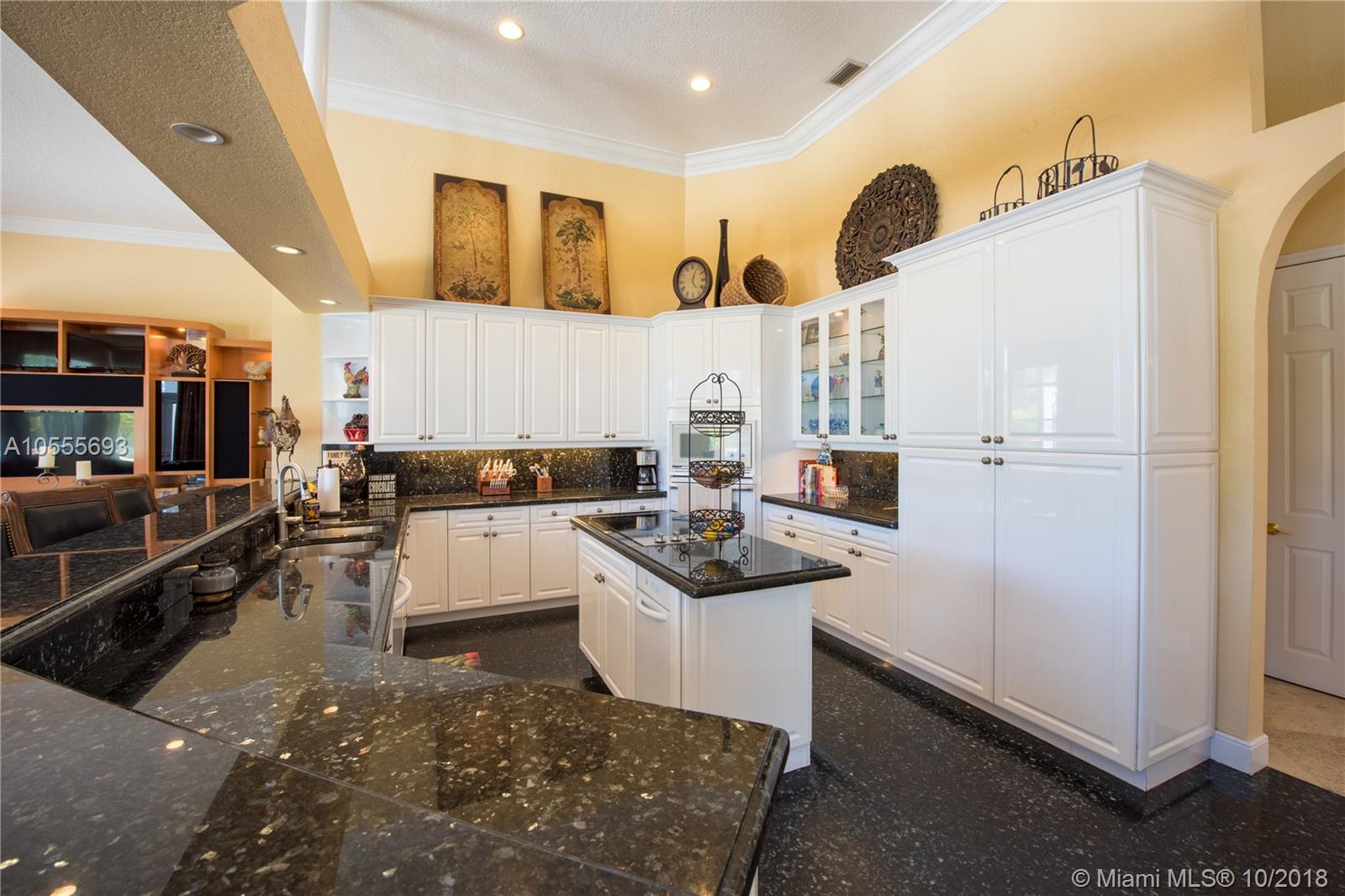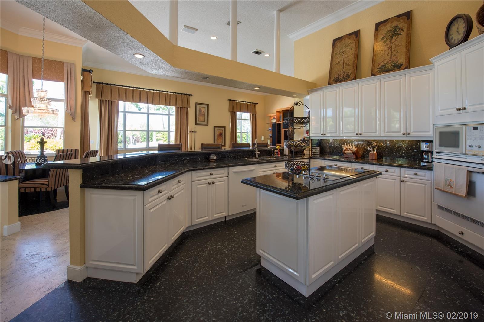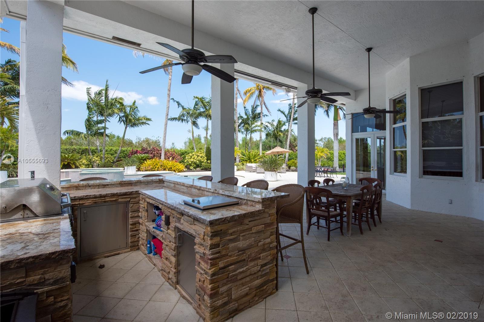 Large 5 bedroom 4 bath home with one room used as office with built ins. Brand new roof in progress with warranty to buyer. Gated, in Mystique Estates, large lakes and sidewalks throughout neighborhood including a children's playground. Great family layout on over an acre. Property backs up to Davie horse trail. No rear neighbors. Outdoor resort style oversized pool, heated spa, large deck, stone fire pit, built in grill with refrigeration and large bar. Subzero refrigerator freezer, wet bar, and trash compactor. Travertine floors throughout entire house. Master has two walk in closets with built ins. And don't forget the Basketball court. This home speaks for its self. If you are looking for a great family home with over an acre of land on a cul de sac than this is it. Priced to sell.