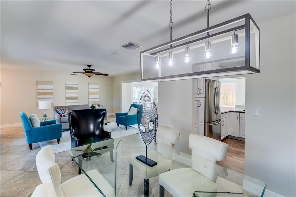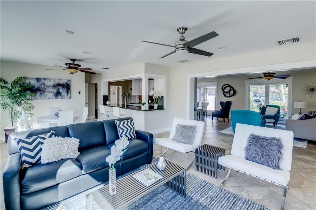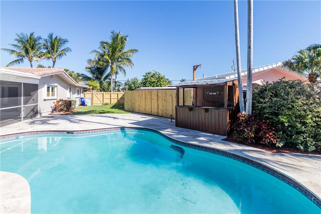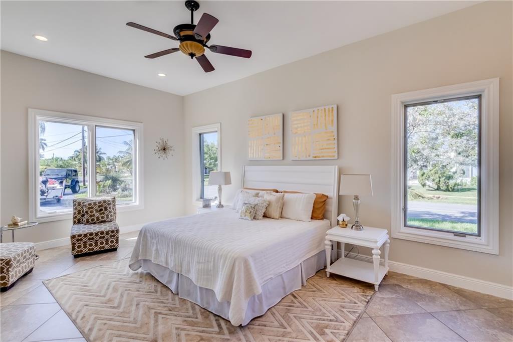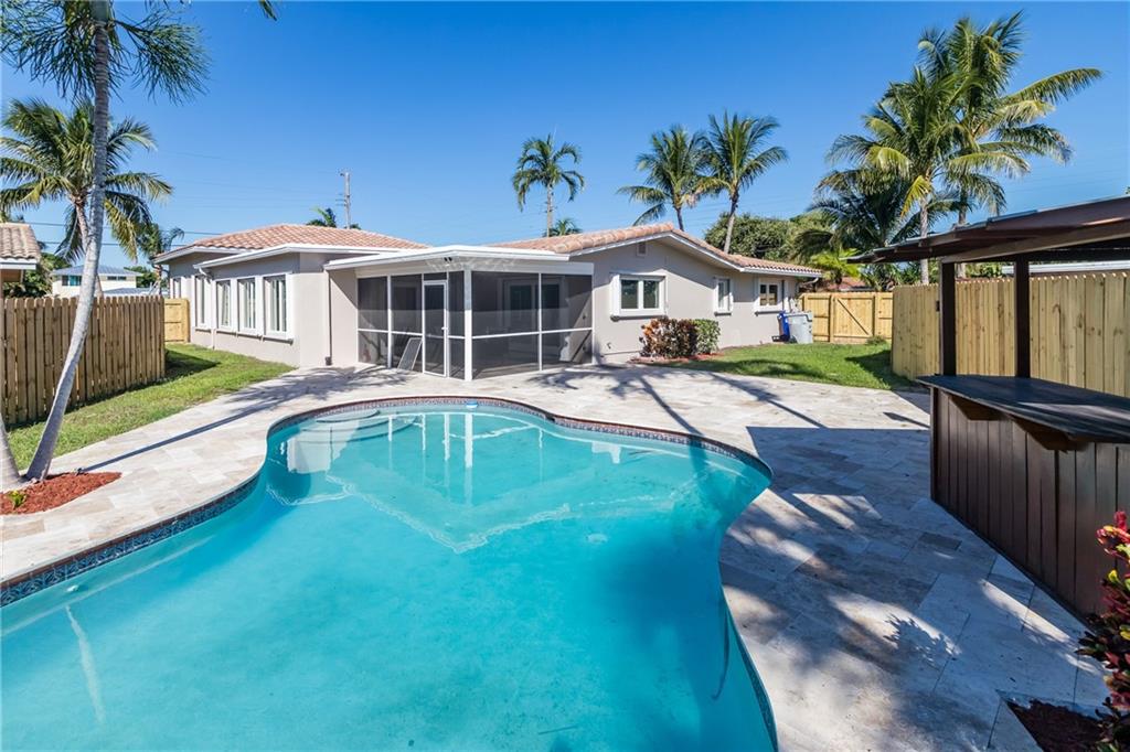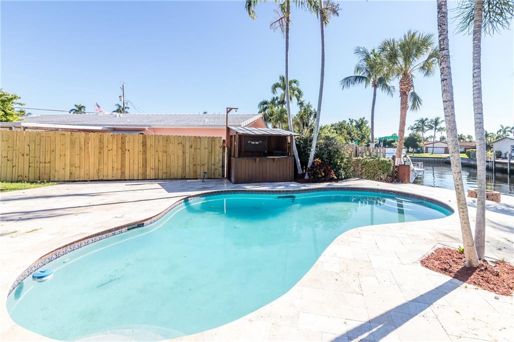 Welcome to your fully updated 4/3/2 private tropical boater's paradise with breathtaking views of ocean access waterway in two directions!! Only one fixed bridge at US-1 about 12 feet high, open travertine pool deck plus screened porch, tiki bar, fire pit, step down to private dock. Large 20" tile throughout main house, plank tile in the 4 bedrooms. 2 separate master quarters with a total of 3 bathrooms within 2,520 sf of air conditioned space to accompany guests and family, open granite kitchen looking out to house and waterway. Separate dining and living areas with open feel. Neutral colors & bright trim throughout. Large insulated casement windows with accordion shutters. Walk in closets & interior laundry room. New appliances, water heater, ice cold ac, electric, fence and more
