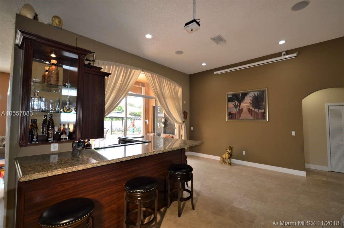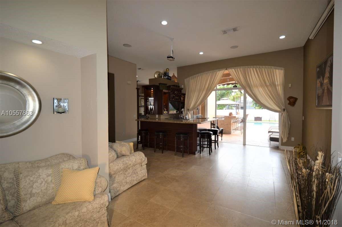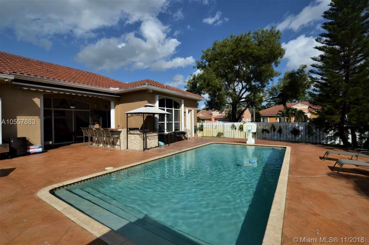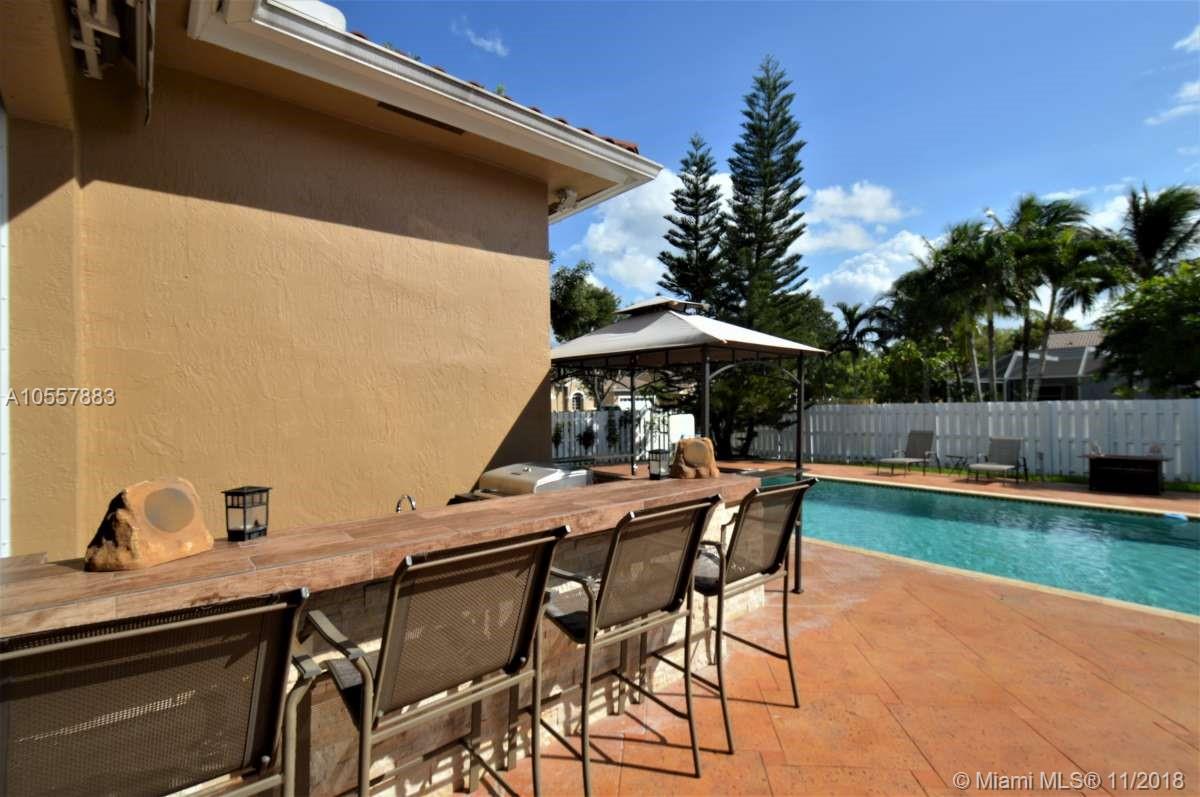 ENTERTAINERS PARADISE!! Beautifully remodeled pool home on oversized lot on a cul de sac in the Huntington community of Miramar. This 4 bedroom, 3 bath home was fully remodeled in the last 4 years including new roof, new A/C, and new bathrooms. Kitchen has been fully remodeled including cabinets, quartz counter tops, a large island with wine refrigerator and s/s appliances. Indoor cherrywood bar with built in wine cooler and a projection television system with surround sound throughout the house. Fantastic built in outdoor summer kitchen featuring wine bar and caja china. Pool safety fence included. Indoor and outdoor video security system. Accordion shutters. Retractable exterior awning. Easy access to all major highways and close to shopping and great dining. Excellent schools.