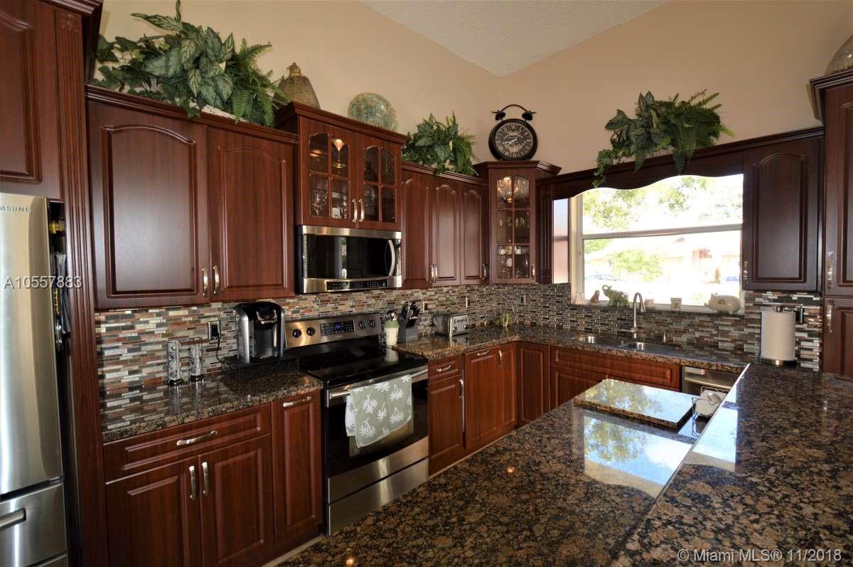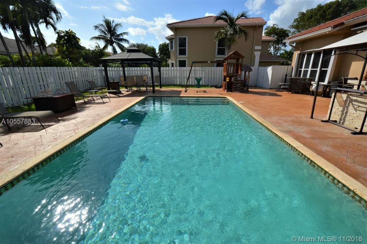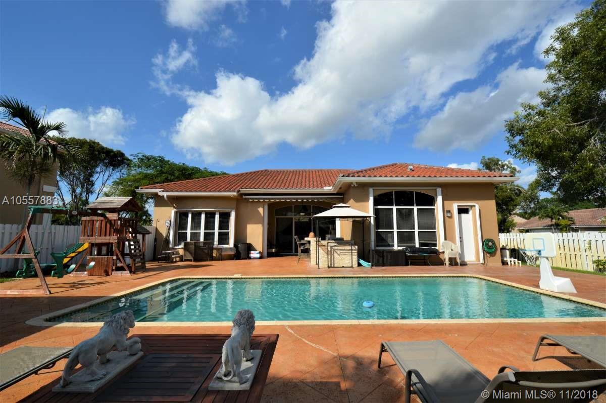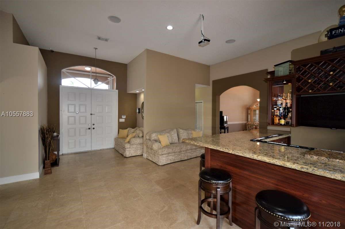 ENTERTAINERS PARADISE!! Beautifully remodeled pool home on oversized lot on a cul de sac in the Huntington community of Miramar. This 4 bedroom, 3 bath home was fully remodeled in the last 4 years including new roof, new A/C, and new bathrooms. Kitchen has been fully remodeled including cabinets, quartz counter tops, a large island with wine refrigerator and s/s appliances. Indoor cherrywood bar with built in wine cooler and a projection television system with surround sound throughout the house. Fantastic built in outdoor summer kitchen featuring wine bar and caja china. Pool safety fence included. Indoor and outdoor video security system. Accordion shutters. Retractable exterior awning. Easy access to all major highways and close to shopping and great dining. Excellent schools.