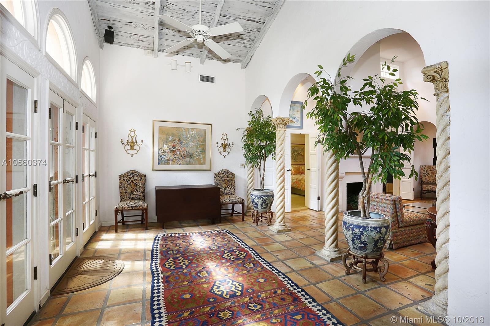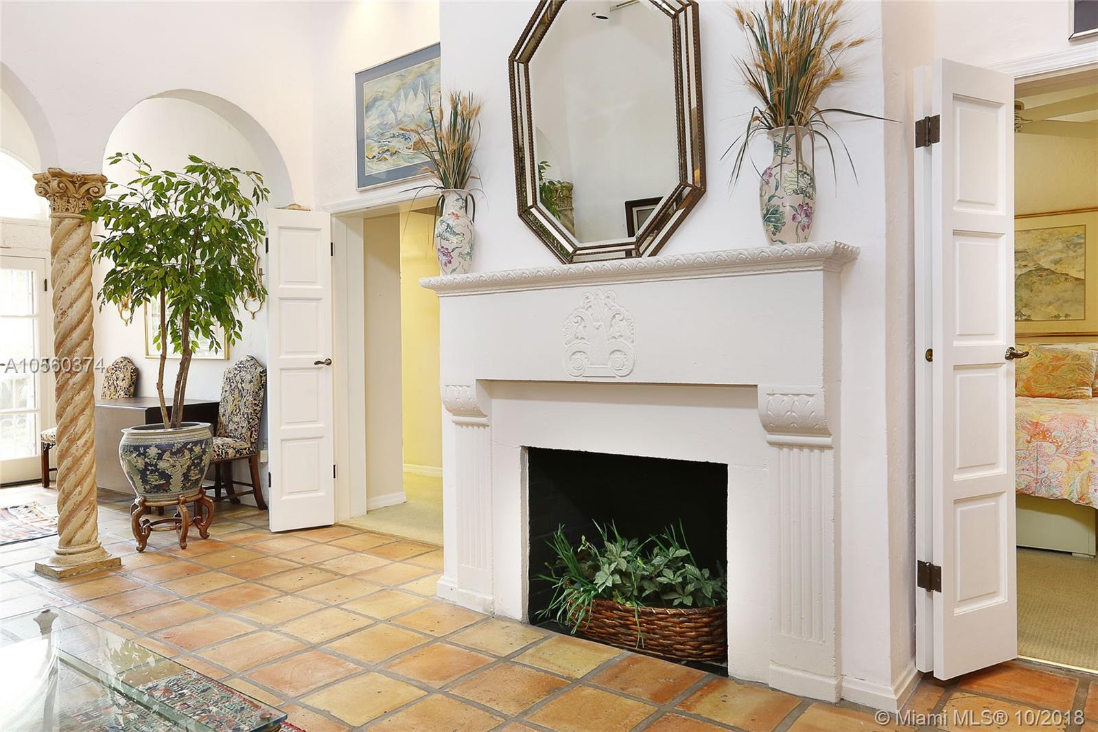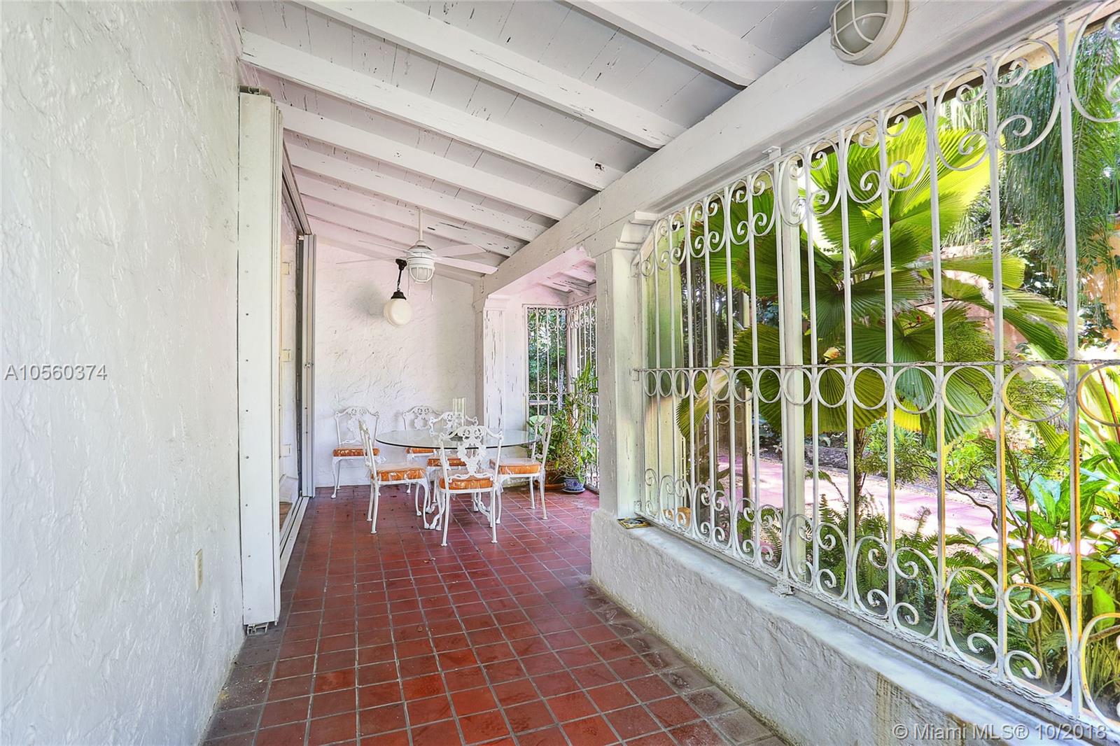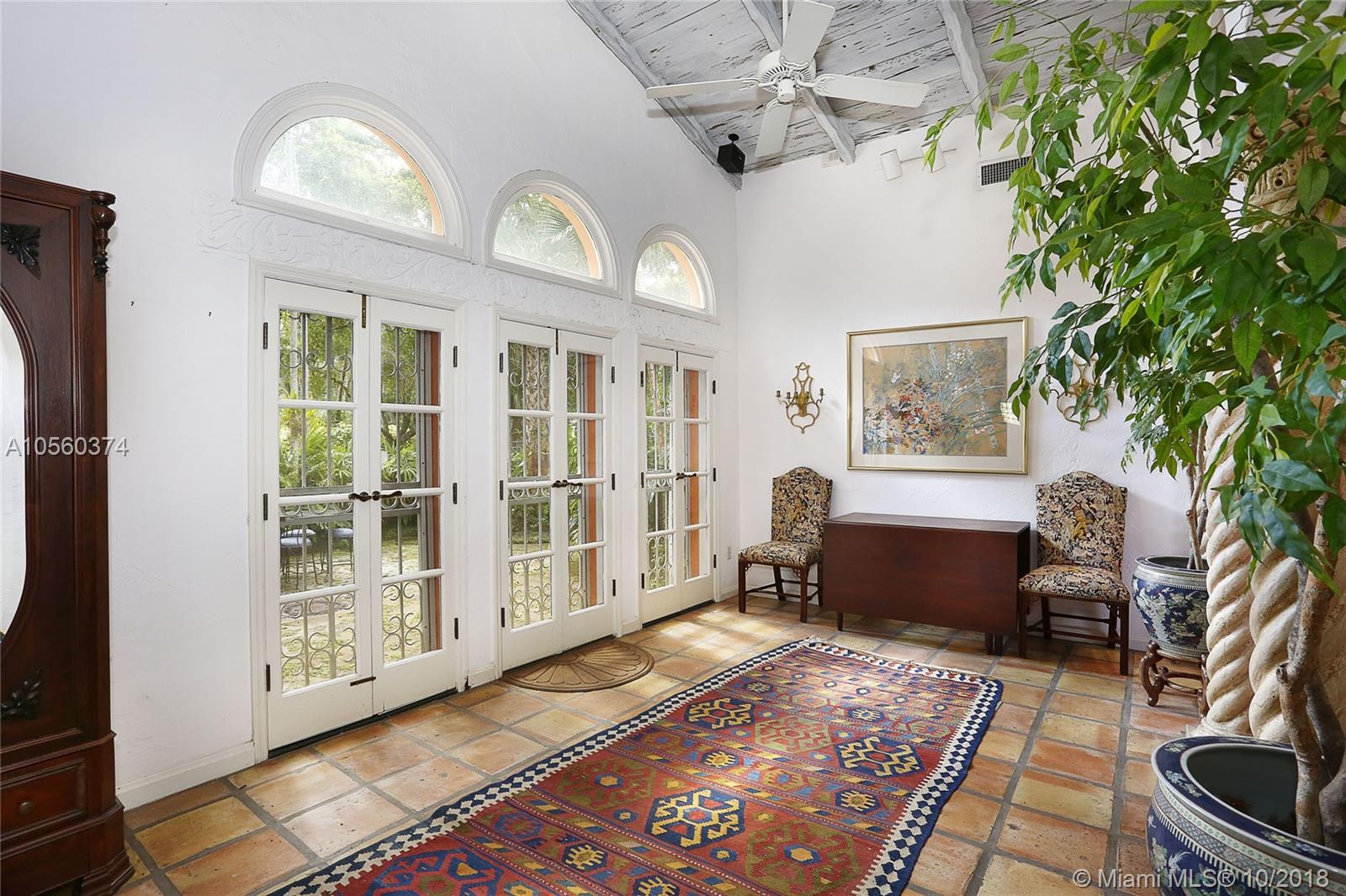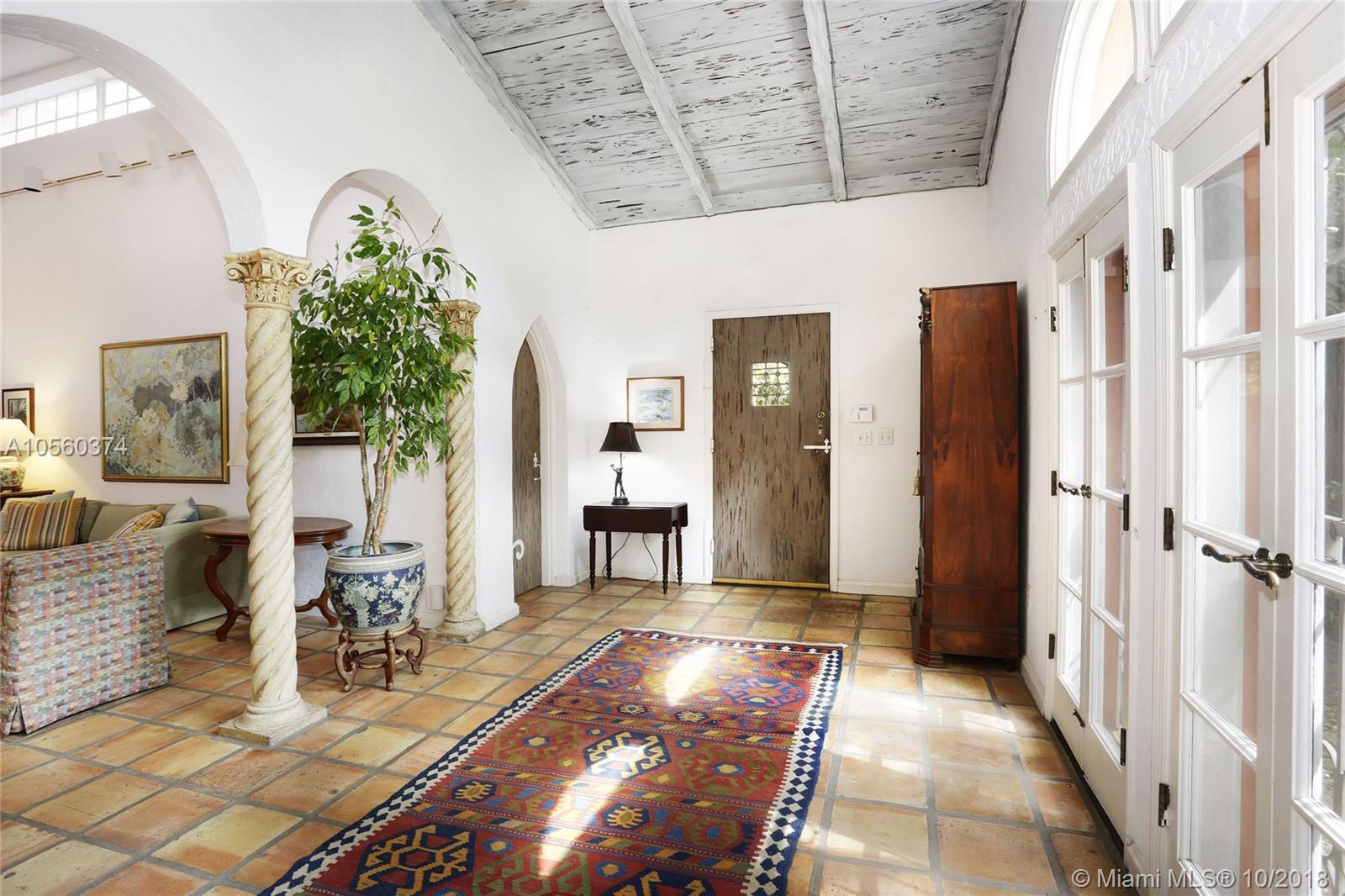 This 3br/3ba home is situated on one of the prettiest Gables streets & just steps from the Granada golf course! It is truly special with Moorish details & arches, 2 story ceiling in the living room, Pecky Cypress front door & ceiling details, working fireplace, open floor plan & split bedroom layout. The newly renovated kitchen opens to a dining area that accesses the screened patio, perfect for grilling or outside dining. The front of the house also enjoys a wonderful vantage from the beautiful patio with cut coral floors & lush landscaping. The home has been lovingly maintained & features a master suite downstairs with one more bedroom or den down, an office & private bedroom upstairs that can be accessed from a side door. Detached garage, laundry room, 2012 roof, & gorgeous details.