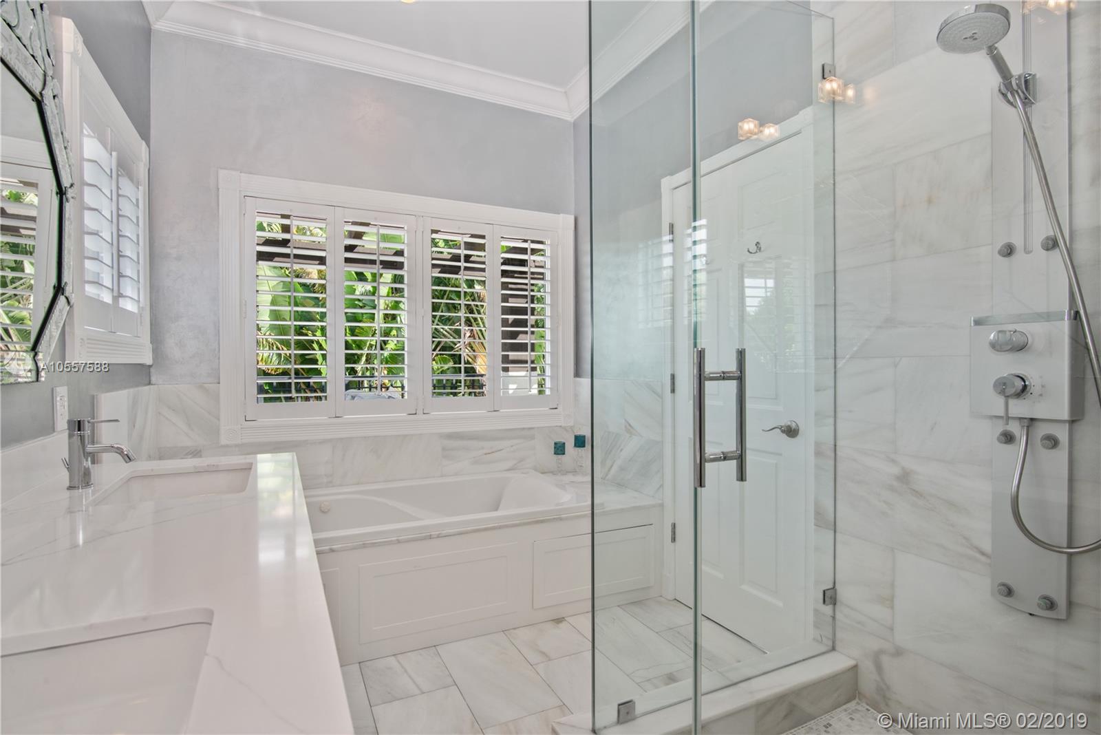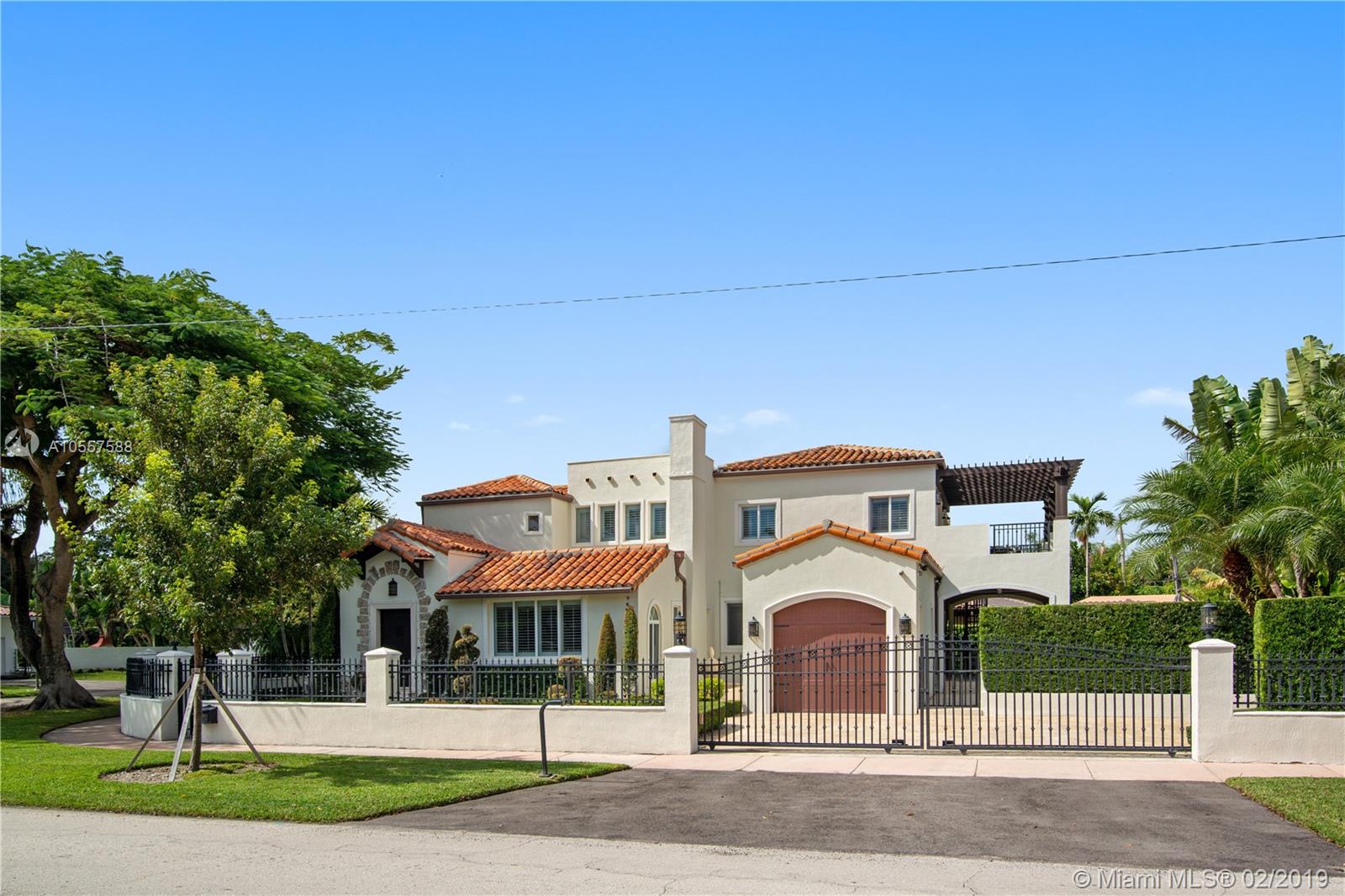 Completely renovated Mediterranean masterpiece, with a seamless 2010 addition,offering a classic contemporary modern design.Brimming with architectural beauty such as a grand foyer entrance, delicately refinished wood floors,Calacatta marble fireplace,recessed ceilings enhanced with state of the art lighting, security,sound,camera and irrigation systems.Upstairs,a spacious & dramatic master suite with custom vanities, quartz countertop,metallic paint,venetian mirrors,a glorious terrace + an additional bedroom with ensuite bath. 3 bedrooms,2 baths downstairs.Pretty pool and spa w/ remote waterfall, fountain, a tranquil covered lanai & summer kitchen. Walled & gated for privacy, this residence offers immense curb appeal near Riviera Country club, fine dining, theaters, neighborhood parks..
