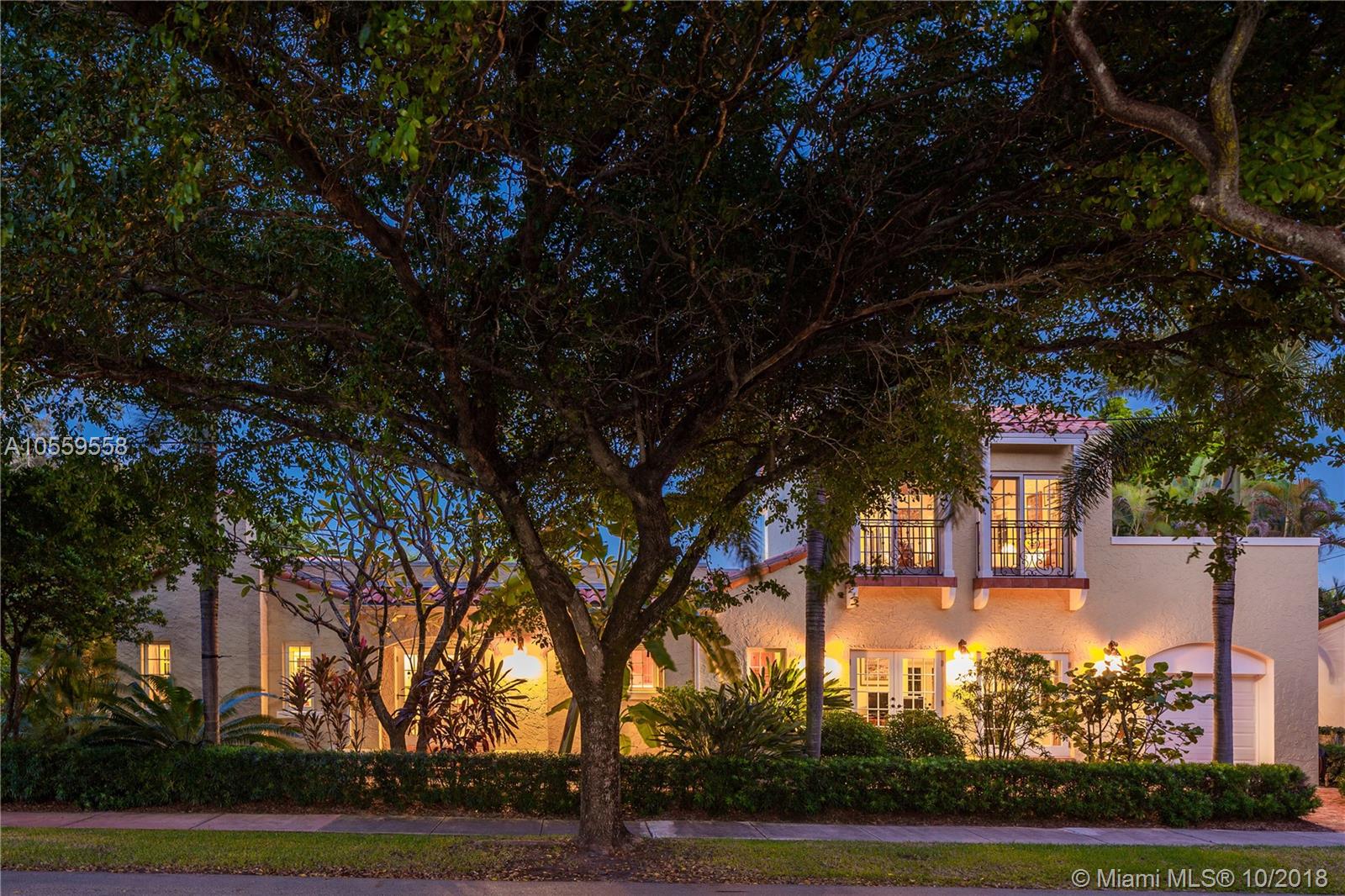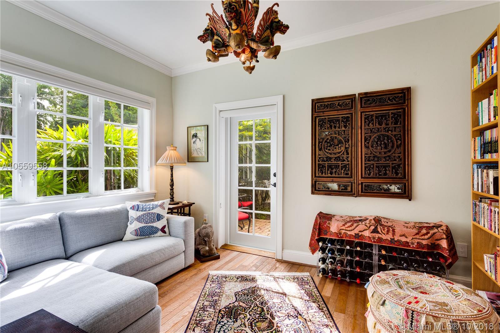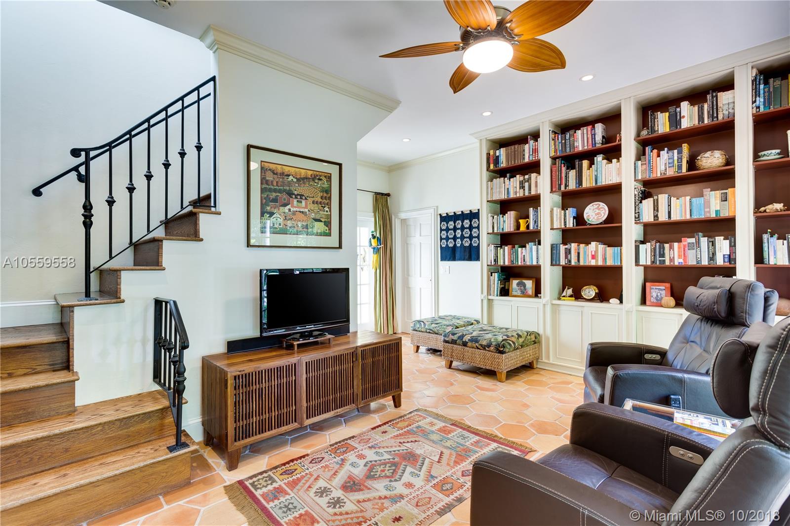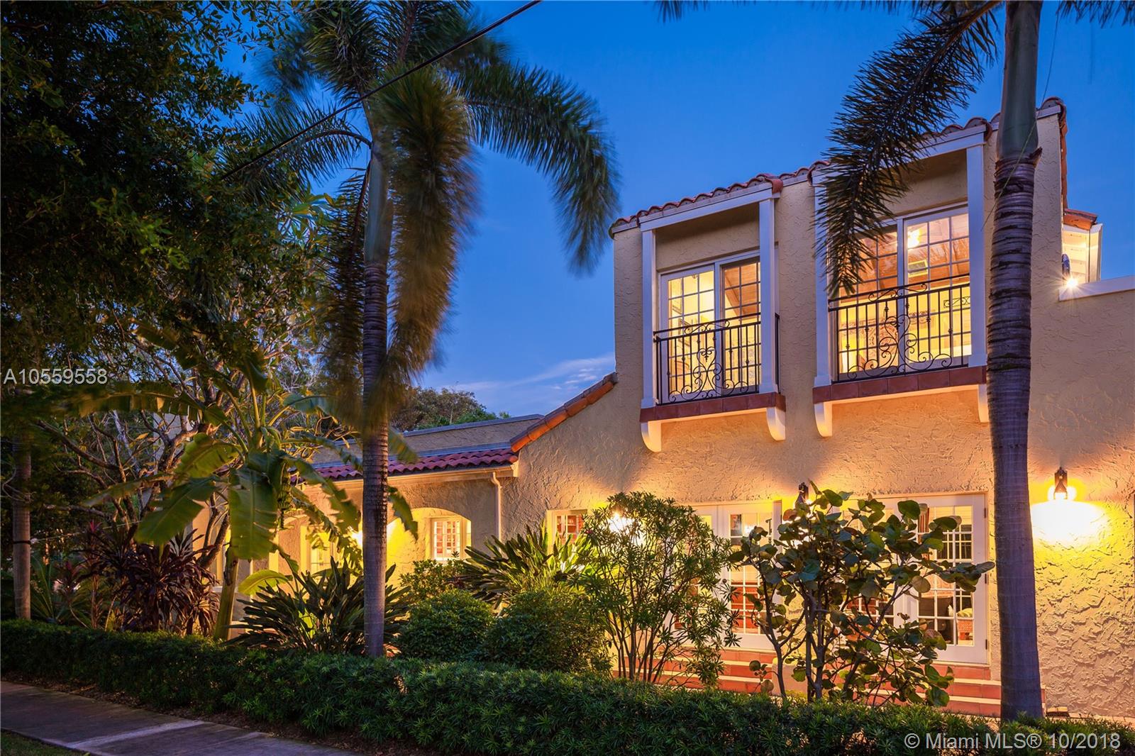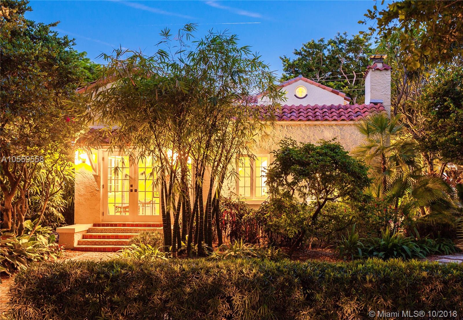 The very definition of "turn-key" this 3/2 "Old Spanish" villa in a top Gables location is in immaculate, move-in condition from top to bottom - just move in and pop the champagne cork! Impact doors & windows, 2 new AC units in 2015, Dec. 2006 roof, 2 bedrooms (1 with its own office) downstairs & a large, 2nd floor master bedroom with large bath, walk-in closet & marvelous sundeck. There is a large foyer leading to a formal living room with fireplace & hardwood floors, formal dining room, newer kitchen with dual-fuel range, granite countertops & a family room with wet-bar, high ceilings & built-in library shelves. Roomy garage with extra storage space. Like a luxury townhouse this home offers elegance, space & A+ condition with vintage charm and a lovely, low maintenance garden space.