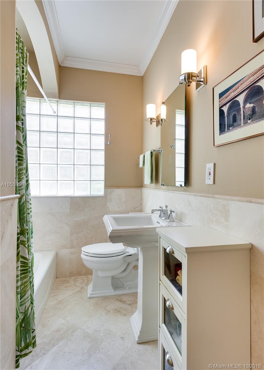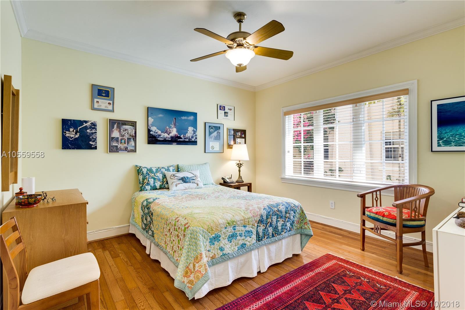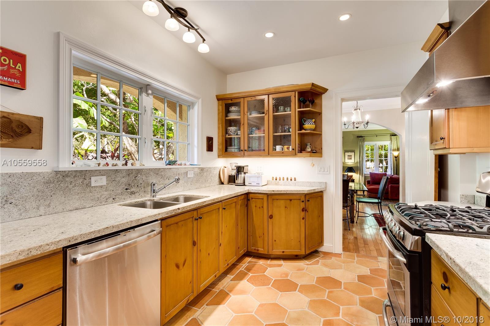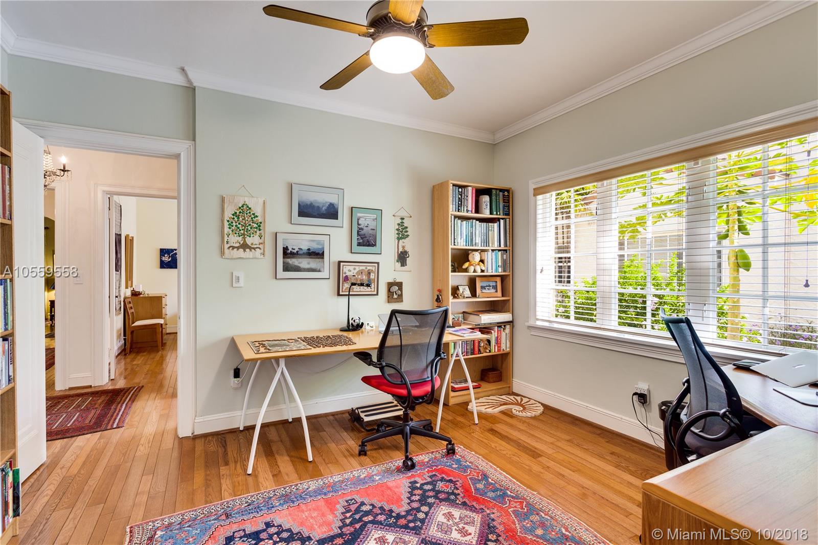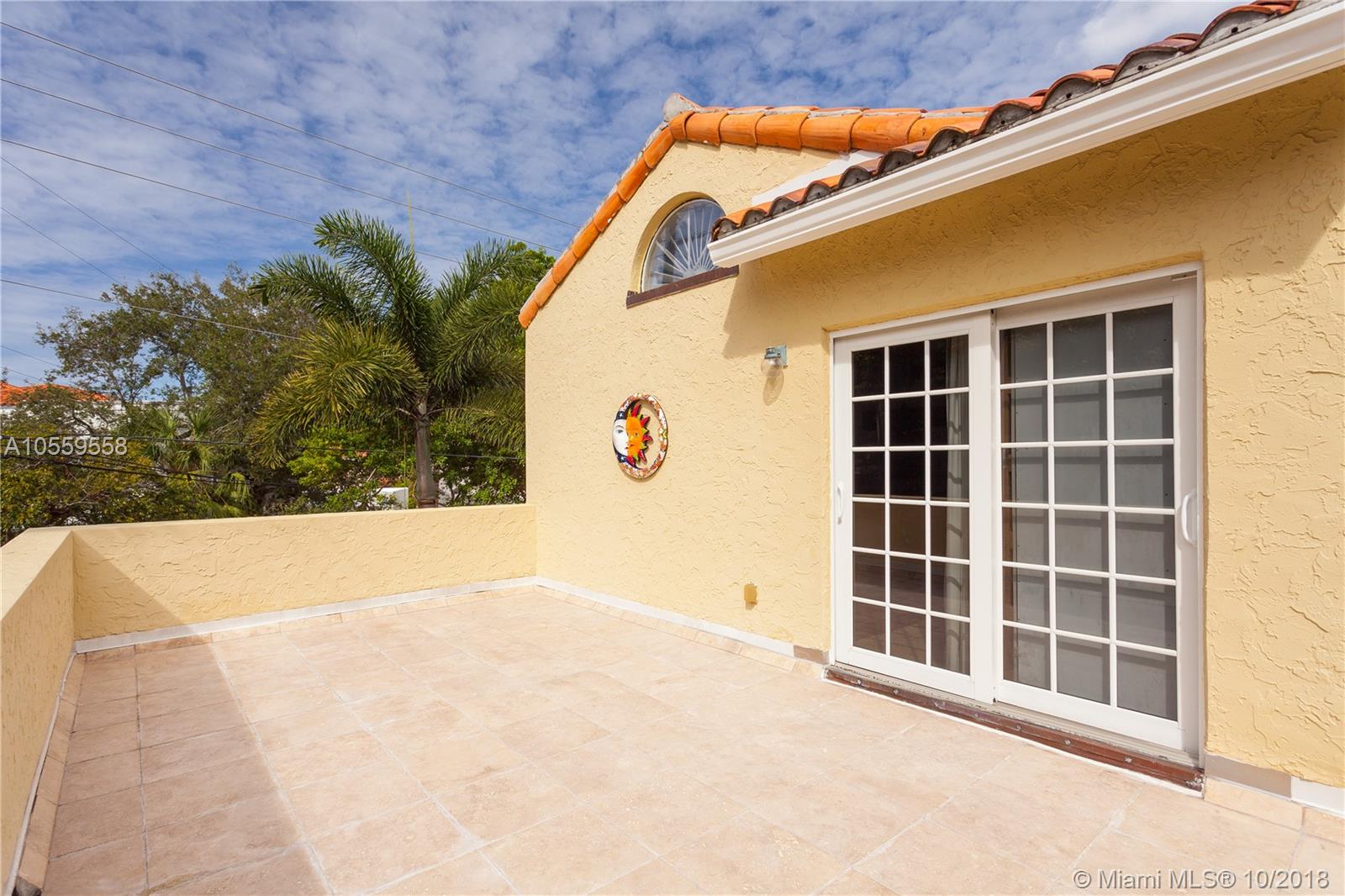 The very definition of "turn-key" this 3/2 "Old Spanish" villa in a top Gables location is in immaculate, move-in condition from top to bottom - just move in and pop the champagne cork! Impact doors & windows, 2 new AC units in 2015, Dec. 2006 roof, 2 bedrooms (1 with its own office) downstairs & a large, 2nd floor master bedroom with large bath, walk-in closet & marvelous sundeck. There is a large foyer leading to a formal living room with fireplace & hardwood floors, formal dining room, newer kitchen with dual-fuel range, granite countertops & a family room with wet-bar, high ceilings & built-in library shelves. Roomy garage with extra storage space. Like a luxury townhouse this home offers elegance, space & A+ condition with vintage charm and a lovely, low maintenance garden space.