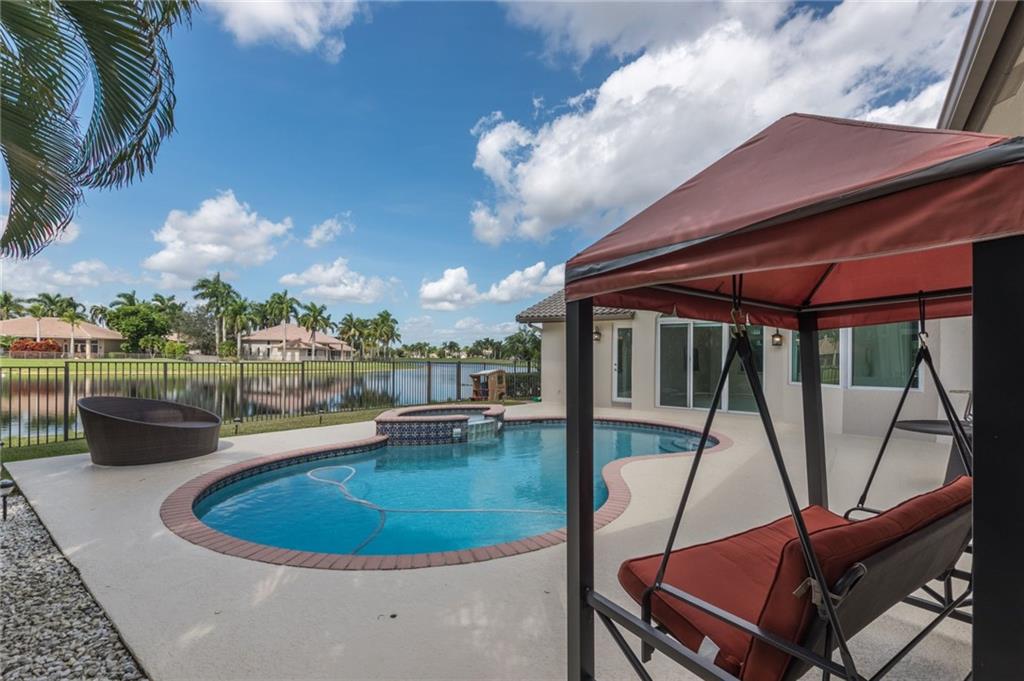 SPECTACULAR HOME WITH LAKE AND GOLF VIEWS! ENJOY WESTON'S SUNSET FROM THIS POOL HOME. 4 BEDROOMS + DEN + OFFICE WITH 3.5 BATHS. MARBLE FLOORS IN ALL LIVING AREAS AND MASTER , WOOD FLOORS IN DEN, OFFICE AND KIDS BEDROOMS. ROOF IS 5 YEARS OLD, IMPACT WINDOWS AND DOORS, RENOVATED KITCHEN WITH WOOD KITCHEN CABINETS,GRANITE TOPS & TOP OF THE LINE JENNAIR APPLIANCES, BUILT IN MIELE COFFEE MAKER AND NEW SAMSUNG MICROWAVE . CUSTOMS CLOSETS, BLACKOUTS IN BEDROOMS. FRESHLY PAINTED (EXTERIOR AND INTERIOR), 2 AC RECENTLY REPLACED (2014 & 2015), 3 CAR GARAGE, CIRCULAR DRIVEWAY AND MUCH MORE.