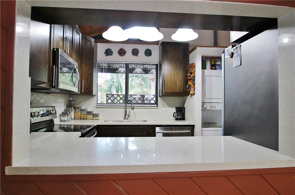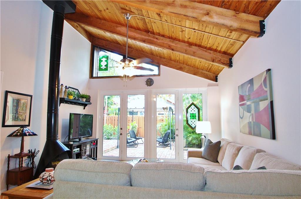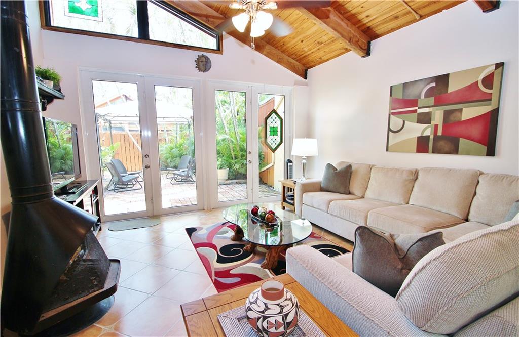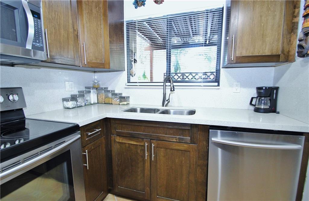 A Great opportunity to own a Beautifully Updated Home in The Lofts. Upon stepping into this unique property you are immediately taken over by the wide open Floor Plan and Natural Bright Light flowing through the huge 2 story wall of Glass & French Doors. Overhead the high Vaulted Wood Ceilings create a very warm and Inviting feeling. Open Living / Dining / Kitchen concept are a perfect setting for entertaining Friends & Family. Over sized Living Room overlooks a Tranquil & Serene, Chicago Bricked, Private, Fenced Courtyard. Additional Property features include Brand New Kitchen, Stainless Steel Appliances & Quartz Counters/All New Impact Windows & Doors/Tile floors through-out/Updated Bathrooms/Fixtures/Lighting... Charming front Porch overlooks the Oak Tree Lined Cul-De-Sac street.