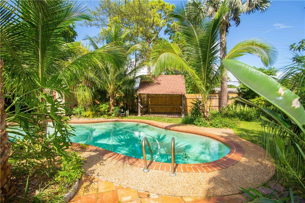 PRICE REDUCED - HURRY!! If you are looking for a Tropical Pool home tucked beneath the Palms - this is it! ...with room to park your Boat AND your RV. The kitchen is the hub that opens to the living area on one side and a spacious Florida Room on the other. Sliders open from the Florida Room to the Pool and Tiki area. A large screened porch adds space and is a great entertaining area. A third bedroom has been added w/a vaulted ceiling and closet, everything has been permitted. Highlights of this home include... a Tiki Bar, Paver Driveway for at least 4 cars, Superior Shed (impact rated), Large Carport, Large Lot, Electric Gate, New fencing, Gas Stove, Stainless Appliances, Updated Electrical, private tropical landscaping. It needs your loving touch to bring it to life.