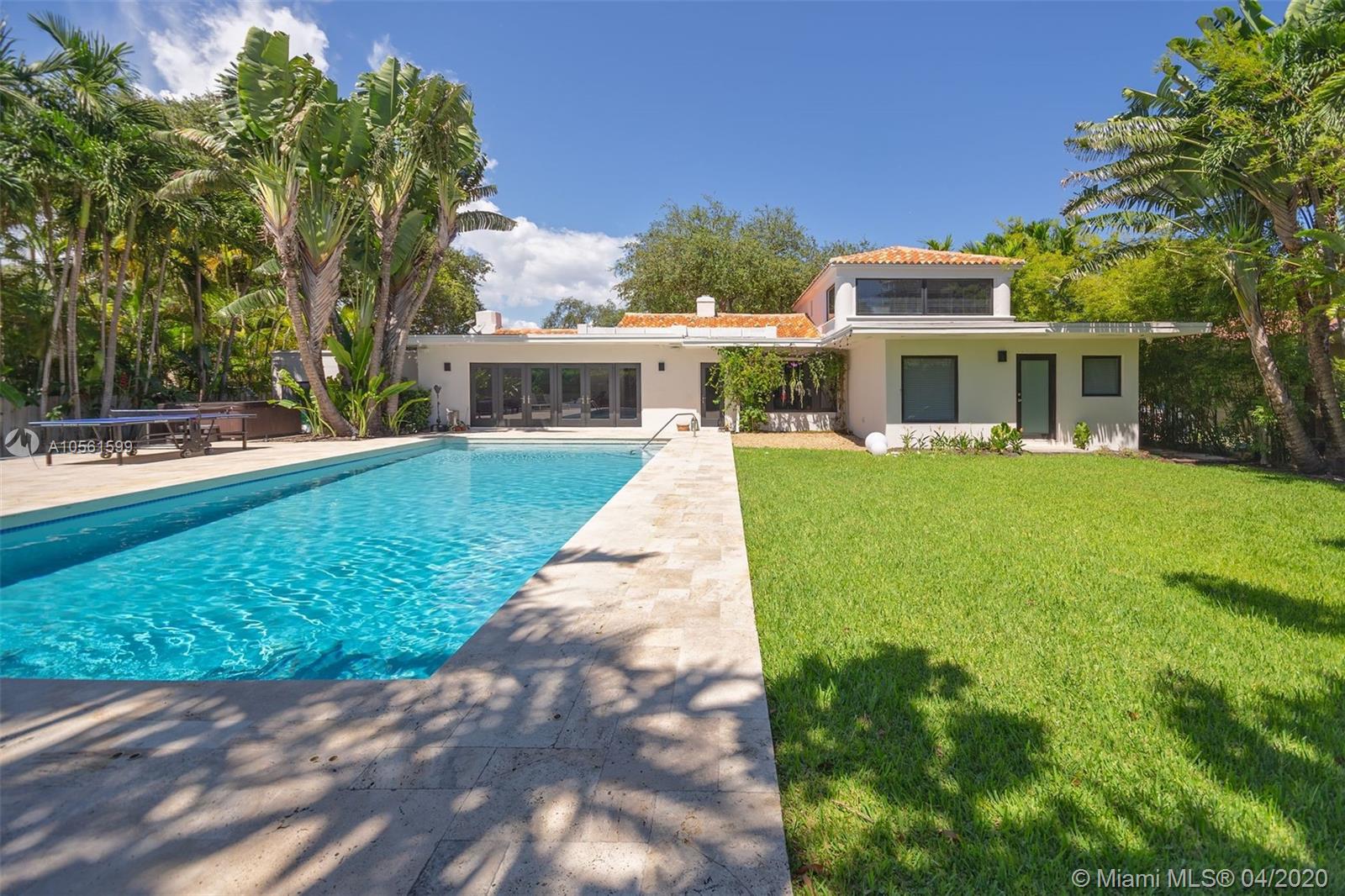 Beautifully remodeled 1936 Spanish Mediterranean 2 story Miami Shores 4 bedroom home with a 20 x 40 deep salt water heated pool on a double lot (14,200 sq ft). High open beamed ceilings as you enter, refinished wood floors, gorgeous gourmet kitchen with stainless steel top of the line appliances, custom made Italian imported hurricane impact windows, huge lavish master bathroom with direct access to the pool, security system, 2 new AC units, 2 car garage and hot tub spa. This house is totally wired for smart house devices/apps. East of Biscayne Blvd. 2 blocks from the water. Ready to move in. A must see!
