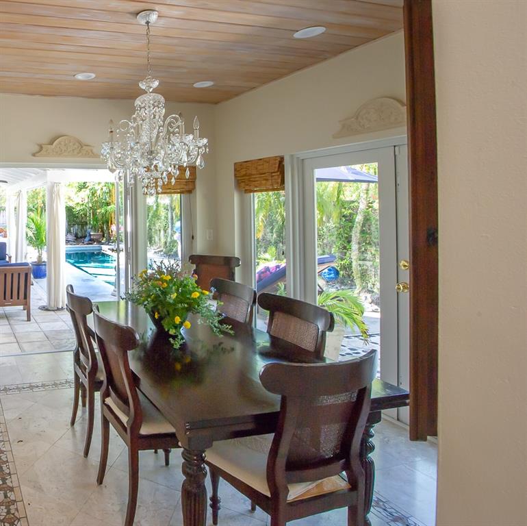 Professionally designed and renovated, 3/2/1 island style pool home in the charming Tarpon River downtown area of Fort Lauderdale. The orginal home was totally reconfigured to expand the living areas, dining, office, media room and master suite with walk-in closets, custom built-ins and bath. The kitchen is the core of the home which opens to living and formal dining areas. Rich wide plank flooring was run through out the living areas and bedrooms. The exterior resort style living space echoes the feeling of coming home to an island retreat. Custom lighting and landscape finishes add to the beauty of the covered loggia, pool & spa. Rear of home opens through french doors from the dining room , media and master to enjoy the lovely outdoor entertaining possiblities!Seller is motivated!