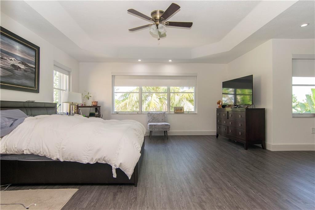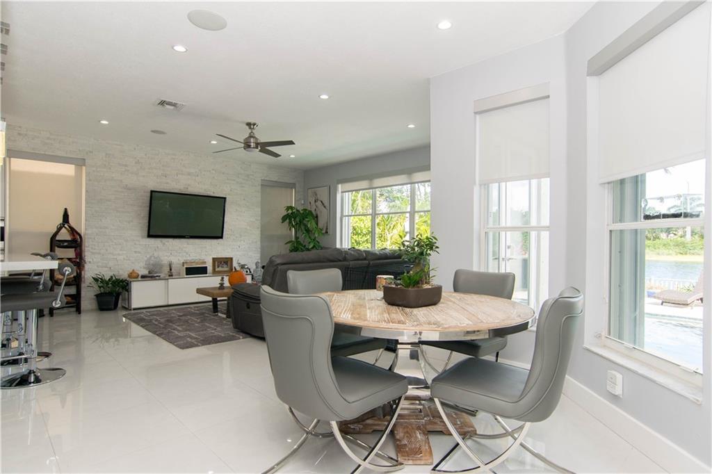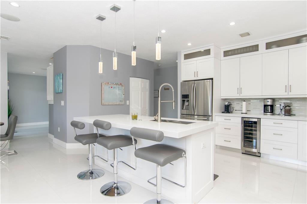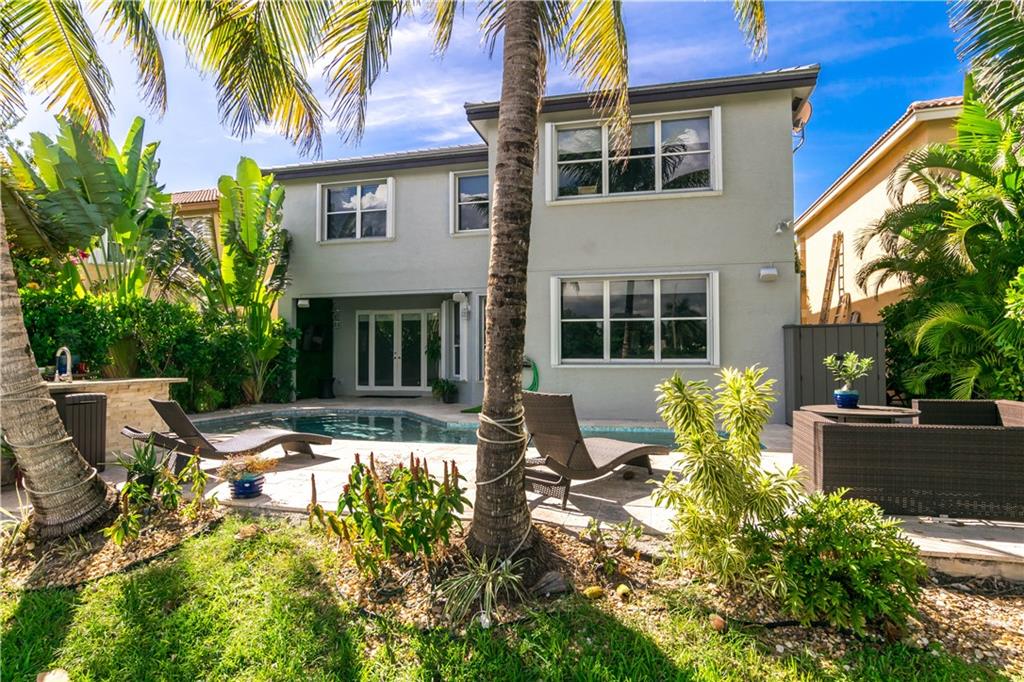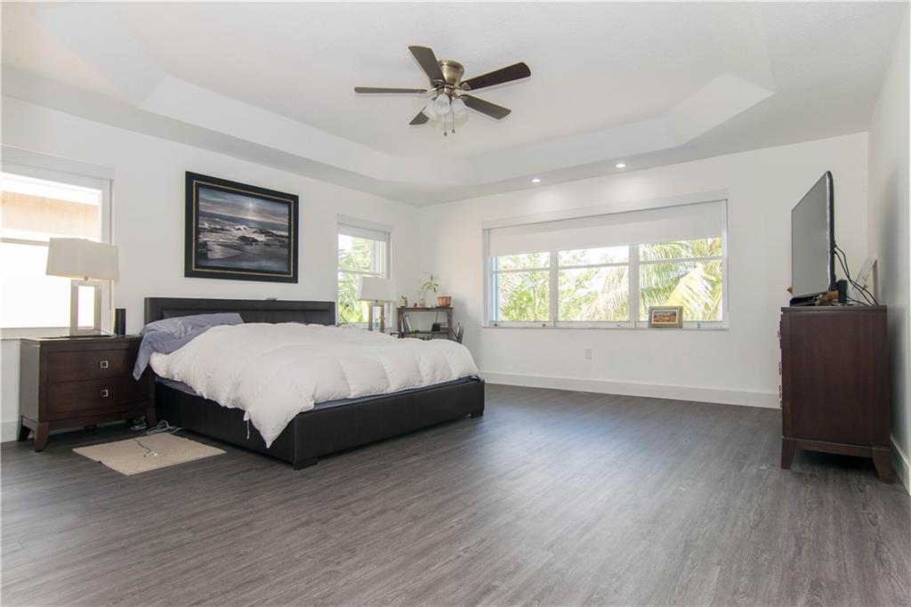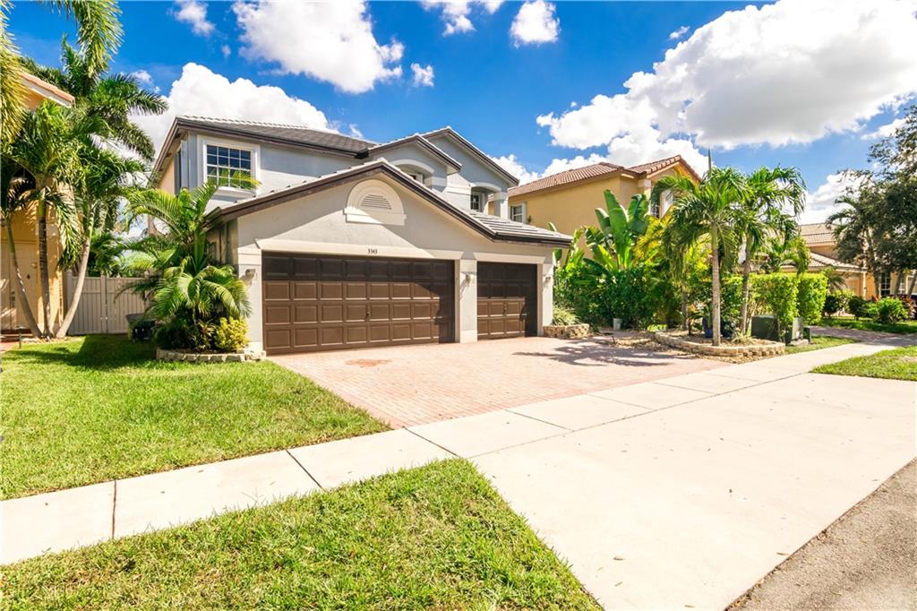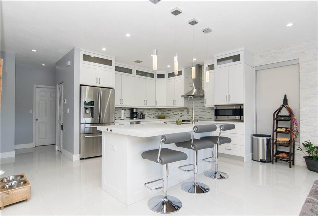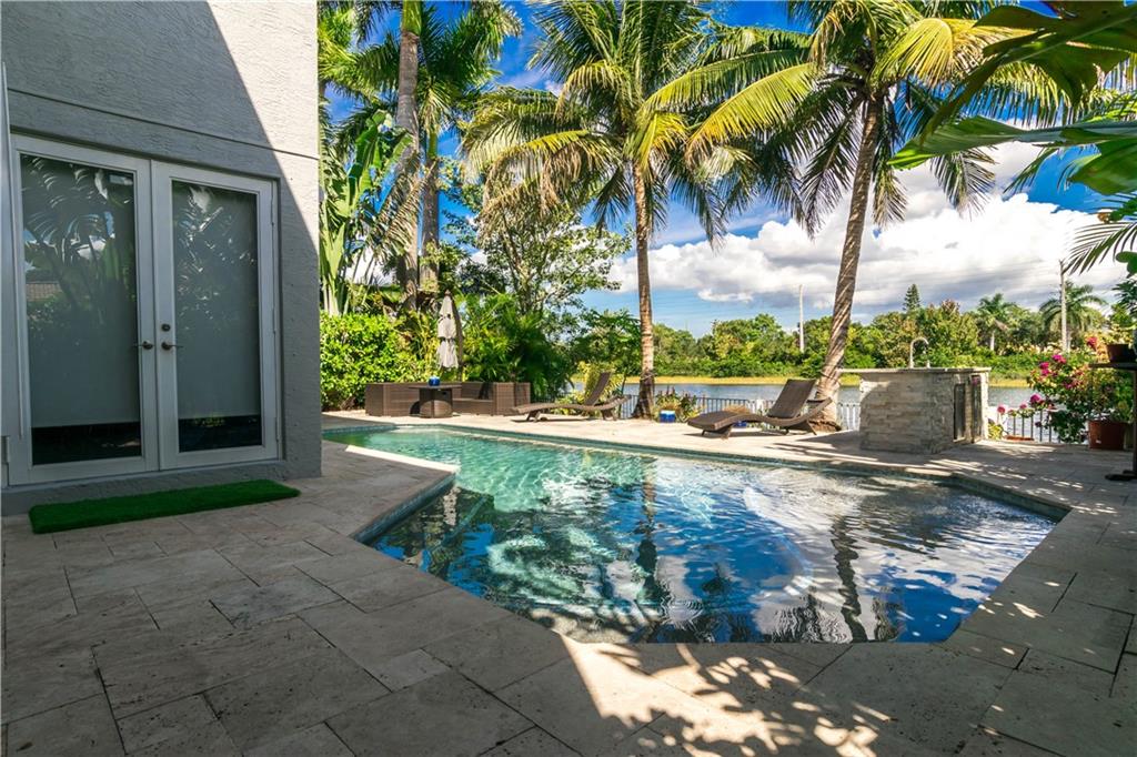 Excellent Opportunity. Priced to sell 5 Bdr 3 FBth Single Family Home with Pool and Waterfront view. High Quality Features and Modern Upgrades. Kitchen white large soft-closing cabinets, Quarz waterfall-countertop, SS Appliances and wine cooler. Porcelain Flooring first floor, and new water proof laminated flooring upstairs. New Roof 2018. Impact French doors and new accordion shutters. New AC units. Salinated pool with pebble tech finish and new pump and filter. Travertine flooring in the pool area/ backyard. Entire house wired with speakers for a sound system (Receiver not included). Whole house with Led Lights and dimmer switches. New garage motor openers. Stylish Stonewall in the Family Room. New paint interior and exterior. HOA includes Cable & Internet.