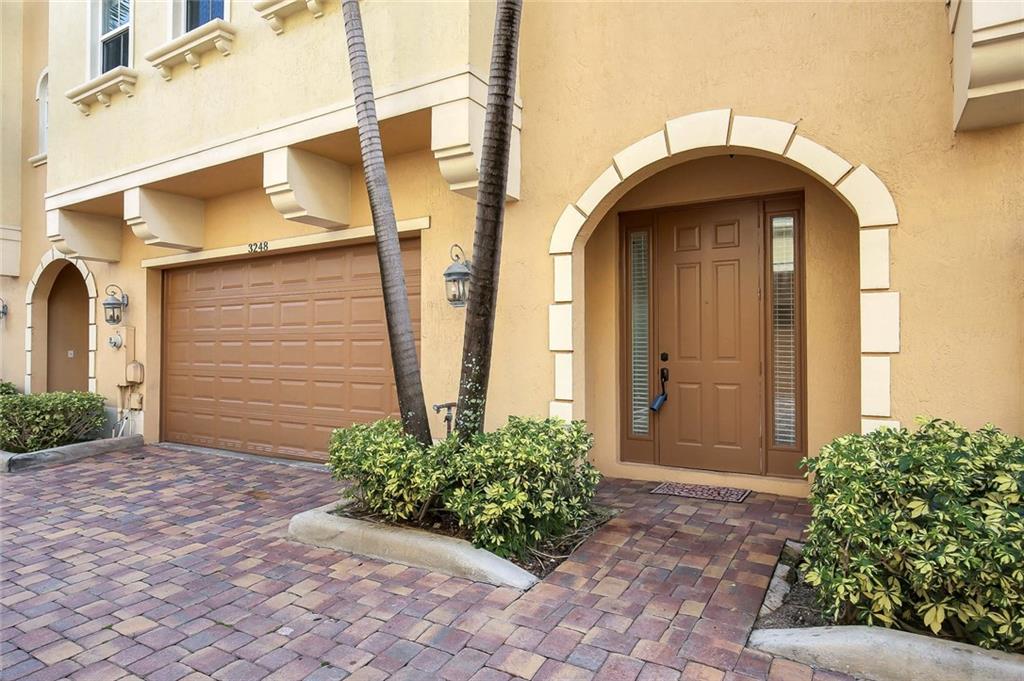 Beautiful Townhouse just West of A1A (easily walk to the beach and the Marriott Hotel) with very secure entry gate! Southern rear exposure with tropical fenced garden area and rear deck. Private heated pool with water feature. Large two car garage with a 220 volt charging station for electric or hybrid vehicles. The first floor welcomes you with a foyer entrance, elevator and large private en suite bedroom. The second floor features the great room, dining area over looking a spacious balcony, eat in kitchen, powder room and laundry. Beautiful marble adorns this floor. The third floor has the master suite with Southern views and two other bedrooms (one with a balcony overlooking the motor court). This is a must see unit with exceptional location and value!