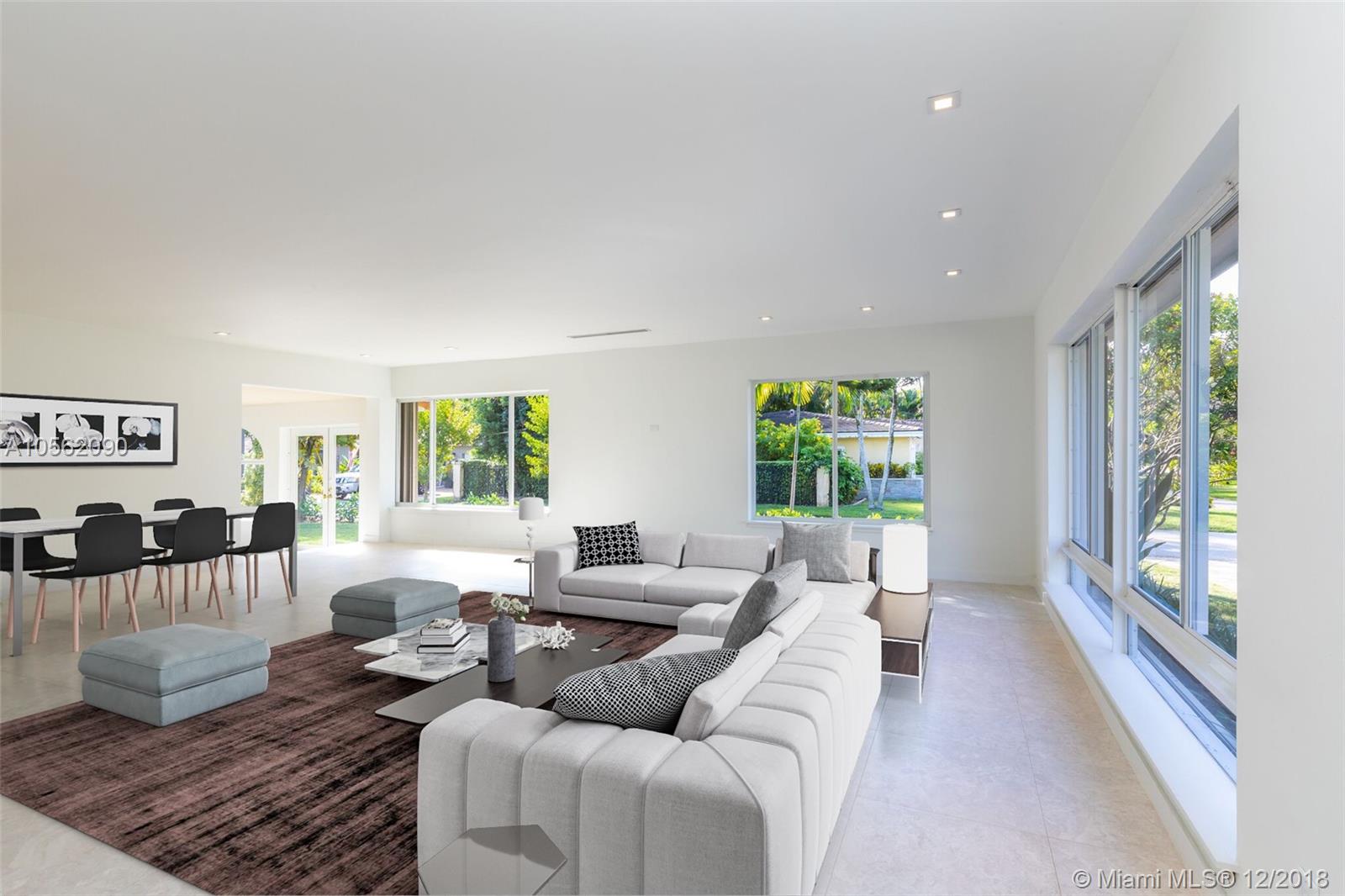 Completely remodeled 3 bedroom 2 bathroom home in the heart of Coral Gables. No expense has been spared in this 1954 remodel including new kitchen with stainless steel appliances, granite counter tops, new bathrooms new AC, new water heater and new electric including the entire home wired for home automation! The home is situated on a 9000 sf corner lot in the charming Riviera Circle subdivision of The Gables. Come and make this charming house a home!