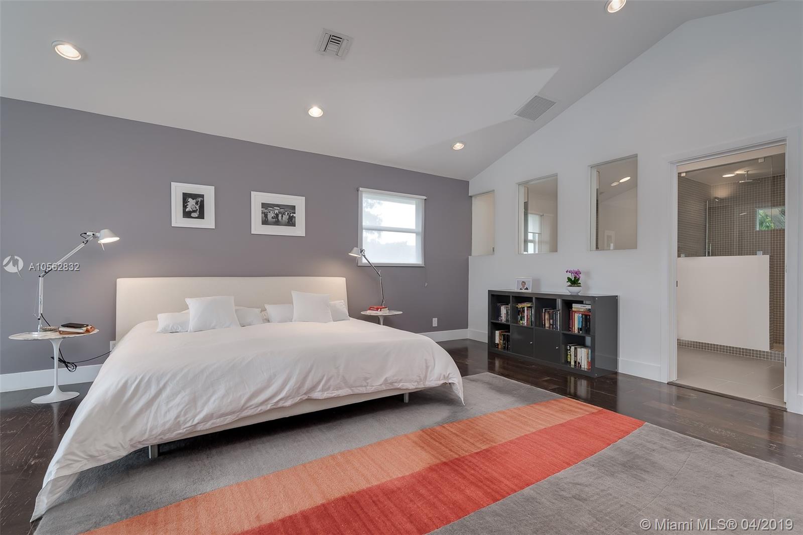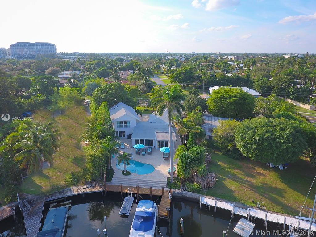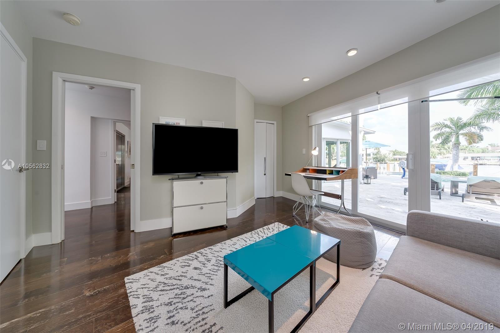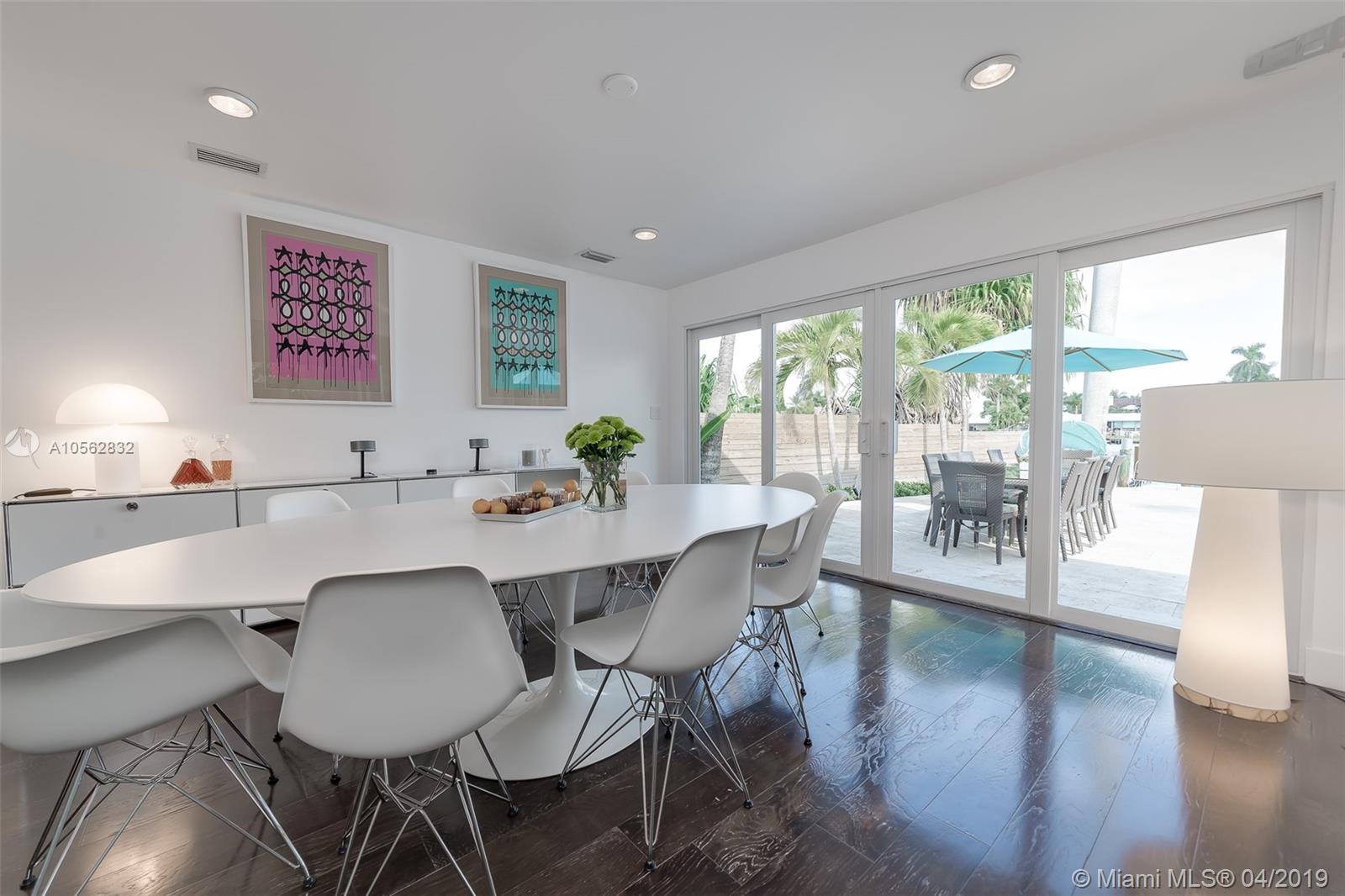 Amazing and unique "MIMO" waterfront home on prestigious Bayview Drive in Fort Lauderdale. Walk or bike to Coral Ridge Yacht Club, Galleria Mall, Dining/Shopping, or the Beach! As you enter through the artfully chosen stainless steel double front doors, the oversized windows and glass doors facing the east reveal a stunning back patio/pool area with an extra wide view of the canal 'lake' from the backyard. Private dock for up to 65' vessel; ocean access with no fixed bridges. Light and bright modern interior design: clean lines, warm natural wood floors, vaulted ceiling in living area, Duravit and Hans Grohe in all bathrooms, Bosche/Siemens kitchen appliances, original "Midcentury" wood spiral stairs to master bedroom. Hurricane impact windows, fenced yard, and seawall recently renovated.