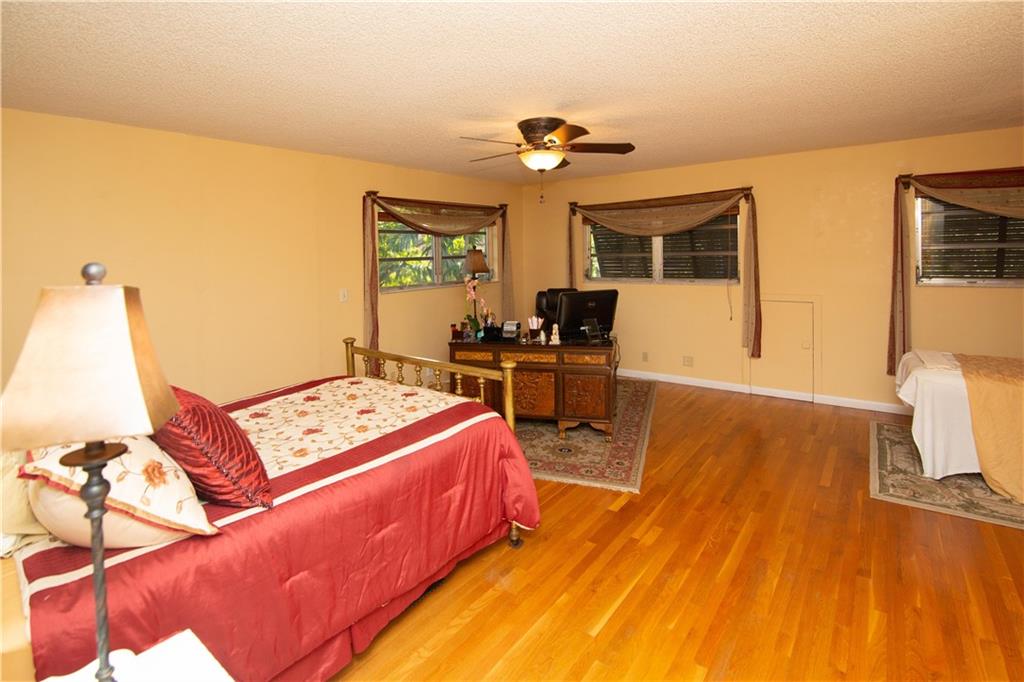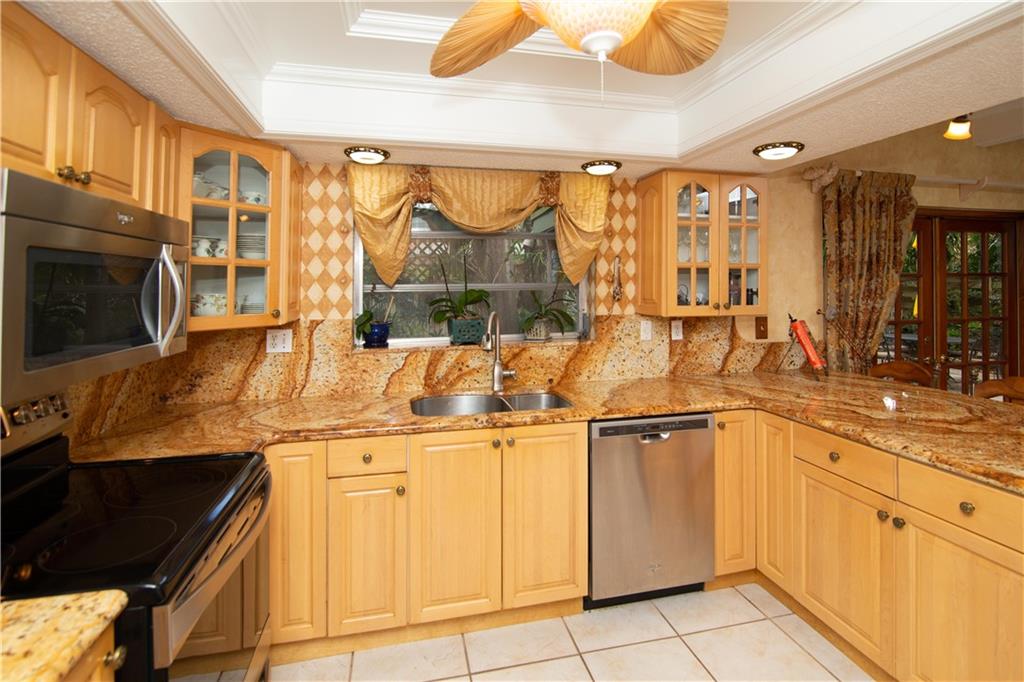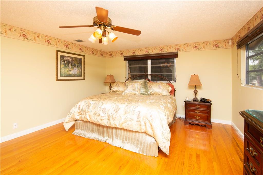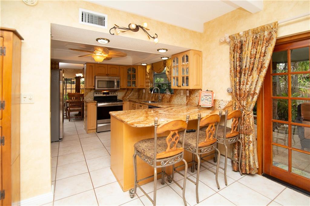 Tucked away in the gated Oak River neighborhood, this custom-built two-story residence has it all! Perfect for entertaining, this lushly landscaped home features an updated kitchen, granite counter tops, stainless steel appliances, breakfast bar, large master bedroom and bathroom, oversized fourth bedroom perfect for a private office or in-law suite, beautiful wood floors upstairs. Kitchen, family room and dining area open out to the tranquil backyard setting. Updated electric, fenced yard, hurricane shutters and more. Minutes to downtown, to I-95, shops and restaurants.