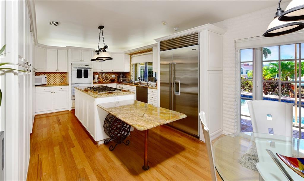 GREAT HOME WITH GREAT CURB APPEAL,AT THE END OF THE CUL-DE-SAC, THIS HOME HAS A SPLIT FLOOR PLAN, NEW APPLIANCES (NEW SUB ZERO REFRIGERATOR AND DISHWASHER, GOURMET KITCHEN, GREAT FAMILY ROOM AREA, THE GARAGE HAD BEEN CONVERTED TO A LARGE FAMILY ROOM BUT CAN BE CONVERTED BACK TO A 2 CAR GARAGE., 2 ZONES OF AC, HURRICANE SHUTTERS FOR THE HOUSE, POOL. THE WATER HEATER, GAS STOVE AND DRYER IS ON NATURAL GAS. 115 FT ON H2O, NEW DOCK AND UPDATED SEAWALL, GREAT LOCATION.