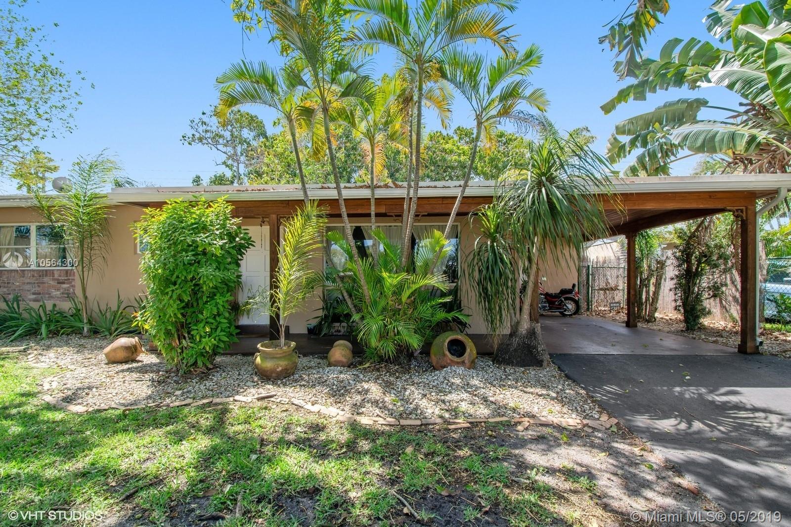 A cozy refuge to come home to. This 2 bed/2 bath home is nestled in nature with lots of shade & fruit trees. It has a very unique tongue and groove wood ceiling on the front porch and the carport, with plenty of lighting. Inside still has some of the original mid century features like the white brick mantle with an electric, decorative fireplace, and the bathroom tiles. But is also updated with tile and wood laminate flooring, and granite counters/stainless appliances in the kitchen. Separate laundry/utility room with gas water heater. Oven and cook top are also gas. Home comes with a hard wired alarm system, including outdoor cameras covering all the entrances into the home. Great central location near I-95, YMCA and a farmer's market. 24 hours notice to show, please. Call listing agent.