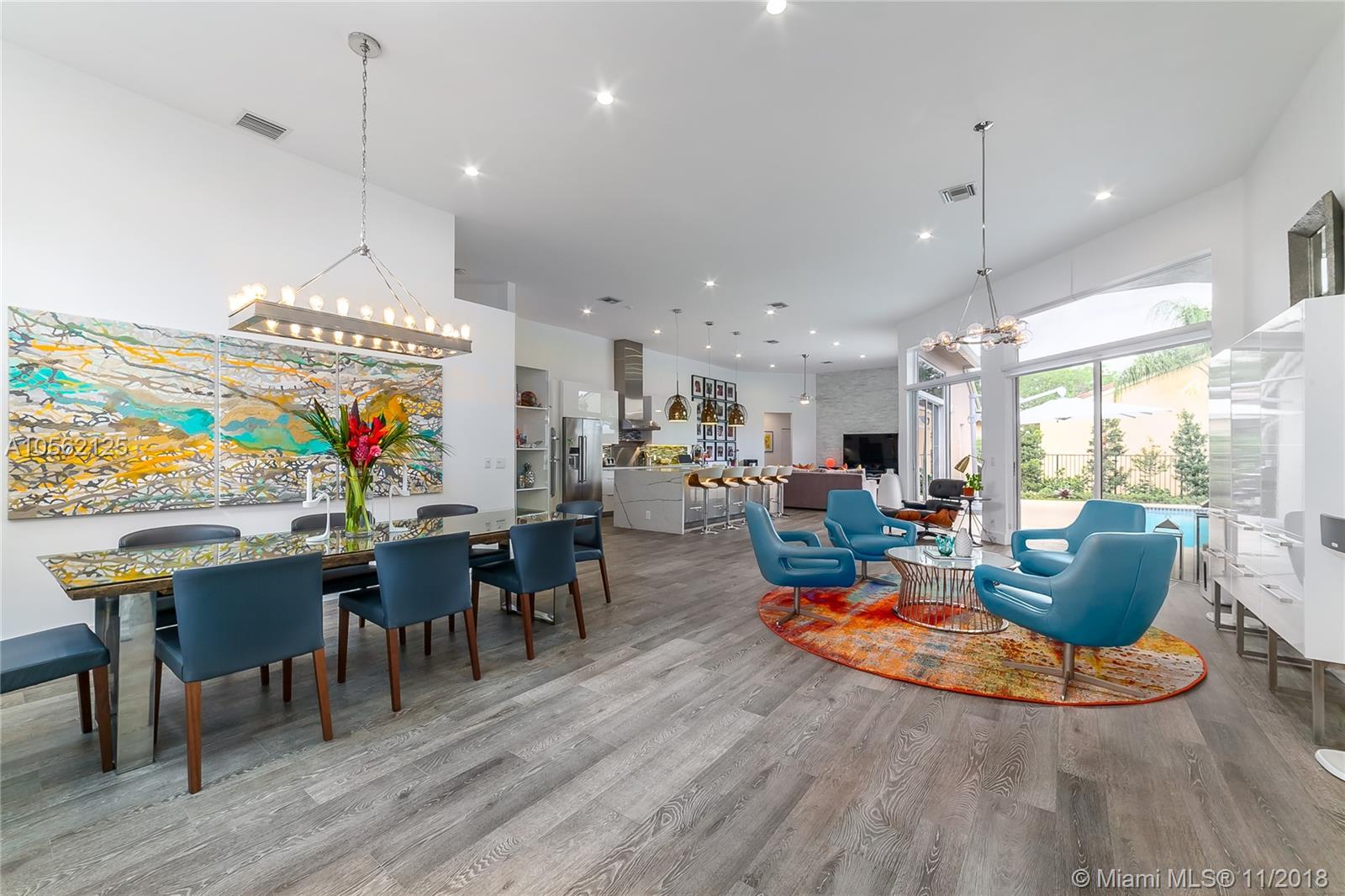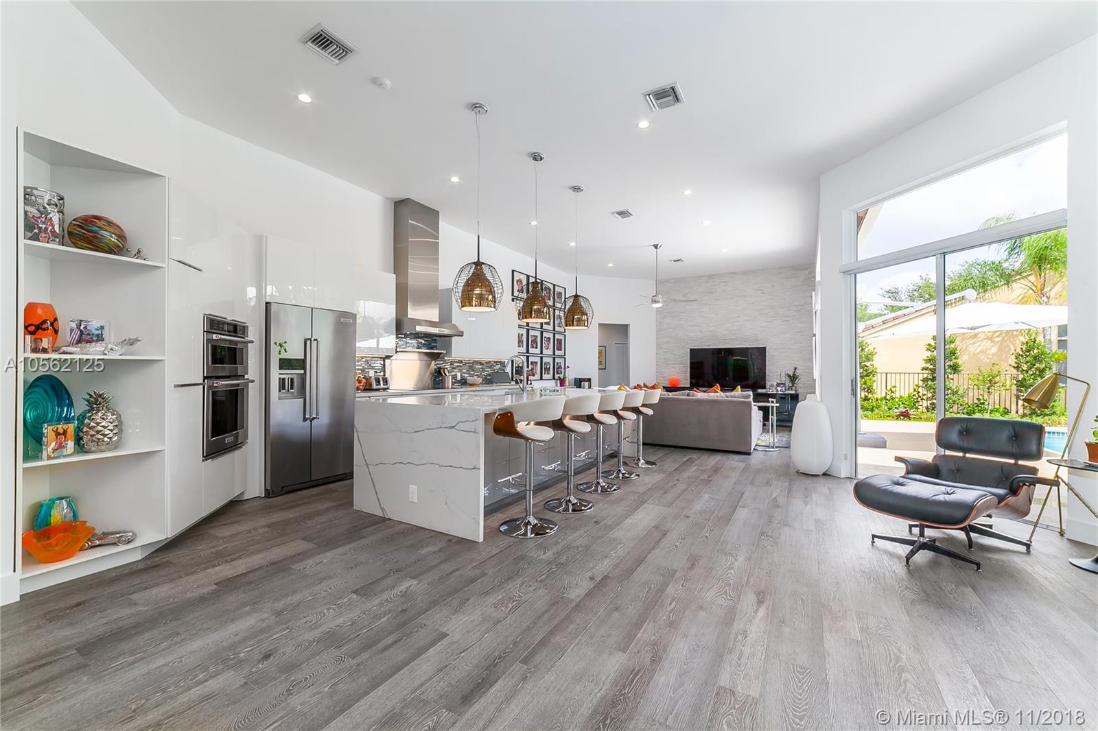 Featured on "Houzz", This 4/3 Totally Designer Remodeled Weston Hills Beauty, is Highlighted Immediately upon Entering with Gorgeous Tiled "Wood Look" Flooring throughout. Eye-Popping Suspended Light Fixtures by Foscarini/Italy make quite the Impact over the Natural Marble Island and High Gloss White Cabinetry in the New Kitchen. The Dining and Living Areas Flow Beautifully, Showcasing the Stunning Accent Wall of Quartzite. Any Buyer would delight in the Modern Serene Vibe of the Master Bedrm/ Bath and Bedrooms. White, Bright, Inviting. Top of the line Roller Shades are Just a Mention of the Numerous Highlights of this Home. Great Pool Area, Perfect for Entertaining and Relaxation.Welcome Pickiest Buyers-- A+ Schools and Terrific Neighborhood.
