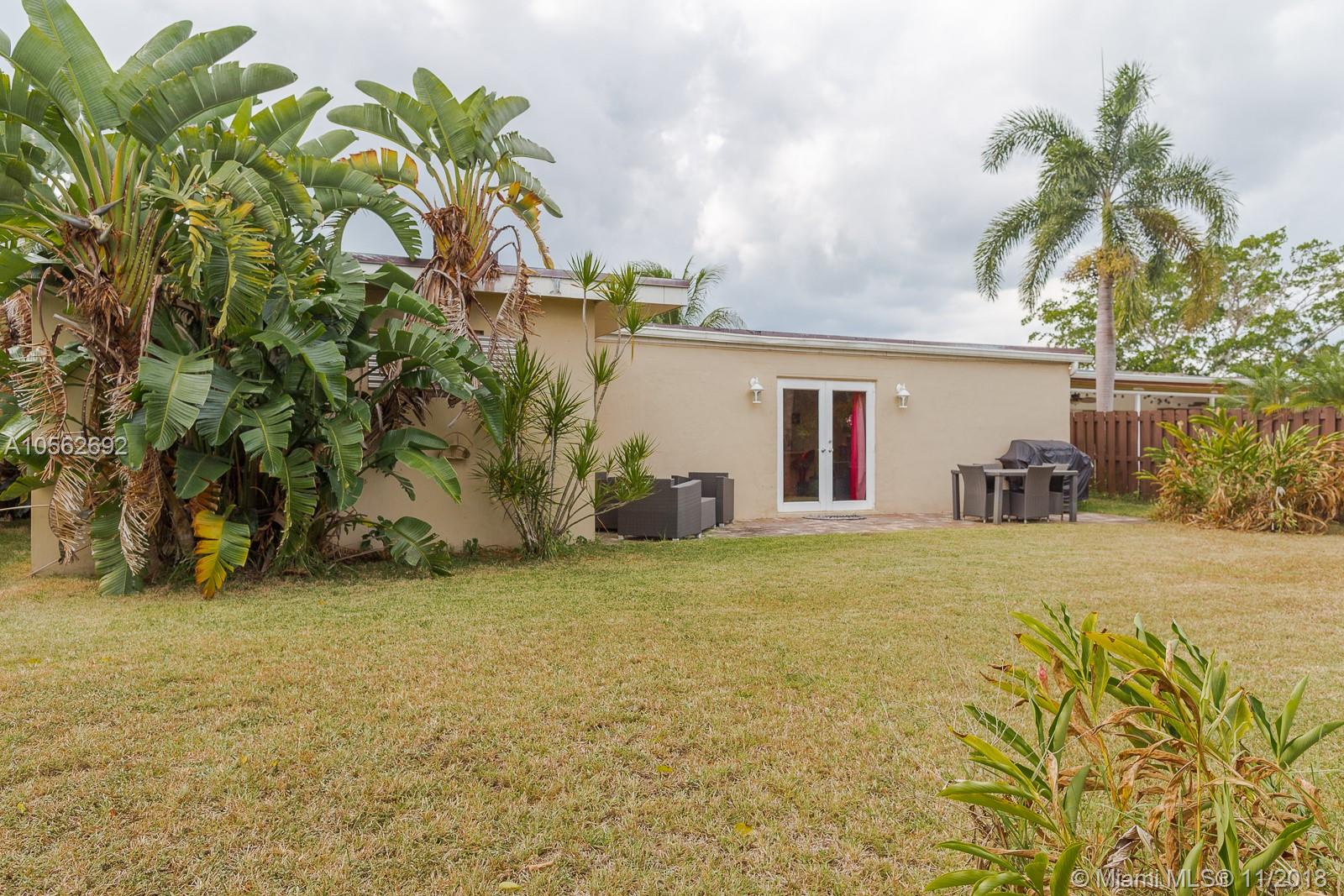 LIFETIME HOME IN A BEAUTIFUL SETTING! With a well distributed living area, ample natural light, GOURMET KITCHEN and HUGE BACKYARD… ready for YOUR DREAM POOL or OUTDOOR SETUP and South Florida living at its best. This beautiful home features 3 bedrooms, 2 bathrooms, large living area, open kitchen, family room, great room and 2 car garage. The kitchen was remodeled European style with stainless steel appliances, granite counter tops, recessed lighting, pantry and large counter perfect for entertaining while cooking a meal. In addition, laminate and wood floors throughout, 2012 shingle roof, recessed lights, privacy fence, open patio with pavers, open porch, hurricane shutters, municipal sewer, underground utilities, fiberoptic high speed internet ready. CHEERFUL SETTING FOR A HAPPY HOME!