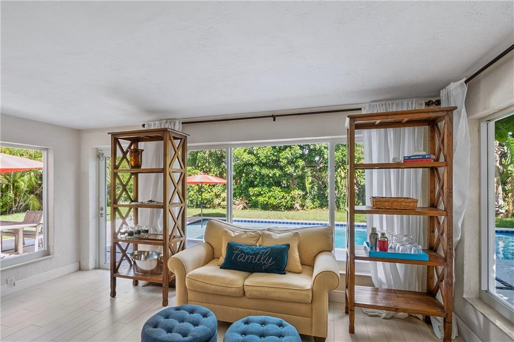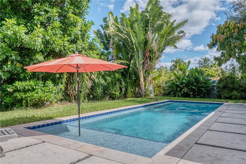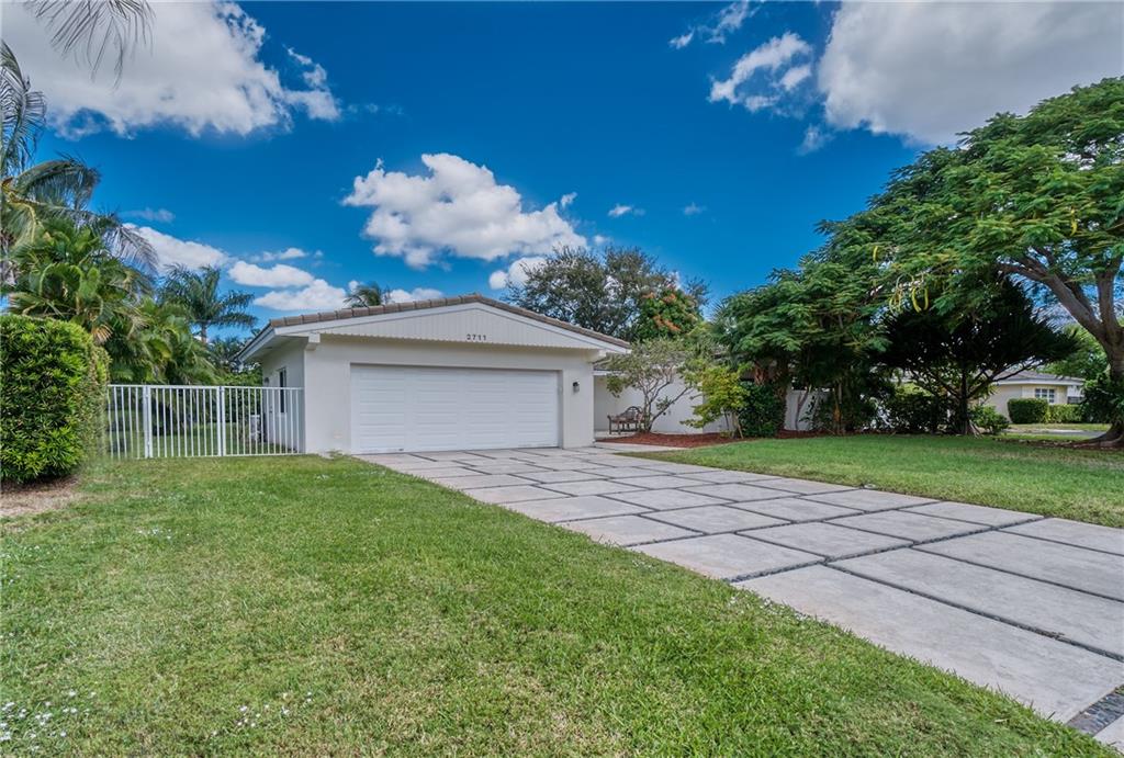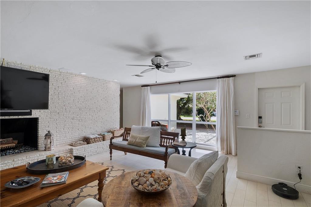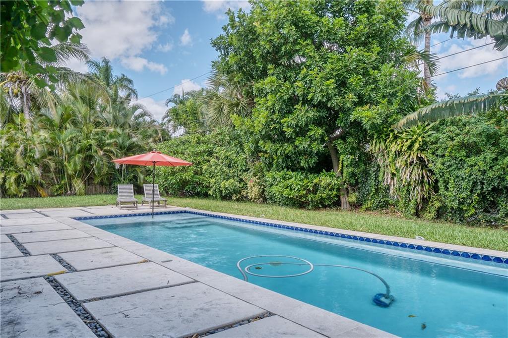 TROPICAL PARADISE! LOCATION! LOCATION! Lovely 4 bedroom 3 bath home, the bedroom off the office/den has a shower that includes a sauna. Home has a 2 car garage. Large backyard with an over- size pool/40X14, Open Living room with a Coral Rock fireplace and a bright Florida room that looks out onto a lovely pool with fruit trees enclosed with a private fenced yard. Beautiful light color tiles through out living area and bedrooms. Lovely remodeled kitchen with quartz and new cabinets. Home features natural gas stove, tank-less water heater and generator for the entire house. Home has all impact windows/doors. Home is conveniently located close to shopping, movie theater and the Beach. This Home is nestled in the center of a small peninsula bordered by water and multi-million dollar homes.