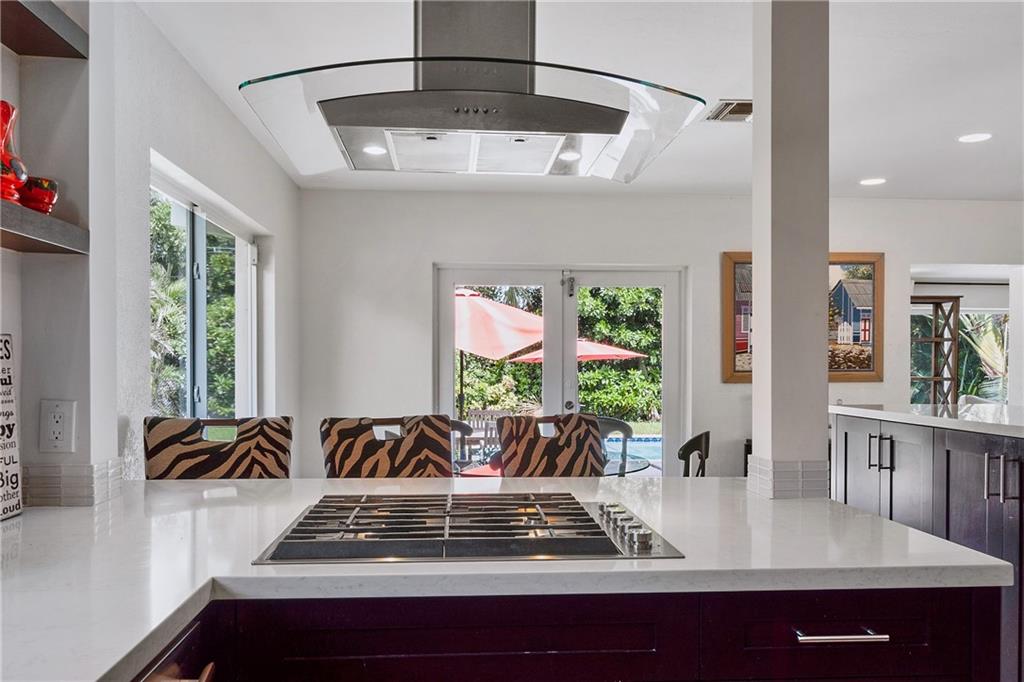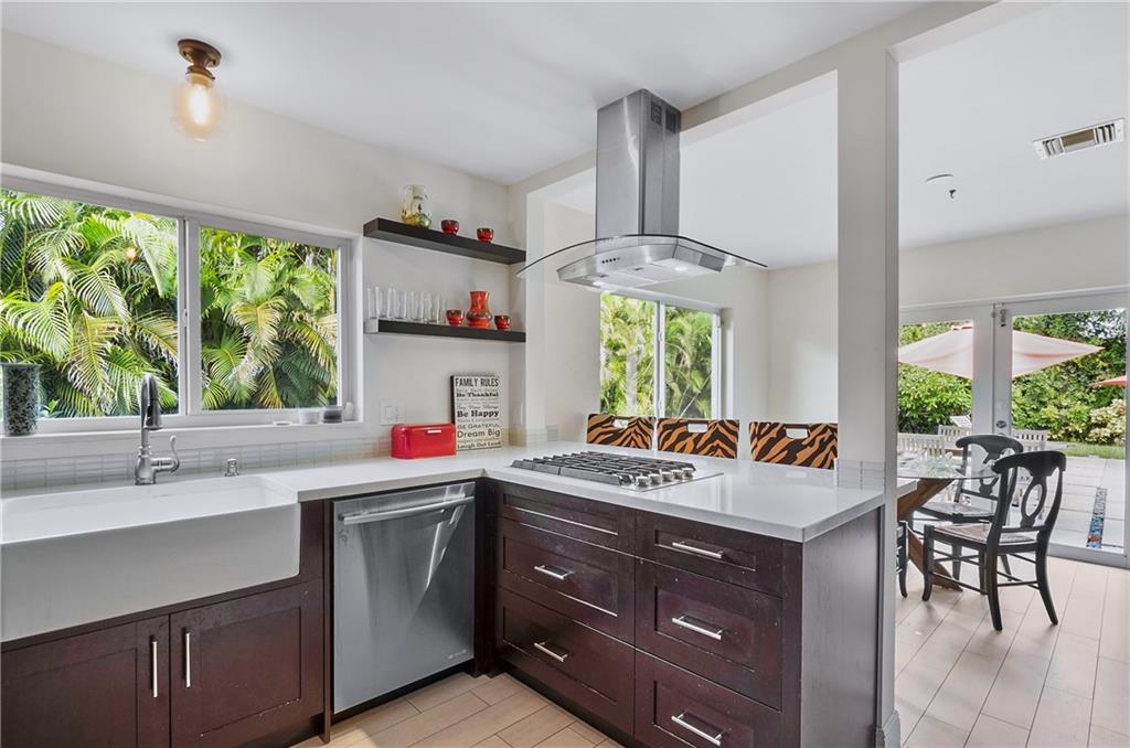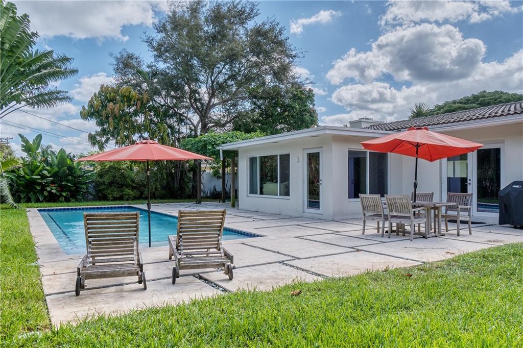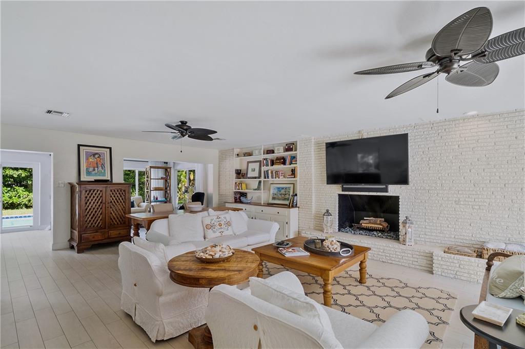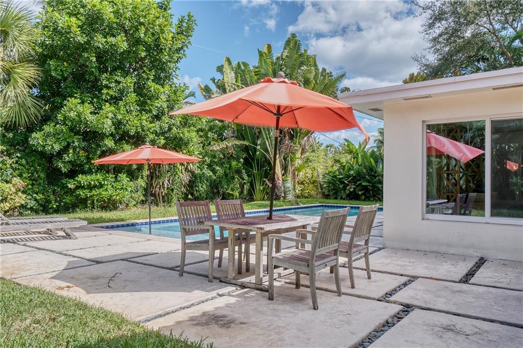 TROPICAL PARADISE! LOCATION! LOCATION! Lovely 4 bedroom 3 bath home, the bedroom off the office/den has a shower that includes a sauna. Home has a 2 car garage. Large backyard with an over- size pool/40X14, Open Living room with a Coral Rock fireplace and a bright Florida room that looks out onto a lovely pool with fruit trees enclosed with a private fenced yard. Beautiful light color tiles through out living area and bedrooms. Lovely remodeled kitchen with quartz and new cabinets. Home features natural gas stove, tank-less water heater and generator for the entire house. Home has all impact windows/doors. Home is conveniently located close to shopping, movie theater and the Beach. This Home is nestled in the center of a small peninsula bordered by water and multi-million dollar homes.