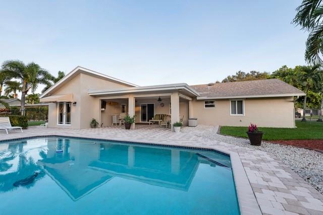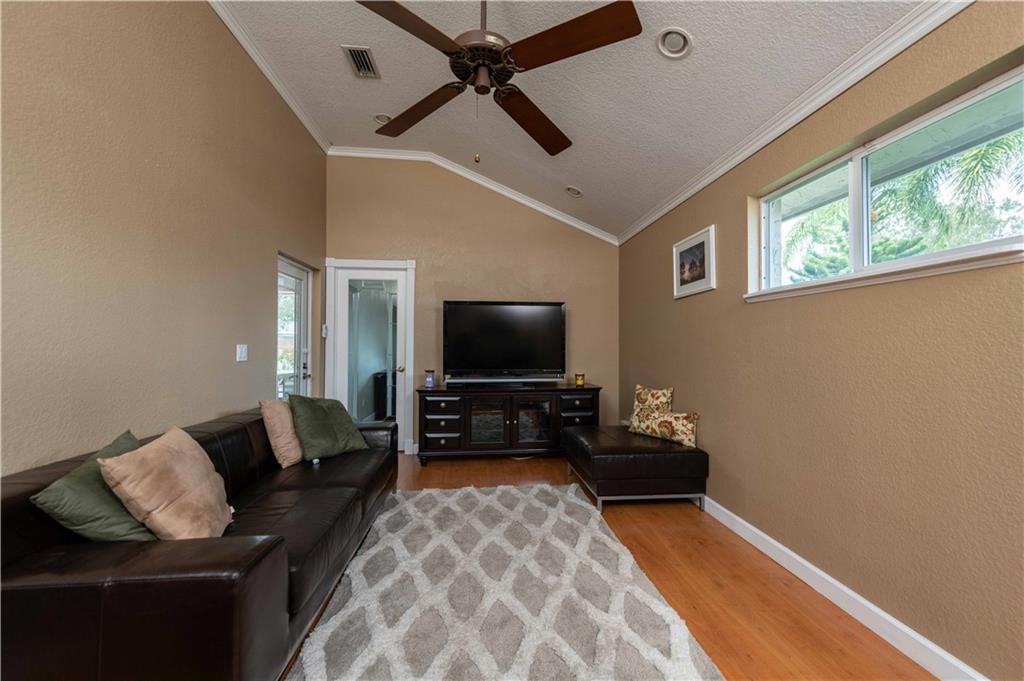 Well maintained beautifully updated true 4 bedroom 2 bath home in a great neighborhood 2191 sf with NO HOA Fees. This is a lakefront home with large oversize fenced lot nicely landscaped 15x32 pool, large paver deck and covered patio with big screen tv and more. Open layout with vaulted ceilings and lots of natural light. Sit in the dining room and look at the serene view of the pool and lake. The kitchen is newly renovated with granite countertops and stainless steel appliances. This home has everything. An oversize two car garage with workshop area, the garage is fully air-conditioned. All newly updated bathrooms and the entire home has hurricane impact windows and doors for security and ceiling fans pool and garage TVs. This home will sell fast come and see it.