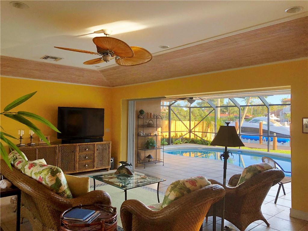 Classic Bright, Clean Florida-Ranch style family home deep within Rio Vista's wonderful 10th street isle, offering 75' of waterfront with Southern exposure, with a pool and deep garage. Located close to the main channel, minutes from ocean access. Meticulously cared for with great pride of ownership, detailed millwork within Florida Room, updated kitchen, bathrooms, and exterior utility storage. A wonderful opportunity!