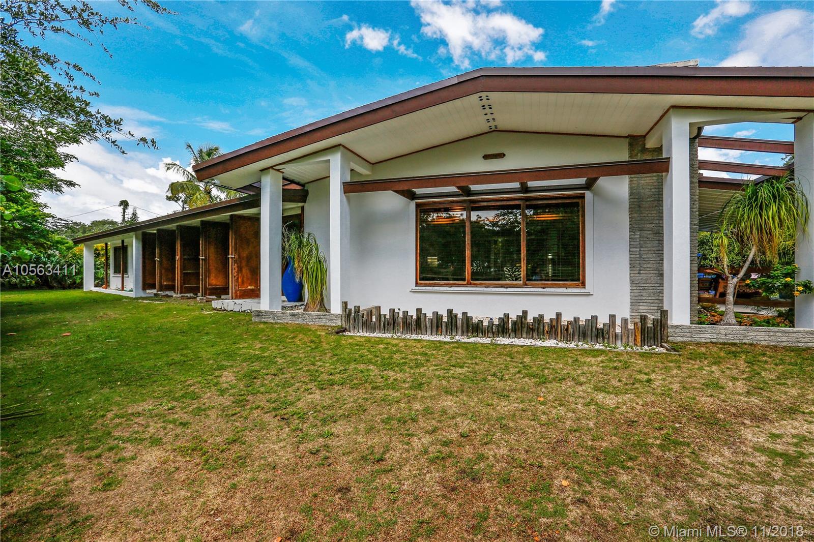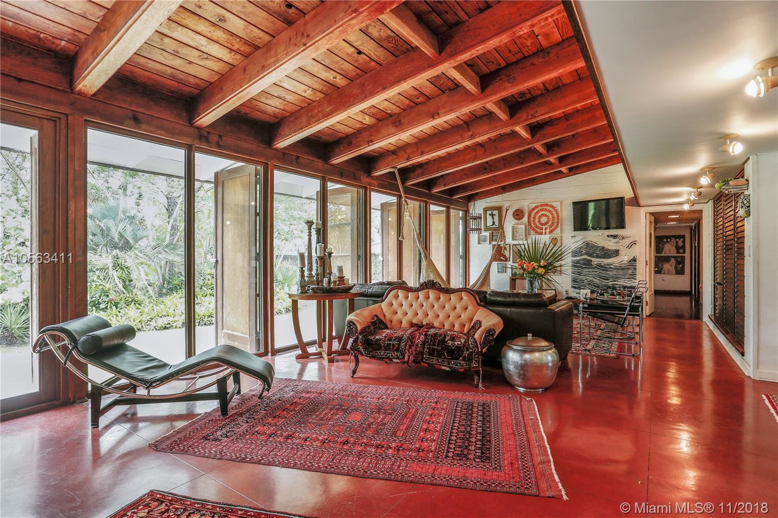 “Casa Ballerina”, an architectural jewel from the 50’s, is back on the market! Nestled on a beautiful builder’s acre lot in the heart of Pinecrest and surrounded by oaks, silver palms, pines, and a charming coral rock wall, sits an original Mid-Century Modern house designed by nationally recognized architect and first Dean at the School of Architecture of the University of Miami, Robert Fitch Smith. Influenced by Frank Lloyd Wright, Fitch-Smith chose to use natural materials throughout his houses. The home features the original red signature concrete & wood floors, Dade Pine vaulted beamed ceilings, block walls, brick fireplace & extensive banks of wood and glass windows. The exterior features irregular lines & sloping rooflines & a separate artist’s studio & cooling entrance breezeway.