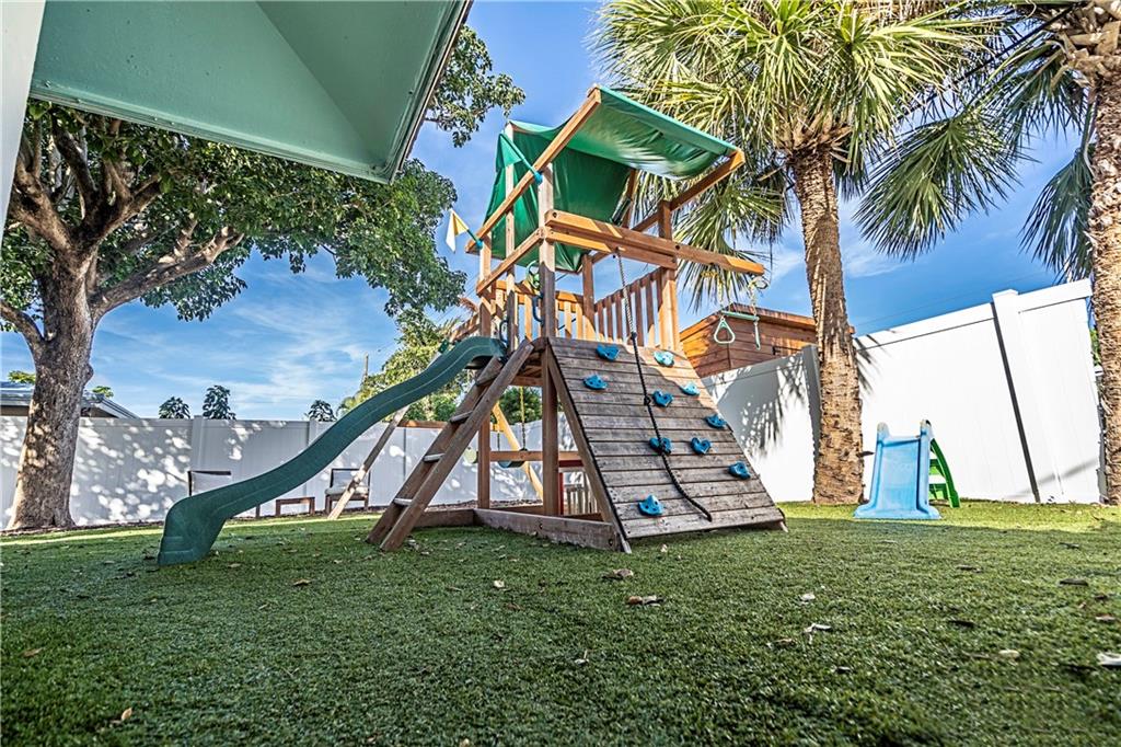 Charming shabby chic home on a huge lot East of US1 in redeveloping Pompano Beach! 3 beds + den/office with 2 full baths and a half bath used as the cabana. Chicago brick driveway, new kitchen with natural gas chef's stove, granite counters, and stainless appliances. Two large living areas, remodeled baths and split bedroom floor plan. Huge yard with tiki hut on one side and kids play area on durable professionally installed artificial turf on the other with pool in between. The owner says sell which is reflected in the list price.