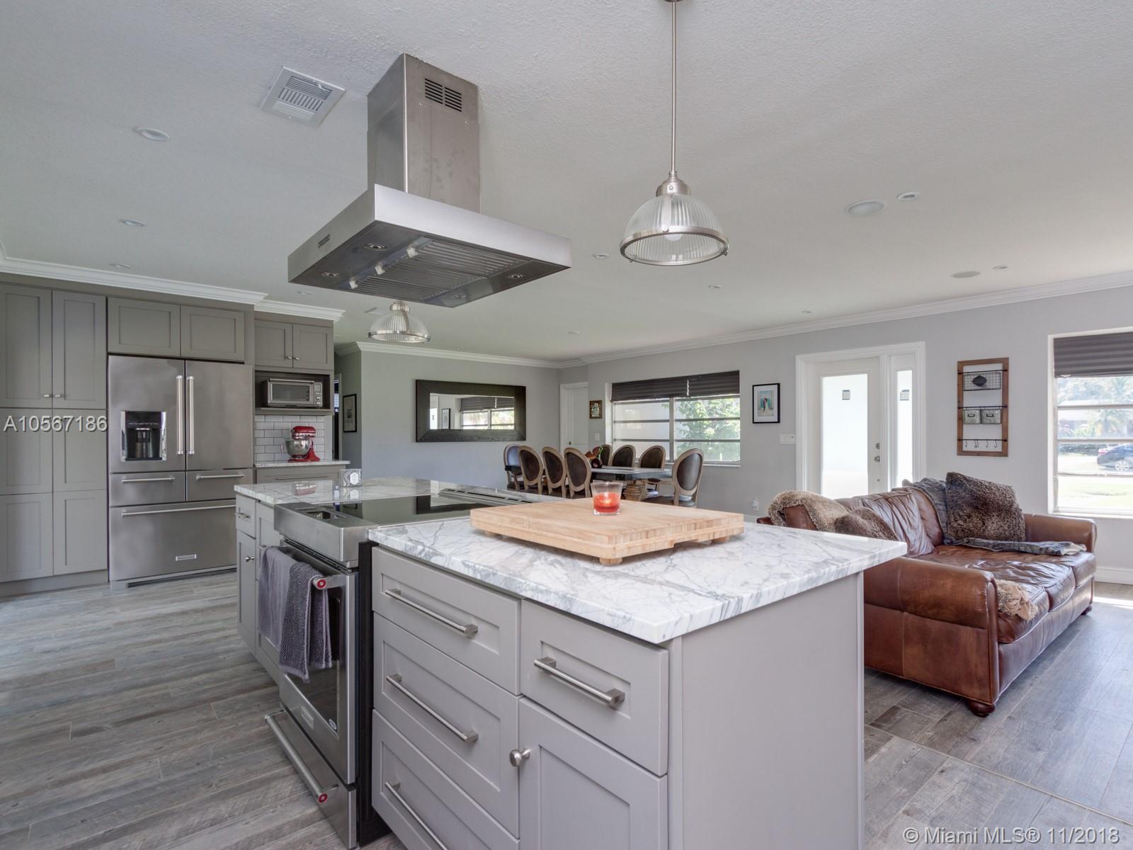 This home centrally located in Hollywood just West of 95 is a must see. Completely remodeled inside with top of the line finishes and appliances. New Italian porcelain tile throughout. One of a kind Arabescato marble in kitchen and master bath.Granite countertops in master bath, top of the line Kitchen Aid appliance package.Induction cook top with touch panel display Stainless steel farmhouse sink in the kitchen, crown molding throughout Big yard with newly added cement patio. The home has also been refitted with new hurricane impact windows (except for front 3). The home has also just been painted in the last couple weeks. Please refer to list of upgrades attached.