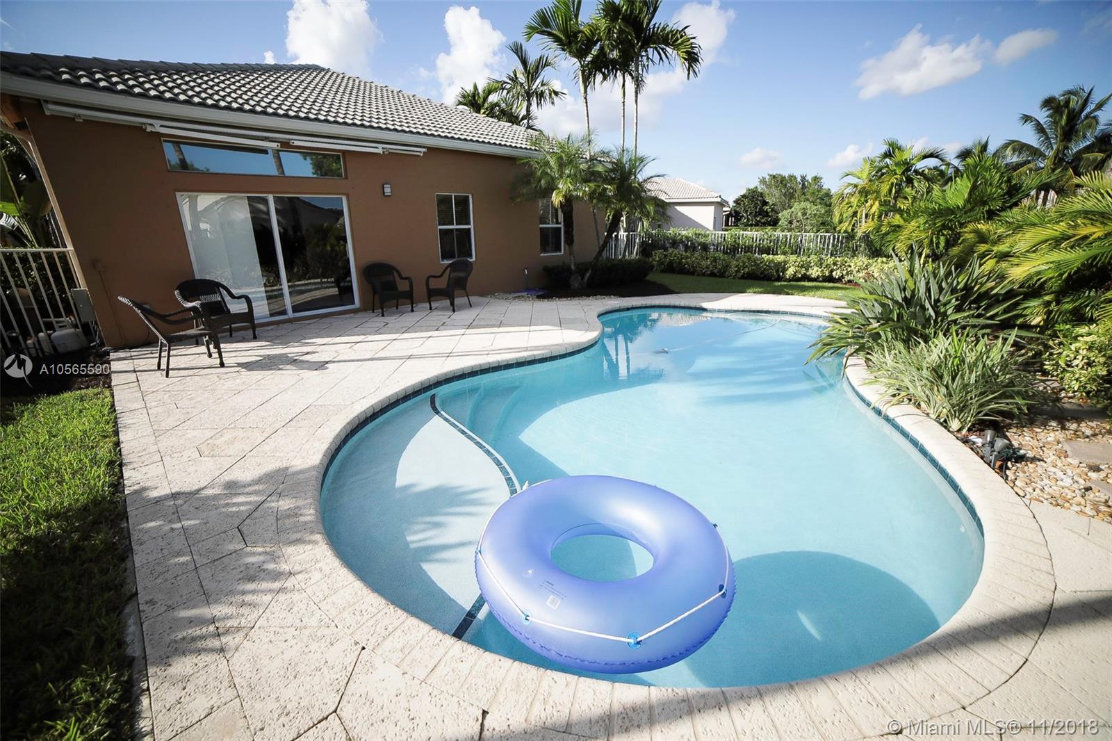 A perfect house to be your new forever home, bright and beautiful, very well kept, offers you a private backyard with patio area surrounded by an amazing Landscape Design from front to back and a relaxing pool to enjoy with your family and friends. Ceramic floor in all social areas, laminate floors in bedrooms, Upgraded kitchen and bathrooms, Stainless Steel appliances, Custom window treatments in all areas, partial water view. and More. Property is located in one of the most desirable neighborhoods THE RIDGES!