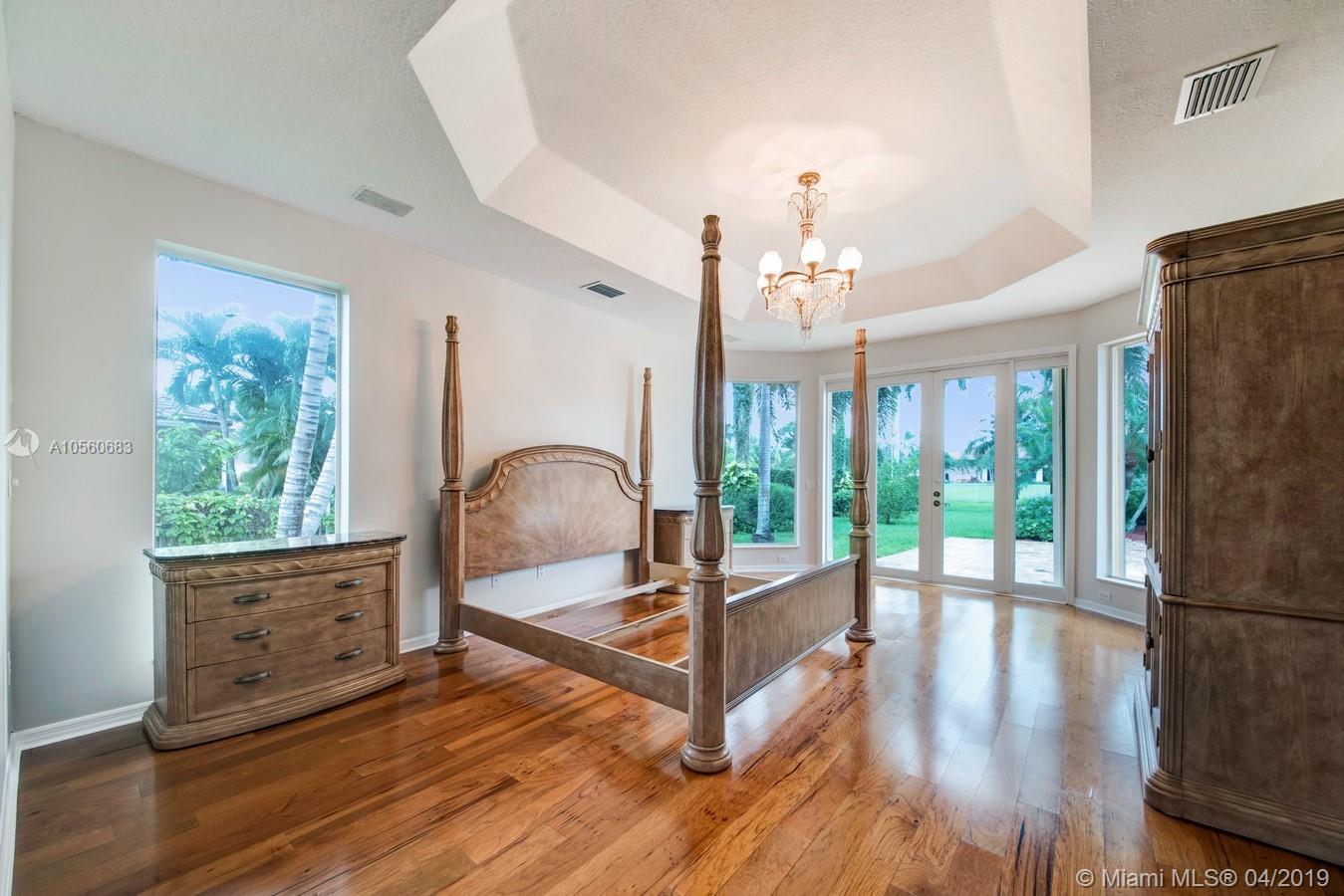 Great location in prestigious gated community of Westridge, 24 hour guarded entry. Corner unit on over an acre of land. Cherry wood cabinets with granite countertops and island cooktop. 6 bedrooms, currently used as a 4 bedroom + den and a media/game room with private entrance. Master retreat with built out closet. Neutral tile throughout living areas and hardwood floors in bedrooms. Heated pool and spa with travertine marble decking. Tropical landscaping with sand volleyball court. Accordion shutters on windows.