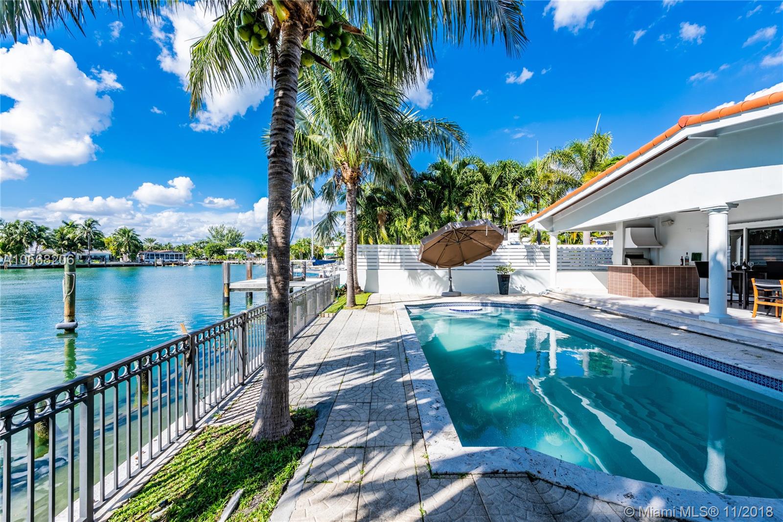 Have your own slice of heaven in Surfside with this serene, open ocean access modern pool home on beautiful Point Lake, where you can keep your boat docked right at home! Take in gorgeous sunsets from your expansive covered patio w/multiple entertaining and relaxing areas. Stacked sliding glass doors go from wall to wall in the spacious living area allowing you to continually appreciate your backyard water haven. Updated for today?s contemporary living, this Mid-Century Modern home features open flow living, dining, den and kitchen with stainless steel appliances. The large master bedroom and bath suite have ceiling to floor glass doors to the patio. 3 guest bedrooms and baths are separate for ultimate privacy. A glamorous entry hall welcomes from the covered front porch.